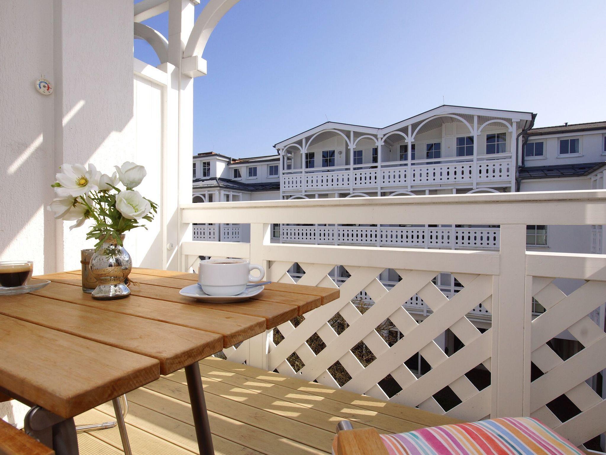 Genießen Sie von dort aus die frische Ostseeluft und einen Blick auf den ruhigen Innenhof und die stilvolle Bäderarchitektur. Komfortable Gartenmöbel werden Ihnen selbstverständlich zur Verfügung gestellt.