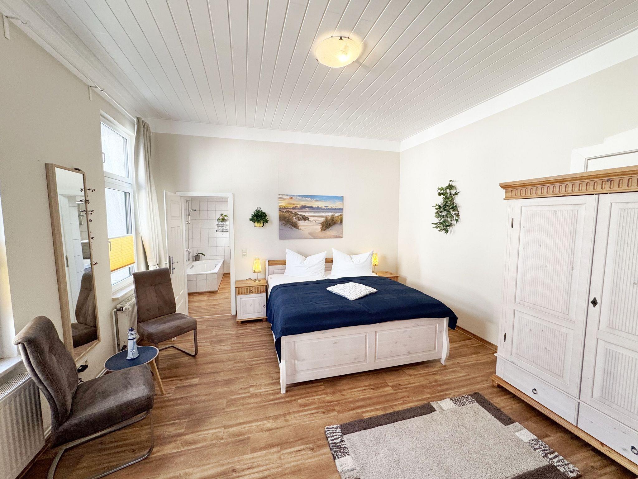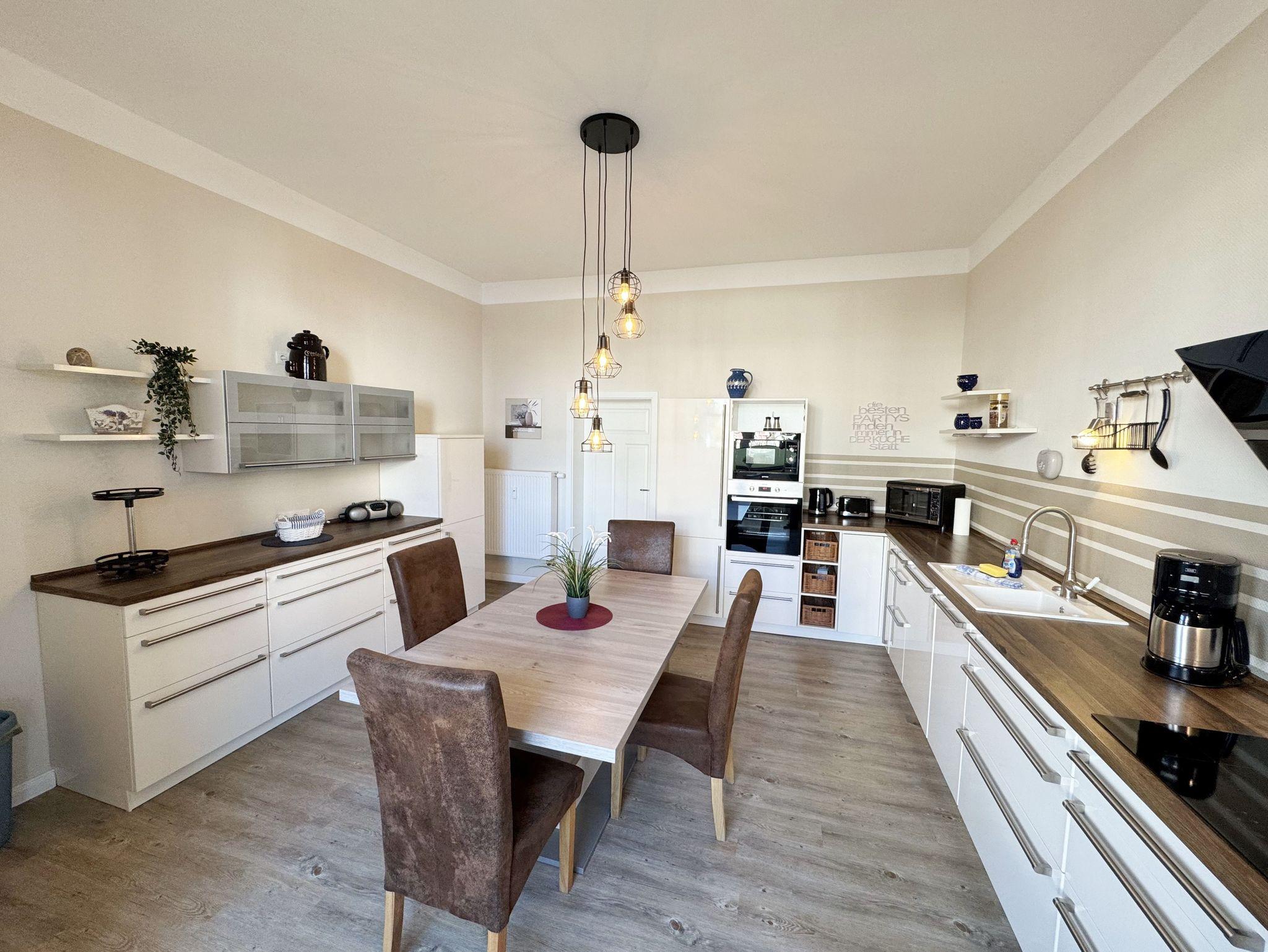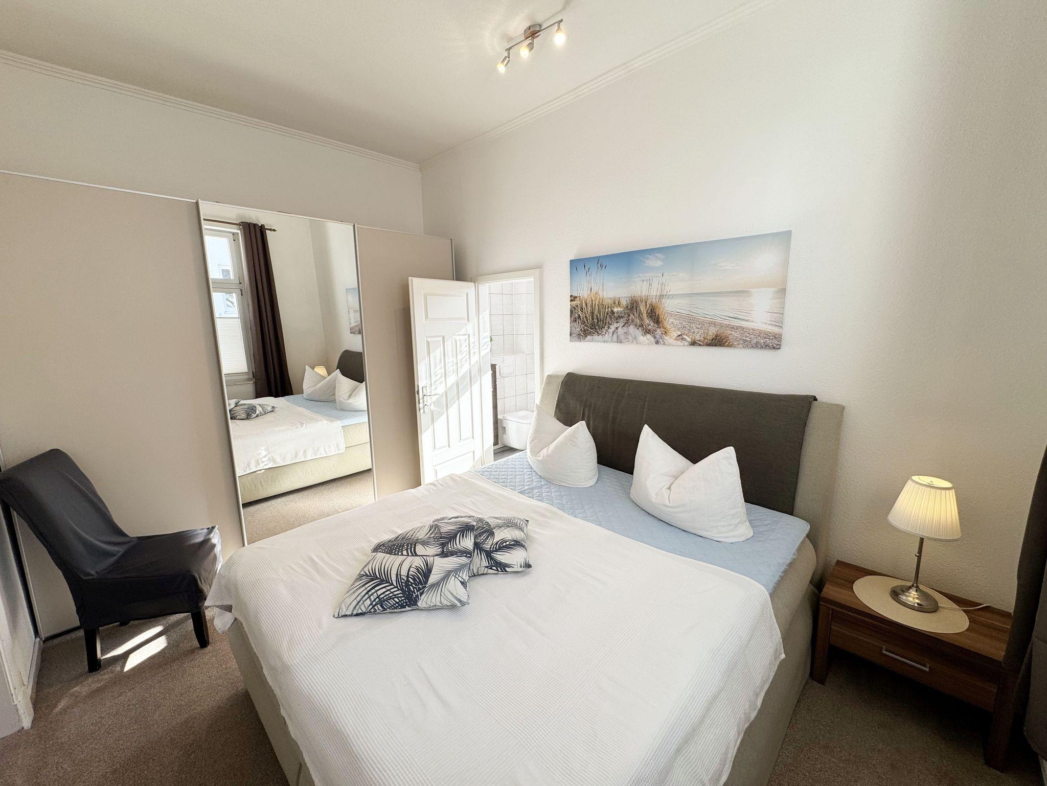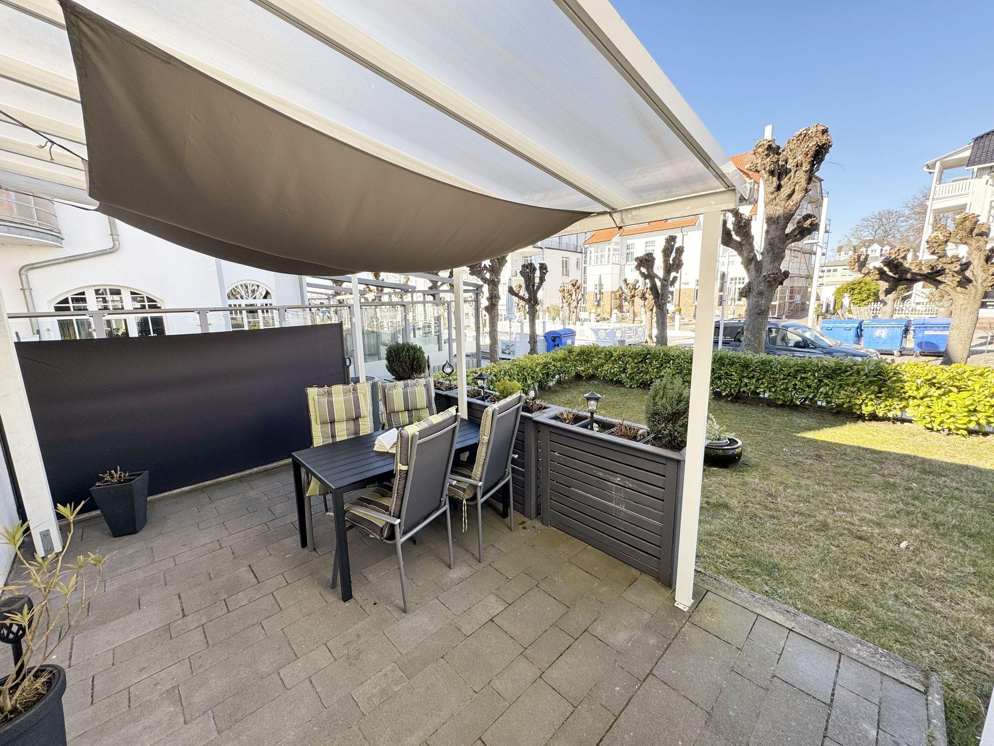 Über einen großzügigen hellen Flur mit Garderobe und Sideboard gelangt man in die Ferienwohnung 1 im Haus Irene. Die Nichtraucherferienwohnung befindet sich im Erdgeschoss des Hauses. Auf 115 m² bietet sie Ihnen ausreichend Platz für max. 2 bis 4 Erwachsene + 1 Kleinkind bis 3 Jahre im Kinderreisebett. Die maritim eingerichtete Wohnung besteht aus einem großzügigen Wohnraum mit einer gemütlichen Couchecke, einem Couchtisch sowie ein TV-Board mit Smart-TV. Weiterhin finden Sie hier einen Kamin für die kühleren Tage sowie ein Highboard. Der technische Bereich wird durch einen WLAN- Anschluss abgerundet. Vom Wohnbereich gelangen Sie auf die Ihre großzügige, bestuhlte und überdachte Südwest-Terrasse mit dem dazugehörigen Blick auf die Bäderarchitektur der Wilhelmstraße. Zwei getrennte Schlafzimmer mit 2 getrennten Bädern steigern den Komfort der Wohnung. Das erste Schlafzimmer verfügt über ein Doppelbett (1,80m x 2,00m), verstellbare Lattenroste, Nachttischablagen, einen Smart-TV und einen großen Kleiderschrank. Das zweite Schlafzimmer verfügt über ein Boxspringbett (1,80m x 2,00m), Nachtischablagen sowie einen Kleiderschrank. Beide Tageslicht- Bäder befinden sich jeweils direkt neben den Schlafzimmern. Das erste Bad verfügt über einen Waschplatz, ein WC, einen Fön, einen Kosmetikspiegel sowie eine Badewanne. Im zweiten Bad befindet sich ebenfalls ein Waschplatz, ein WC und eine Dusche. Die offene und großzügige Küchenzeile ist mit einem Herd mit Cerankochfeld, einem Backofen, einem Kühlschrank, einem Gefrierschrank, einer Spülmaschine, einem Mini-Backofen, einer Mikrowelle, einem Toaster, einer Kaffeemaschine und einem Wasserkocher ausgestattet. Ein großer Esstisch in der Mitte komplettiert den Raum. Zwei kleine Sitzecken einmal vor der Küchenzeile und vor dem Wohnbereich laden zum Verweilen ein. Für unsere kleinen Gäste steht ein Hochstuhl und ein Kinderreisebett inklusive zur Verfügung. Ein Staubsauger sowie ein mobiler Wäschetrockner sind ebenso vorhanden. Ein Haustier ist ein gern gesehener Gast. Ein PKW-Stellplatz (Nr.01) und eine abschließbare Fahrradunterstellmöglichkeit befinden sich direkt am Haus. Die Erstausstattung eines Wäschepaketes (komplette Bettwäsche, 1 Duschhandtuch, 2 kleine Handtücher) können Sie bis 14 Tage vor Anreise gegen einen Aufpreis dazu buchen oder durch eigenes Ergänzen. Ab 2 gebuchten Paketen erhalten Sie einmalig 1 Geschirrhandtuch und 1 Duschvorleger hinzu. Wir wünschen Ihnen einen traumhaften und angenehmen Urlaub an der Ostsee, erholen Sie sich gut.