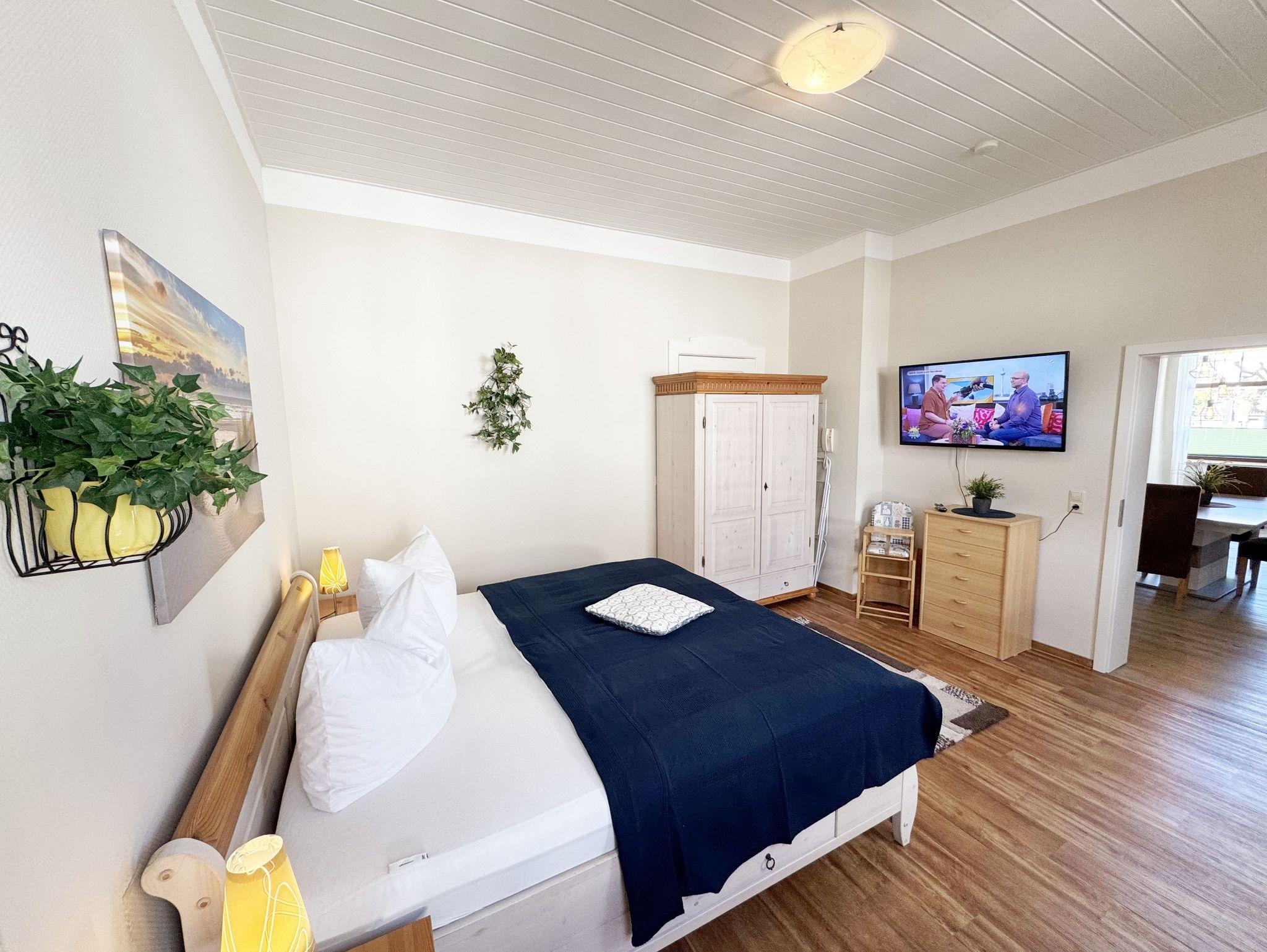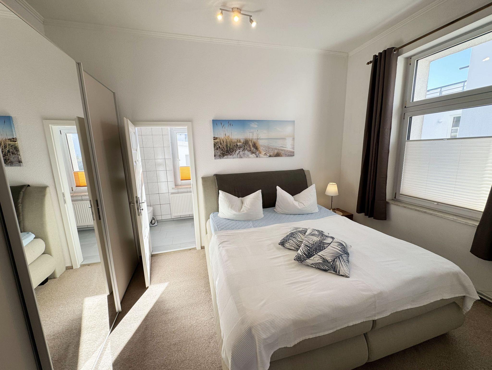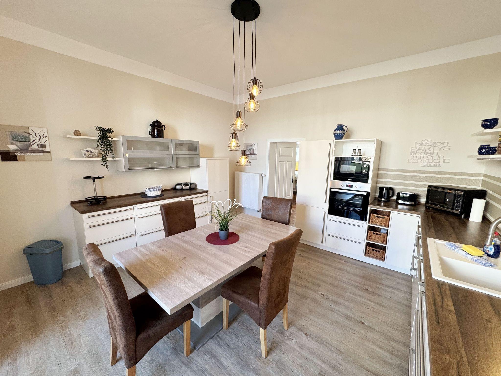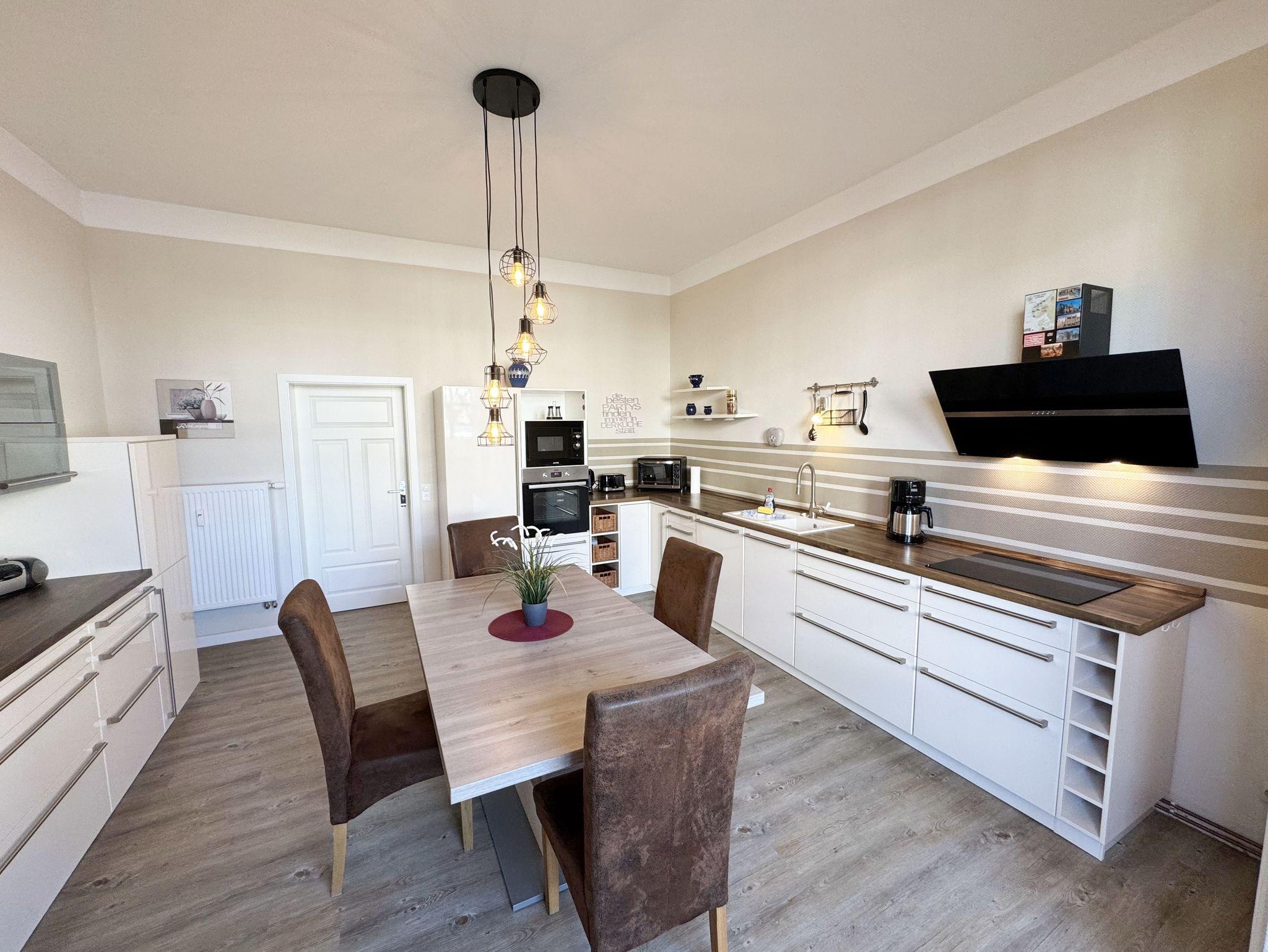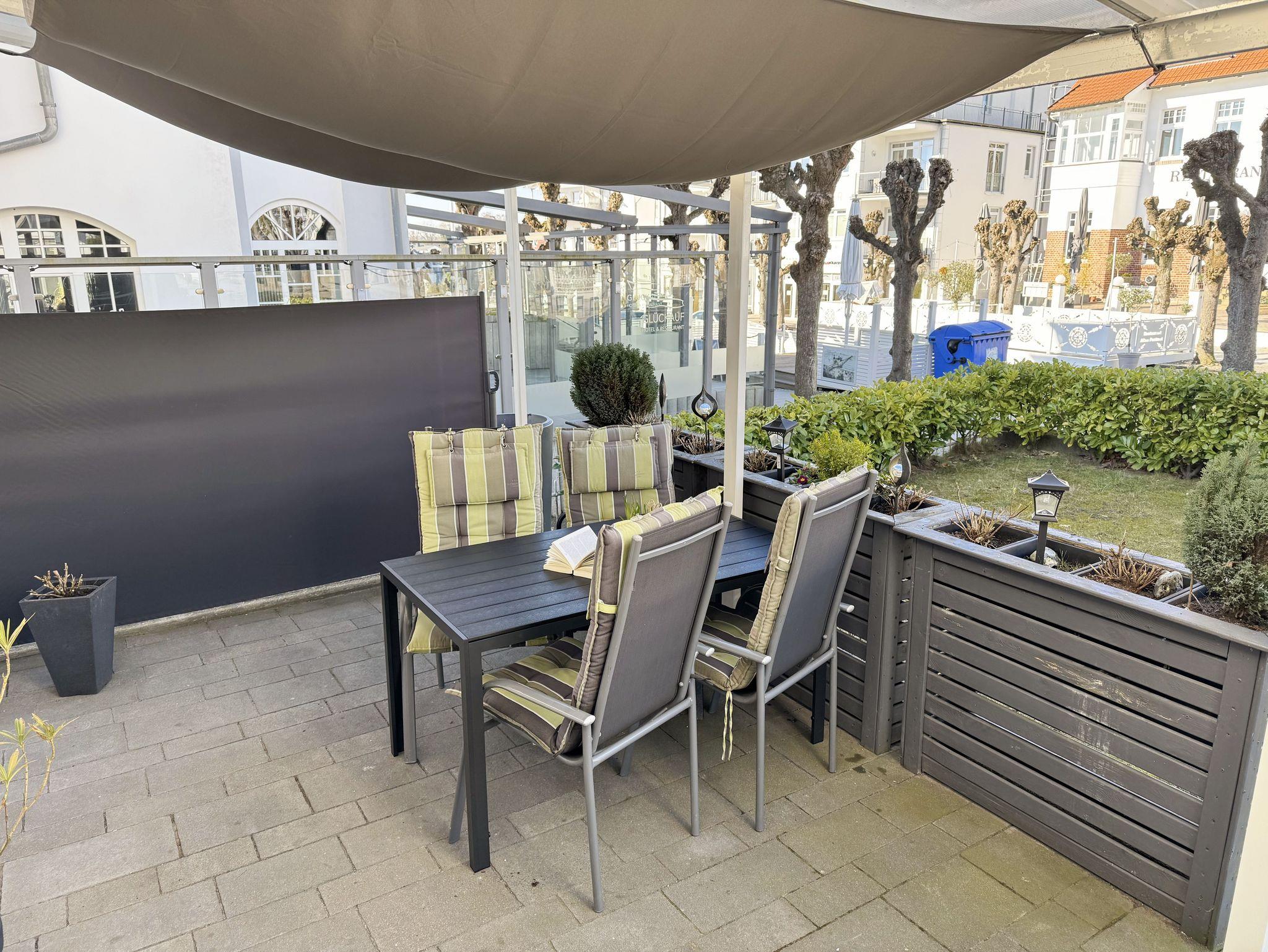 Über einen großzügigen hellen Flur mit Garderobe und Sideboard gelangt man in die Ferienwohnung 1 im Haus Irene. Die Nichtraucherferienwohnung befindet sich im Erdgeschoss des Hauses. Auf 115 m² bietet sie Ihnen ausreichend Platz für max. 2 bis 4 Erwachsene + 1 Kleinkind bis 3 Jahre im Kinderreisebett. Die maritim eingerichtete Wohnung besteht aus einem großzügigen Wohnraum mit einer gemütlichen Couchecke, einem Couchtisch sowie ein TV-Board mit Smart-TV. Weiterhin finden Sie hier einen Kamin für die kühleren Tage sowie ein Highboard. Der technische Bereich wird durch einen WLAN- Anschluss abgerundet. Vom Wohnbereich gelangen Sie auf die Ihre großzügige, bestuhlte und überdachte Südwest-Terrasse mit dem dazugehörigen Blick auf die Bäderarchitektur der Wilhelmstraße. Zwei getrennte Schlafzimmer mit 2 getrennten Bädern steigern den Komfort der Wohnung. Das erste Schlafzimmer verfügt über ein Doppelbett (1,80m x 2,00m), verstellbare Lattenroste, Nachttischablagen, einen Smart-TV und einen großen Kleiderschrank. Das zweite Schlafzimmer verfügt über ein Boxspringbett (1,80m x 2,00m), Nachtischablagen sowie einen Kleiderschrank. Beide Tageslicht- Bäder befinden sich jeweils direkt neben den Schlafzimmern. Das erste Bad verfügt über einen Waschplatz, ein WC, einen Fön, einen Kosmetikspiegel sowie eine Badewanne. Im zweiten Bad befindet sich ebenfalls ein Waschplatz, ein WC und eine Dusche. Die offene und großzügige Küchenzeile ist mit einem Herd mit Cerankochfeld, einem Backofen, einem Kühlschrank, einem Gefrierschrank, einer Spülmaschine, einem Mini-Backofen, einer Mikrowelle, einem Toaster, einer Kaffeemaschine und einem Wasserkocher ausgestattet. Ein großer Esstisch in der Mitte komplettiert den Raum. Zwei kleine Sitzecken einmal vor der Küchenzeile und vor dem Wohnbereich laden zum Verweilen ein. Für unsere kleinen Gäste steht ein Hochstuhl und ein Kinderreisebett inklusive zur Verfügung. Ein Staubsauger sowie ein mobiler Wäschetrockner sind ebenso vorhanden. Ein Haustier ist ein gern gesehener Gast. Ein PKW-Stellplatz (Nr.01) und eine abschließbare Fahrradunterstellmöglichkeit befinden sich direkt am Haus. Die Erstausstattung eines Wäschepaketes (komplette Bettwäsche, 1 Duschhandtuch, 2 kleine Handtücher) können Sie bis 14 Tage vor Anreise gegen einen Aufpreis dazu buchen oder durch eigenes Ergänzen. Ab 2 gebuchten Paketen erhalten Sie einmalig 1 Geschirrhandtuch und 1 Duschvorleger hinzu. Wir wünschen Ihnen einen traumhaften und angenehmen Urlaub an der Ostsee, erholen Sie sich gut.