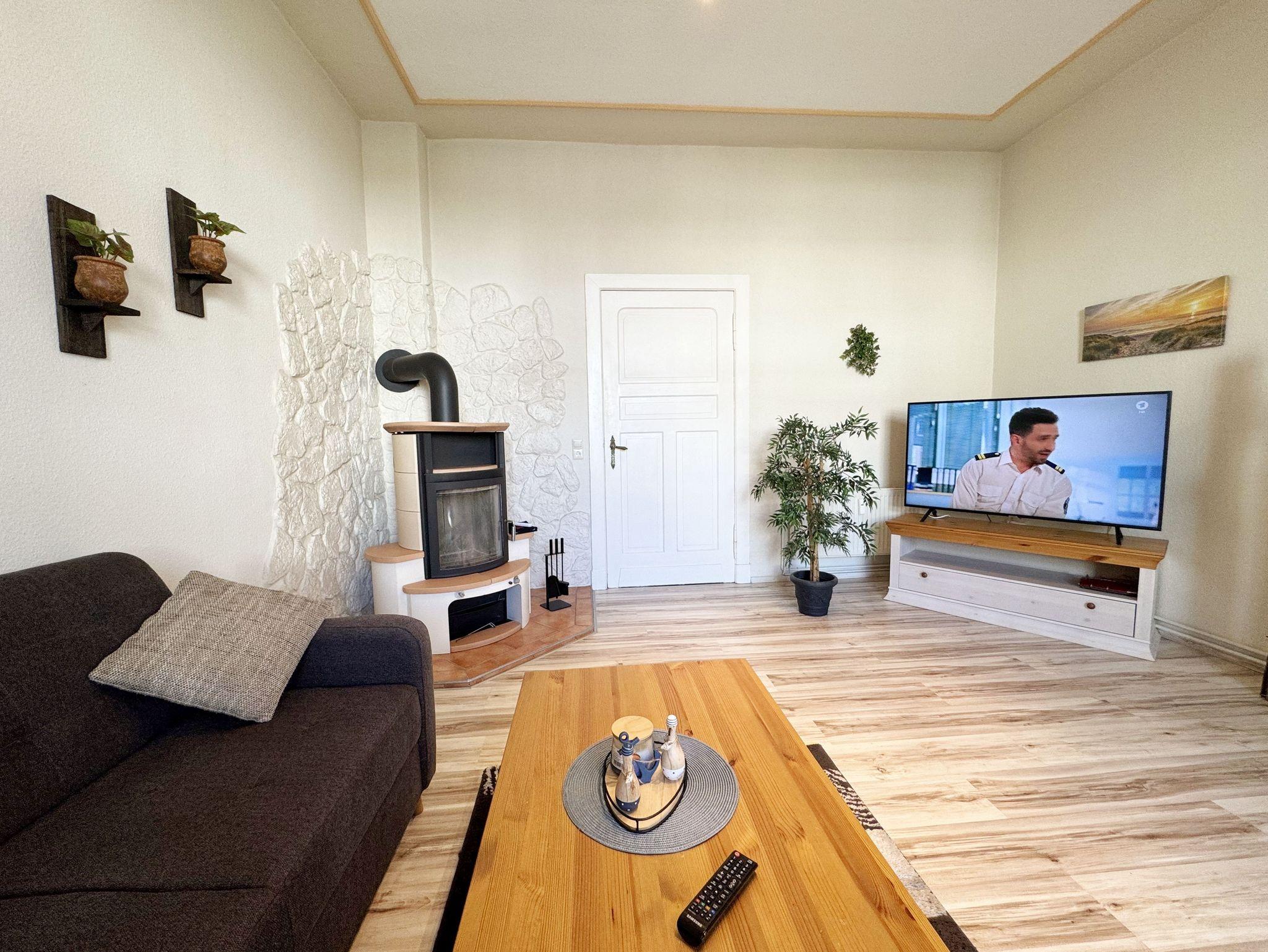 Modern eingerichtete Ferienwohnung mit Terrasse, Kamin und Nähe zur Selliner Seebrücke.