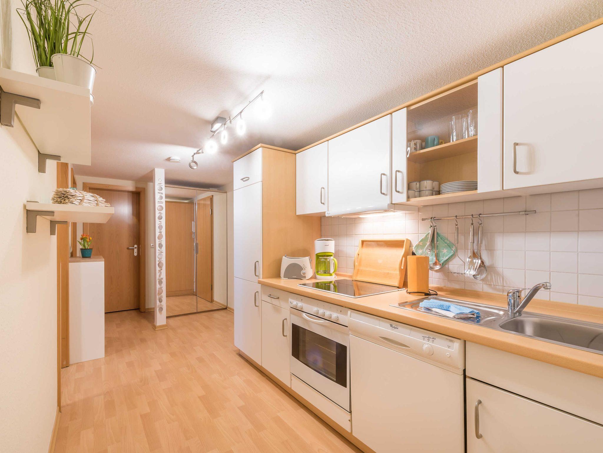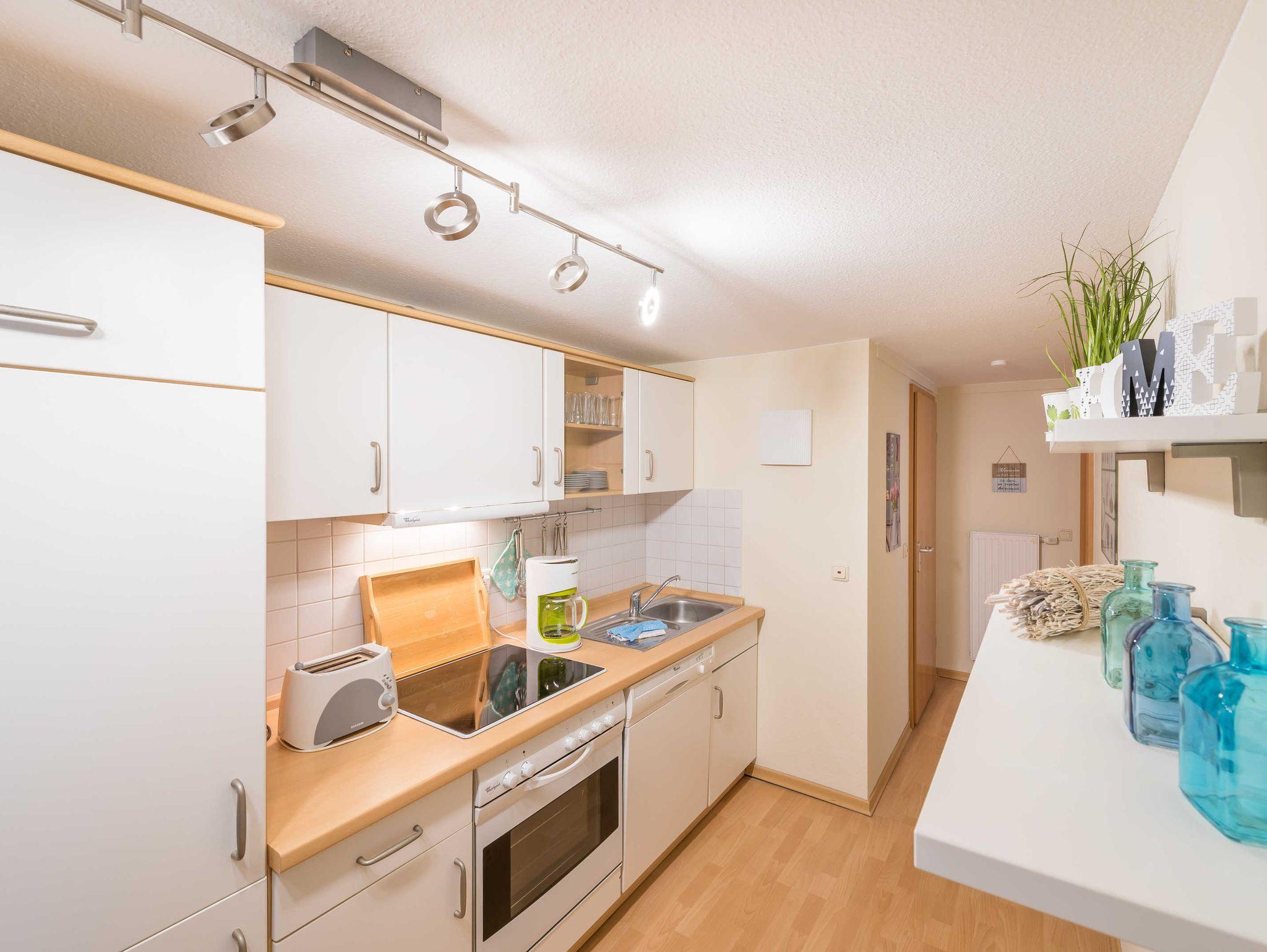 Eine separate Küche im Eingangsbereich mit allen Annehmlichkeiten wie Geschirrspüler, Herd, Backofen, Kaffeemaschine, etc., gibt dem Gast die Möglichkeit, gerne auch im eigenen Feriendomizil Köstlichkeiten zuzubereiten.