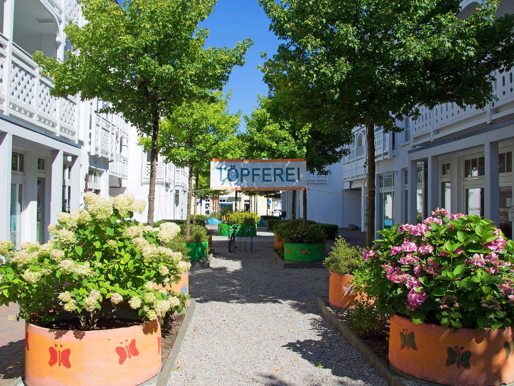 Der Bahnhof der historischen Kleinbahn Rasender Roland ist nur 300 Meter entfernt, ebenso die Tourist-Information.