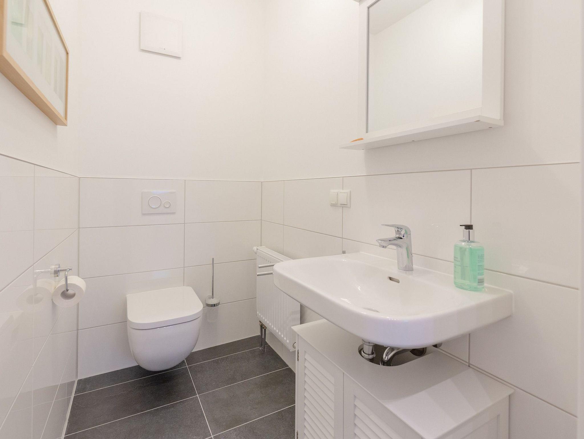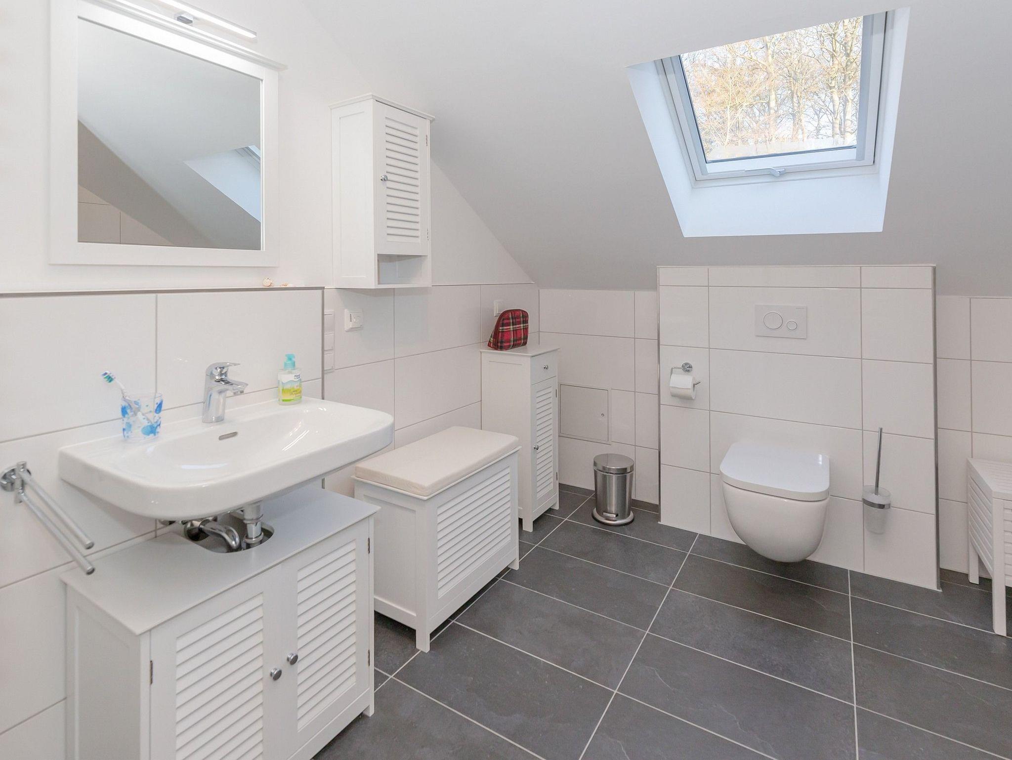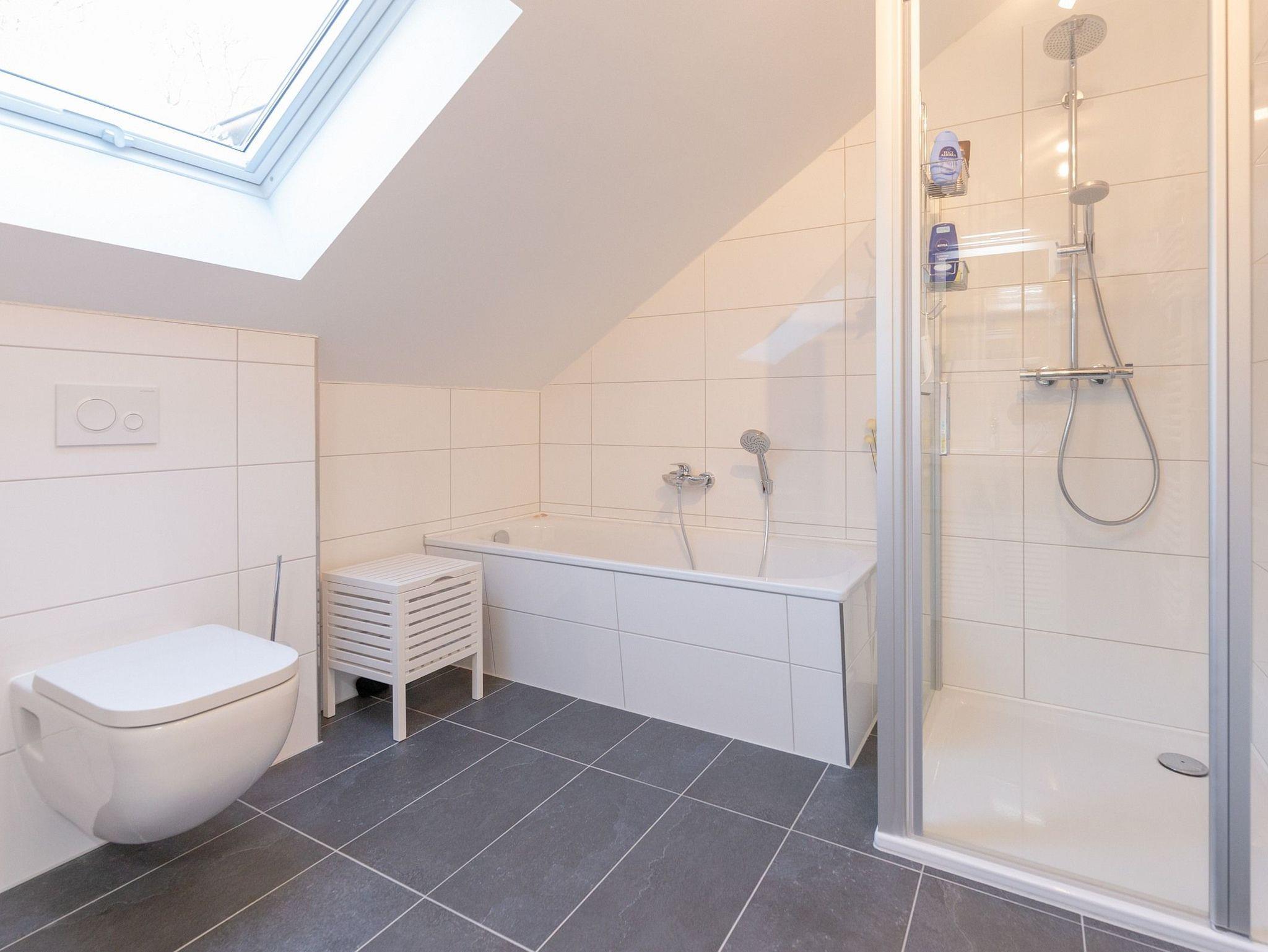 Das freundliche Tageslicht-Badezimmer verfügt über eine ebenerdige Dusche, eine Badewanne und einen Waschtisch mit Spiegel. Der hell erleuchtete Flurbereich begleitet Sie in den offenen Wohnbereich mit Küche und Essbereich. Der integrierte Essbereich und die offene Küche laden Sie zu kulinarischen Kochabenden ein.
