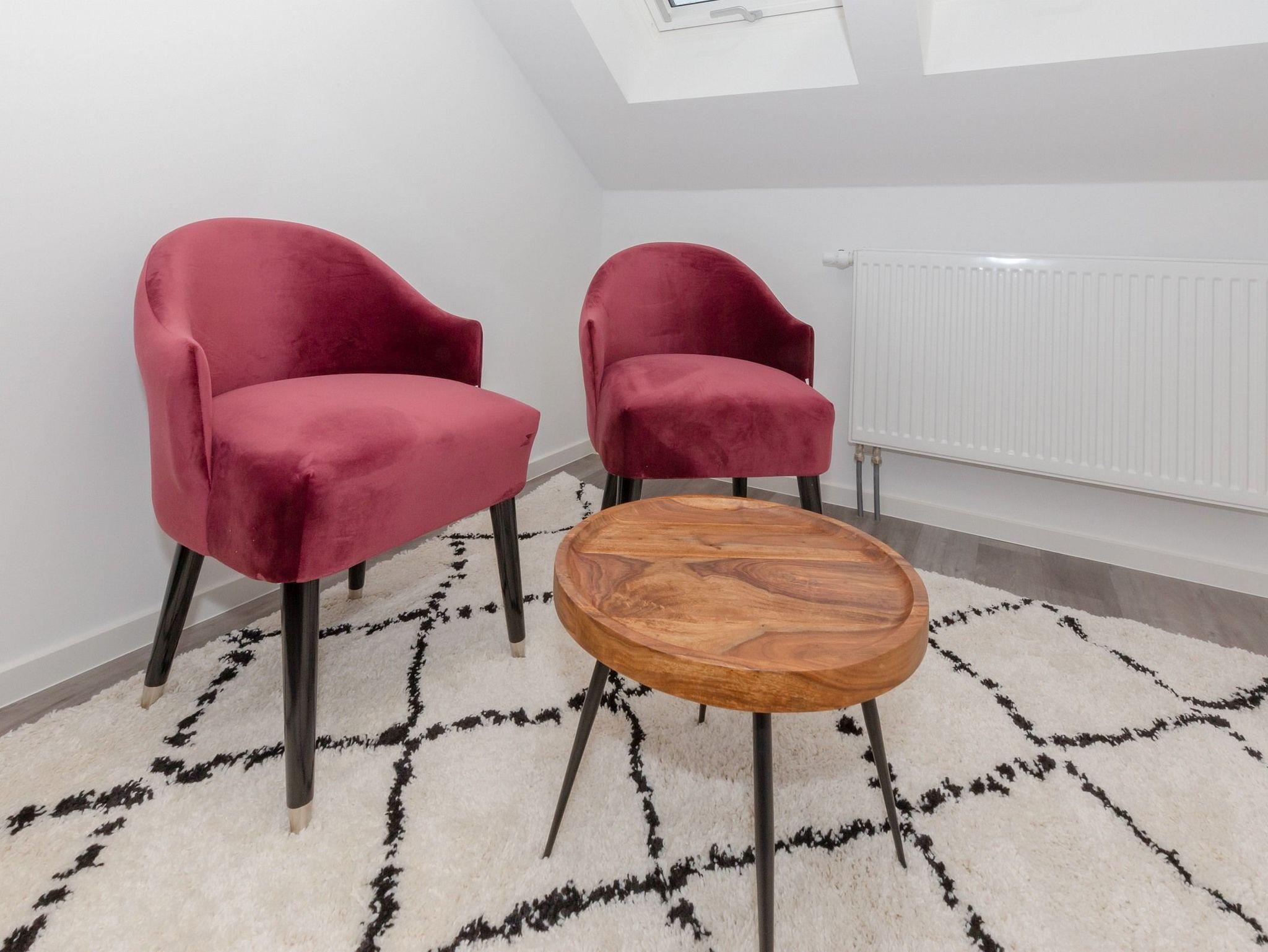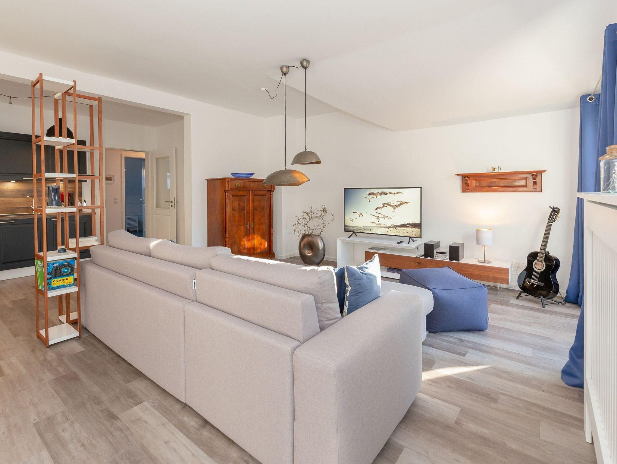 Im Wohnbereich kann man auf der komfortablen Couchgarnitur den ruhigen Abend ausklingen lassen. Neben einem Flachbild- TV steht Ihnen auch kostenfreies WLAN zur Verfügung.