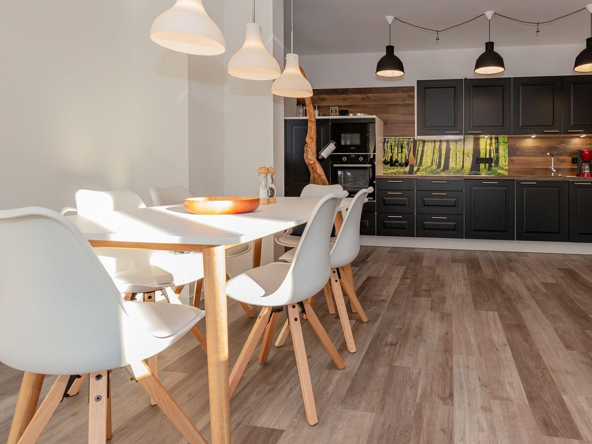 Die Ferienwohnung Waldloft überzeugt mit einem hohen Wohnkomfort und ausgewählten Designermöbelstücken.