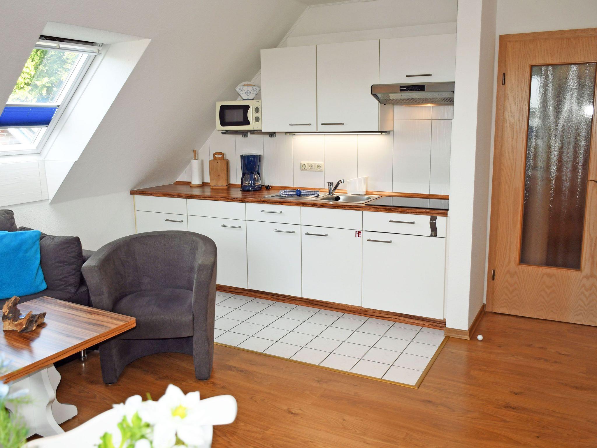 Unsere Ferienwohnungen sind ca. 45 qm groß, haben Platz für maximal 3 Gäste, bietet Internet-WLAN und wurden liebevoll und komfortabel eingerichtet. Über eine Treppe im Privathaus gelangt man in die im Obergeschoss gelegenen Wohnungen. Im großzügigen Wohnraum befinden sich eine Sitzcouch mit Tisch, Sessel, ein modernes Flachbild-TV-Gerät sowie die kleine Küchenzeile mit Esstisch und Stühlen. Die Küchenzeile ist mit einem Herd, Wasserkocher, Kaffeemaschine, Toaster, Mikrowelle, Spüle und Kühlschrank ausgestattet. Über einen Flur gelangt man in das Schlafzimmer. Hier befinden sich ein bequemes Doppelbett mit Nachttisch und Leselampen und ein Kleiderschrank. Aus dem Fenster des Schlafzimmers können Sie zum Selliner See blicken! Für den dritten Gast kann im Wohnraum die Couch aufgebettet werden. Ein kleines Kinderreisebett und ein Hochstuhl können auf Wunsch kostenlos bereit gestellt werden.