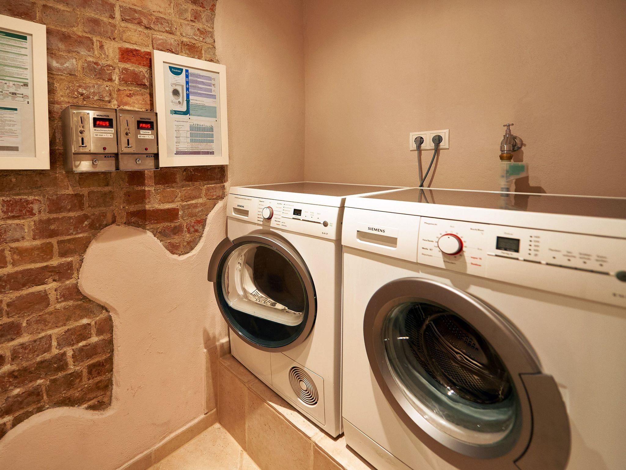 Im Souterrain des Hauses steht ein kleiner Wellnessbereich mit Sauna, Duschen, WC und Ruhezone kostenlos zur Verfügung. Bügelutensilien erhalten Sie kostenlos auf Anfrage. Gegen Gebühr finden Sie im Souterrain eine Waschmaschine, einen Trockner und ein Solarium zu Ihrer Nutzung vor.