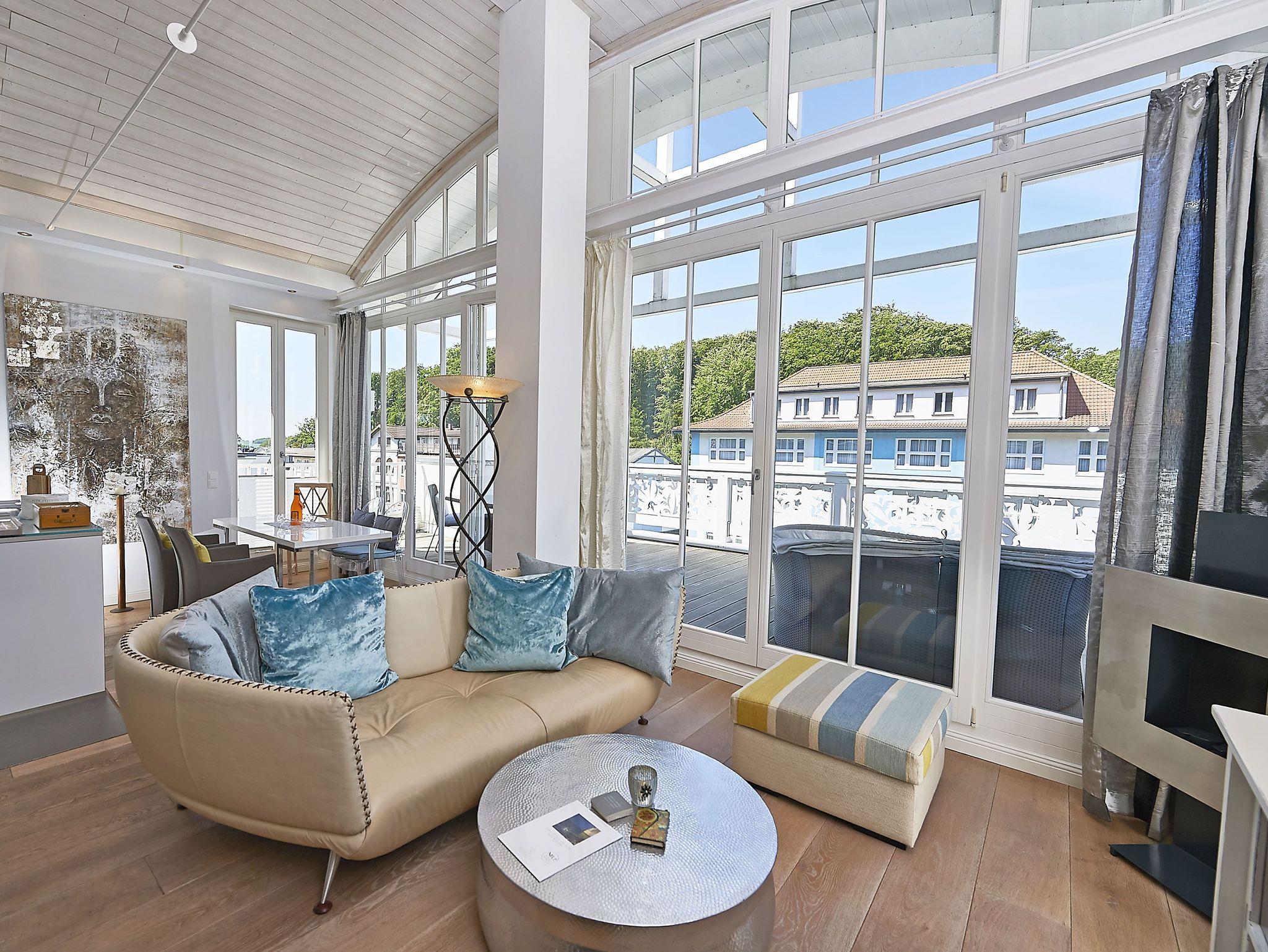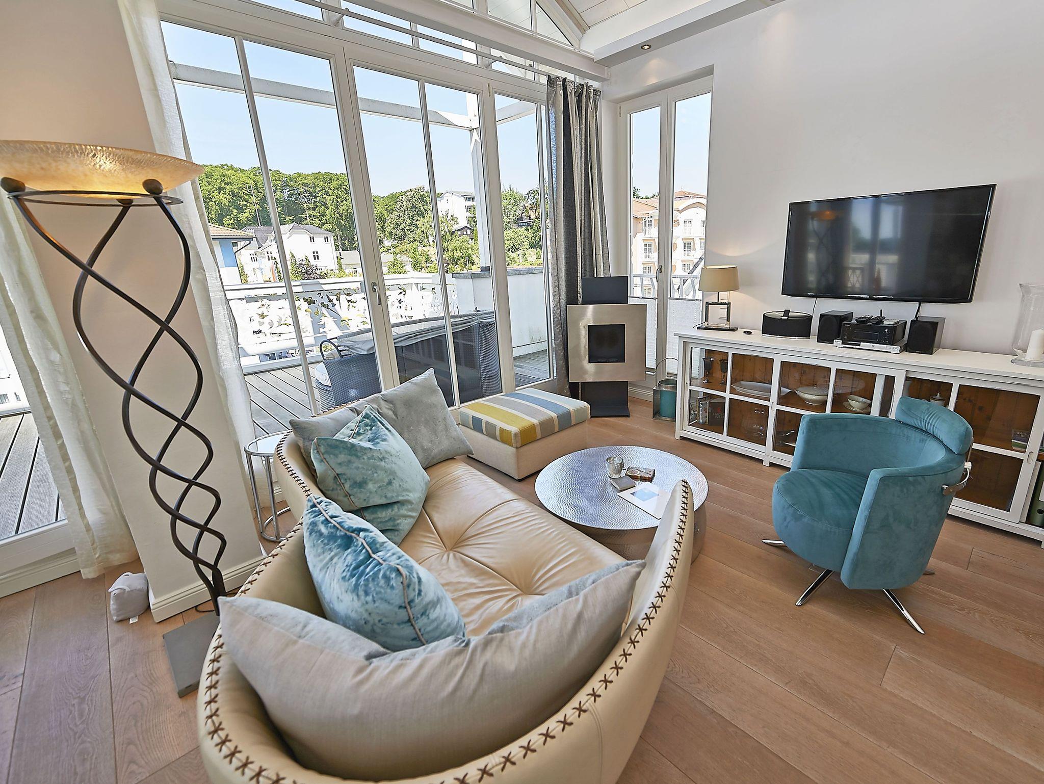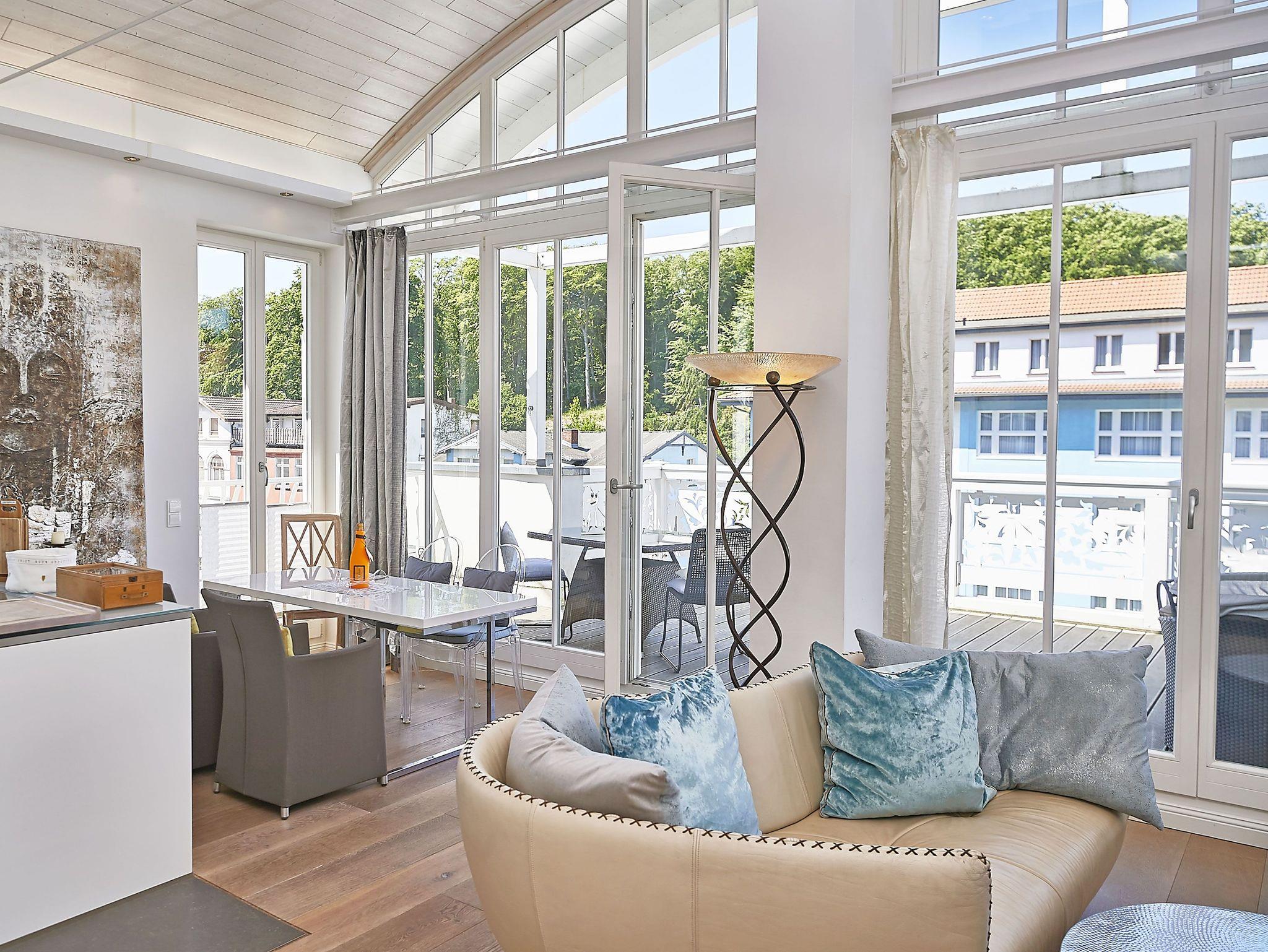 Luxuriöses Penthouse Nautilus in Sellin mit Sauna, Meerblick und großem Sonnenbalkon.