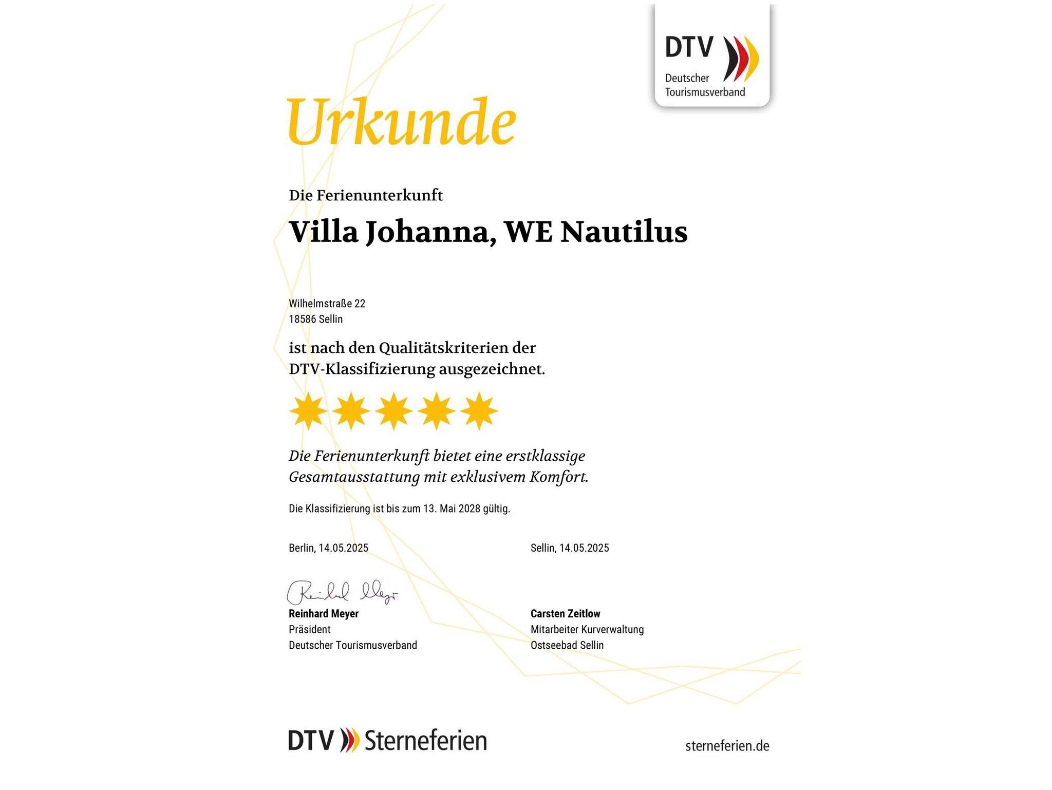 Die Villa Johanna entstand 2011 im Bädervillenbaustil. Die Balkone sind mit aufwändigen Ornamenten verziert und schmücken diesen einzigartigen Bau, sowie auch die riesigen konischen Säulen. Die Raumhöhe in diesem Penthouse reicht weit über 3 Meter hinaus. Das Lichtspiel in diesem Penthouse ist durch seine exponierte Ausrichtung und die vielen Glaselemente unvergleichlich. Der hauseigene solarbeheizbare Außenpool (5 x 15 Meter) befindet sich am Hang hinter der Villa und steht Ihnen saisonal zur Verfügung. Das Wasser wird chlorfrei saubergehalten, so dass Sie die frische Ostseeluft ungehindert geniessen können.