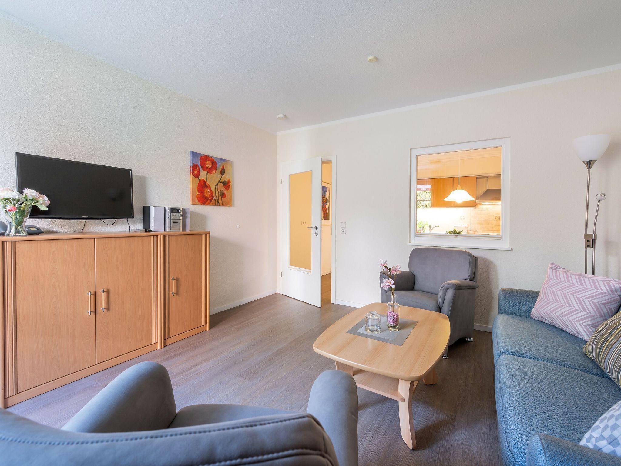 Die freundlich eingerichtete Wohnung 6 in der Ferienanlage Margaretha ist ca. 52 m² groß und für bis zu 4 Personen ausgelegt.