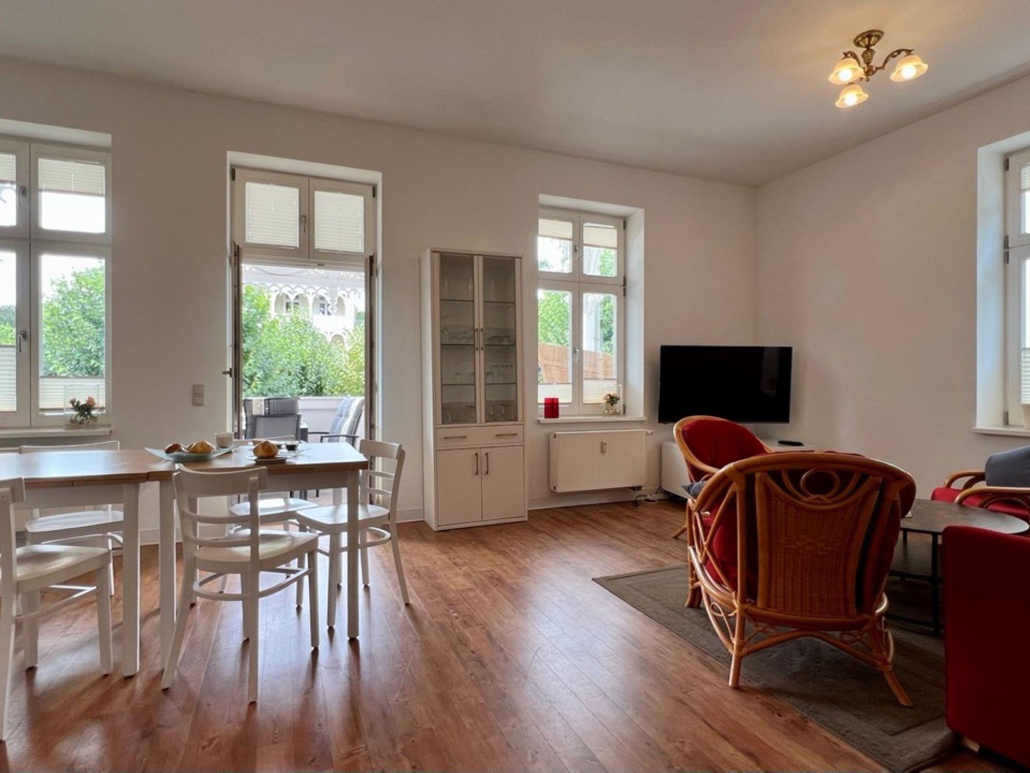 Moderne Ferienwohnung in der Villa Sonneck mit Balkon, Sauna und Strandkorb, ideal für Familien und Haustiere im Ostseebad Sellin.