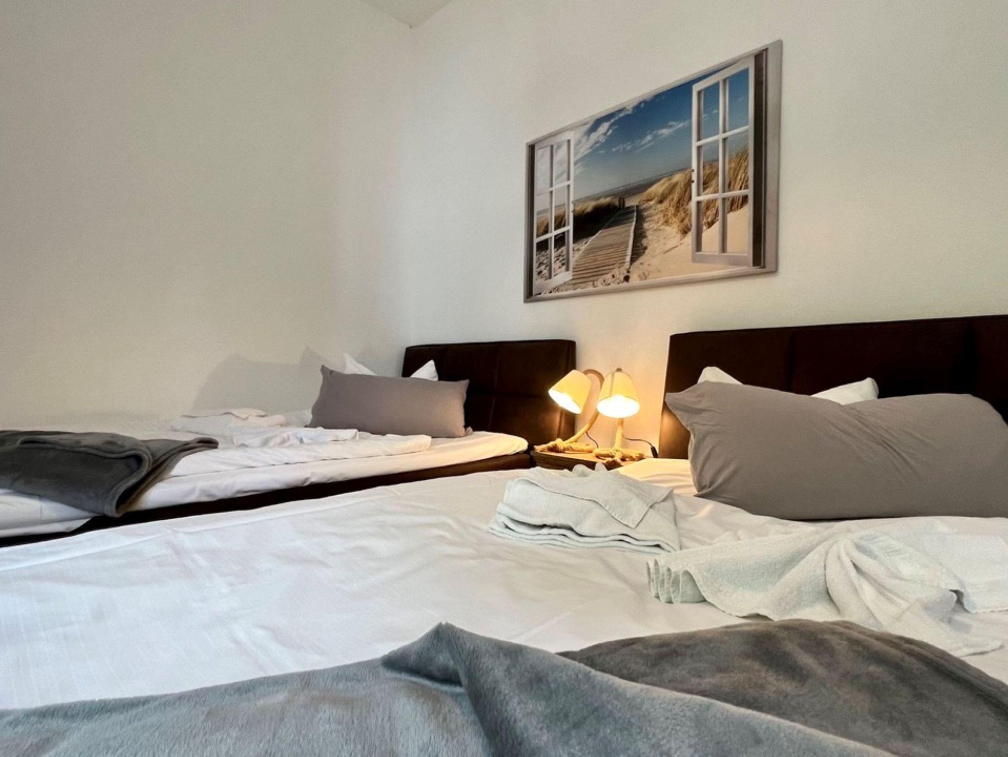 Die Wohnung 7 in der Villa Sonneck sorgt durch die zwei separaten Schlafbereiche für genügend Privatsphäre im Familienurlaub.[nbsp] Eines der beiden Schlafzimmer ist mit einem Doppelbett, einem TV und einem großzügigen Kleiderschrank ausgestattet, der zweite Schlafbereich bietet 2 Einzelbetten.