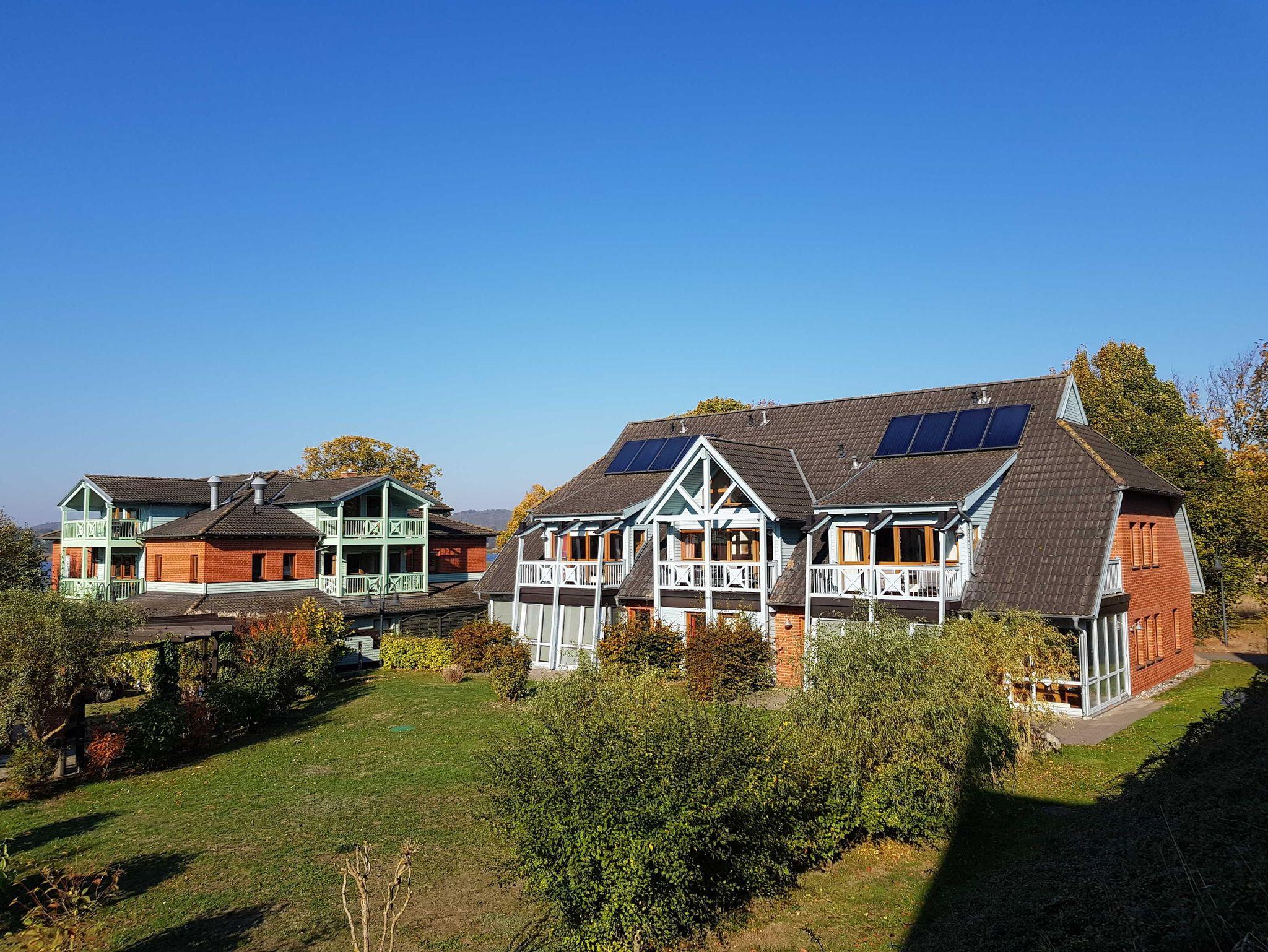 Genießen Sie eine helle Ferienwohnung mit Wintergarten und Seeblick im idyllischen Ferienpark Seedorf auf Rügen.