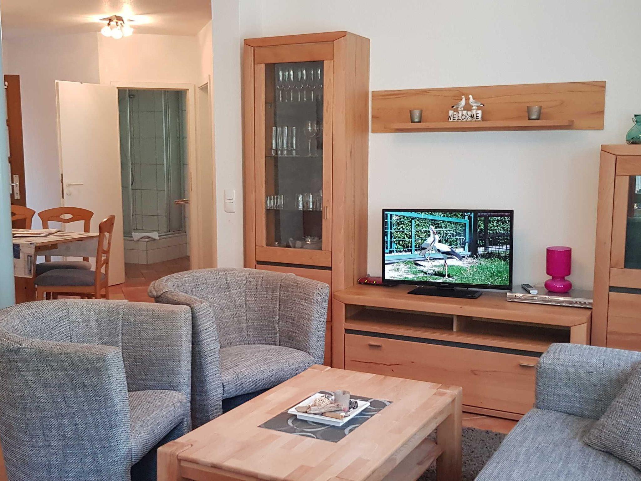 In der hell und freundlich eingerichteten Ferienwohnung im Ferienpark Seedorf fühlen Sie sich auf Anhieb wohl. Die großzügig geschnittene FeWo mit 3,5 Zimmern für bis zu 6 Personen (4 Erwachsene und 2 Kinder bis 12 Jahre) bietet viel Platz für einen erholsamen Ostseeurlaub.