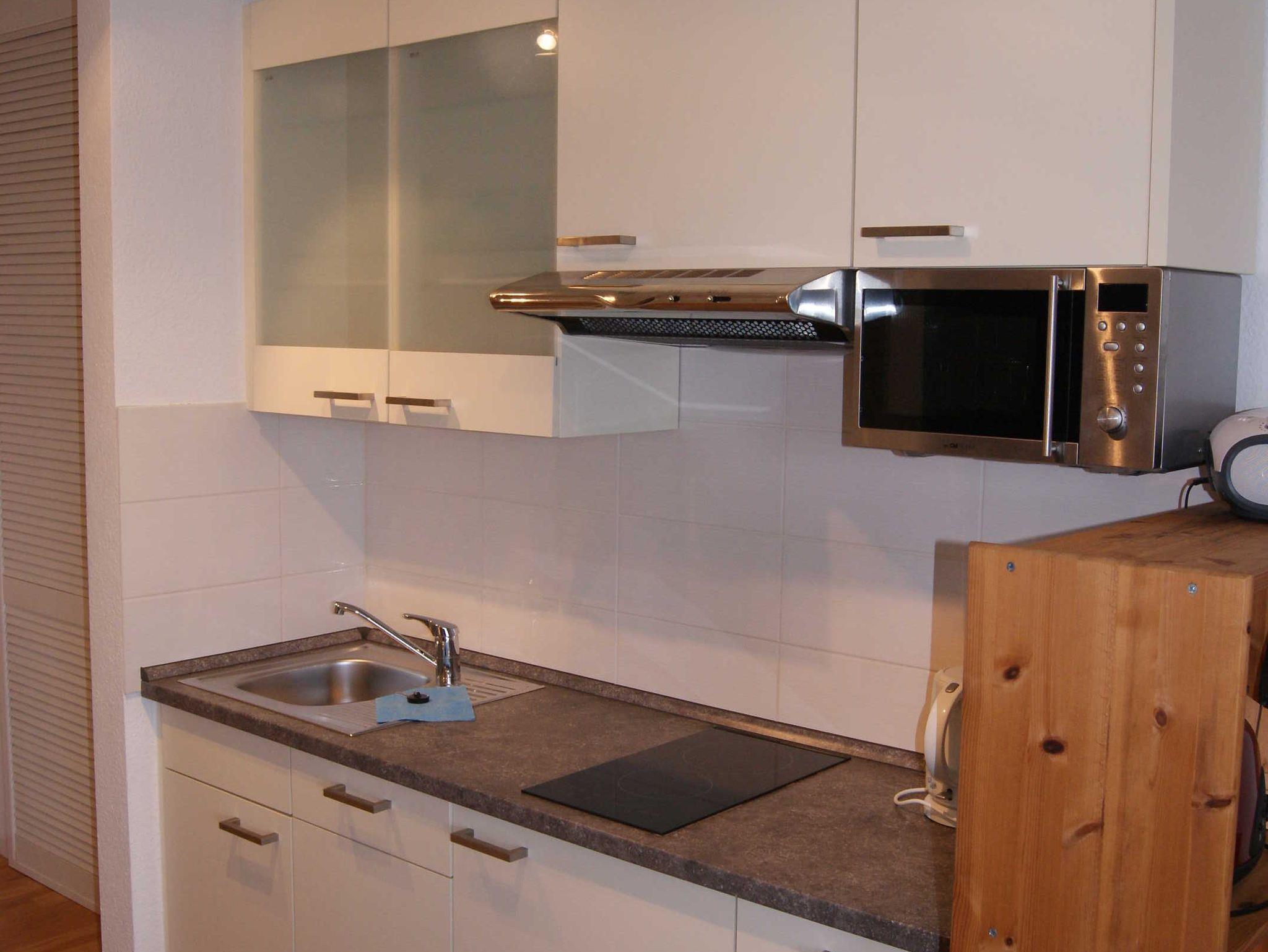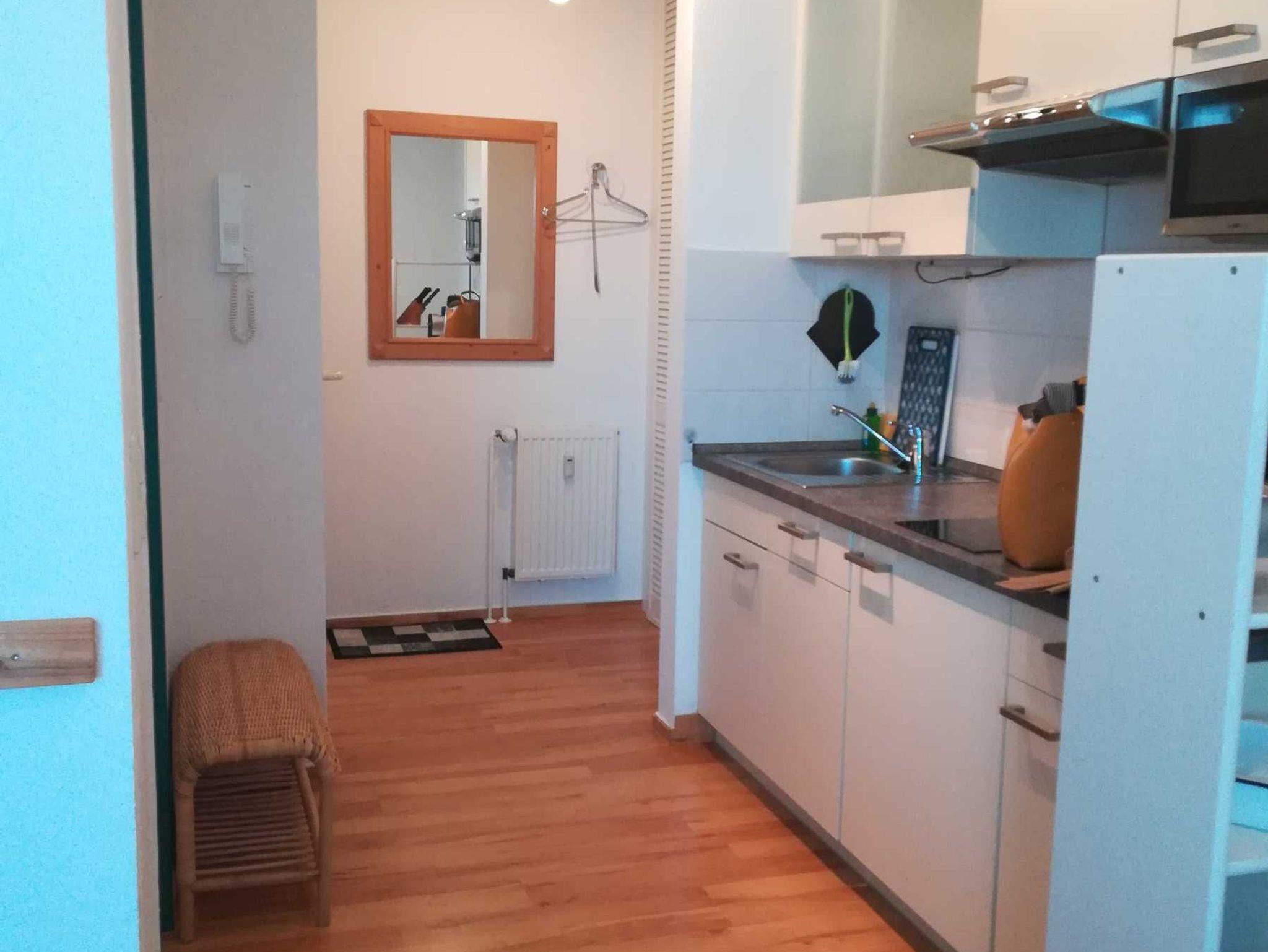 Einraumferienwohnung komplett ausgestattet mit neuer moderner Küche und neuem Bad, W-Lan frei,TV mit DVD, Mikrowelle mit Grill etc., Bad mit bodentiefer Glasdusche, Boxspringbett 1,60 x 2,00 m, Westterrasse mit Seeblick in 100 m Entfernung