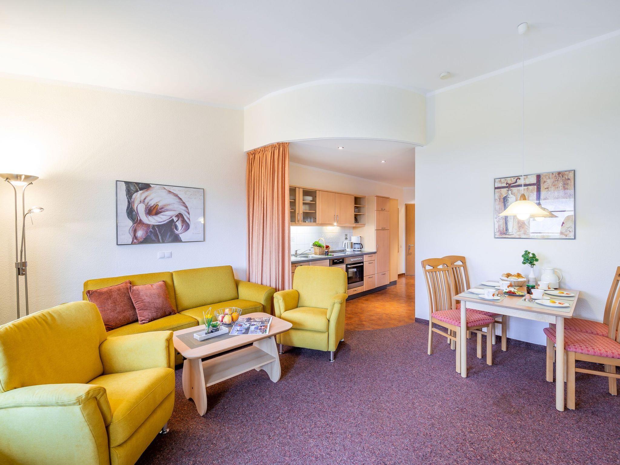 Die freundlich eingerichtete Wohnung 15 in der Ferienanlage Margaretha ist ca. 58 m² groß und für bis zu 4 Personen ausgelegt.