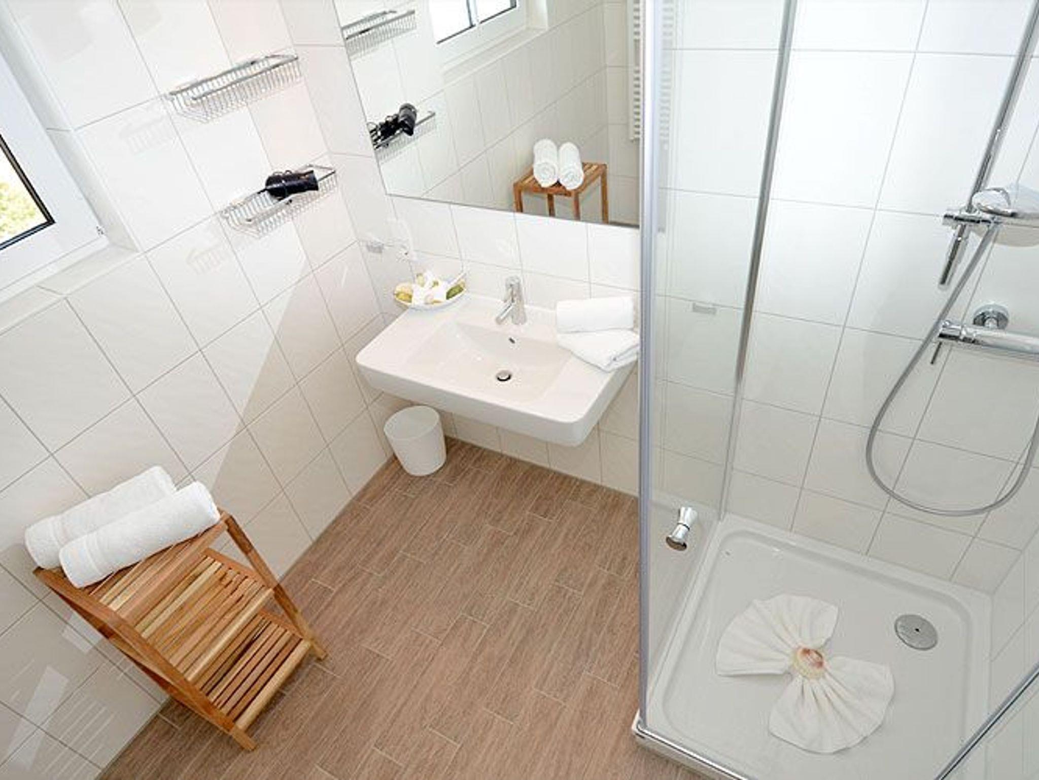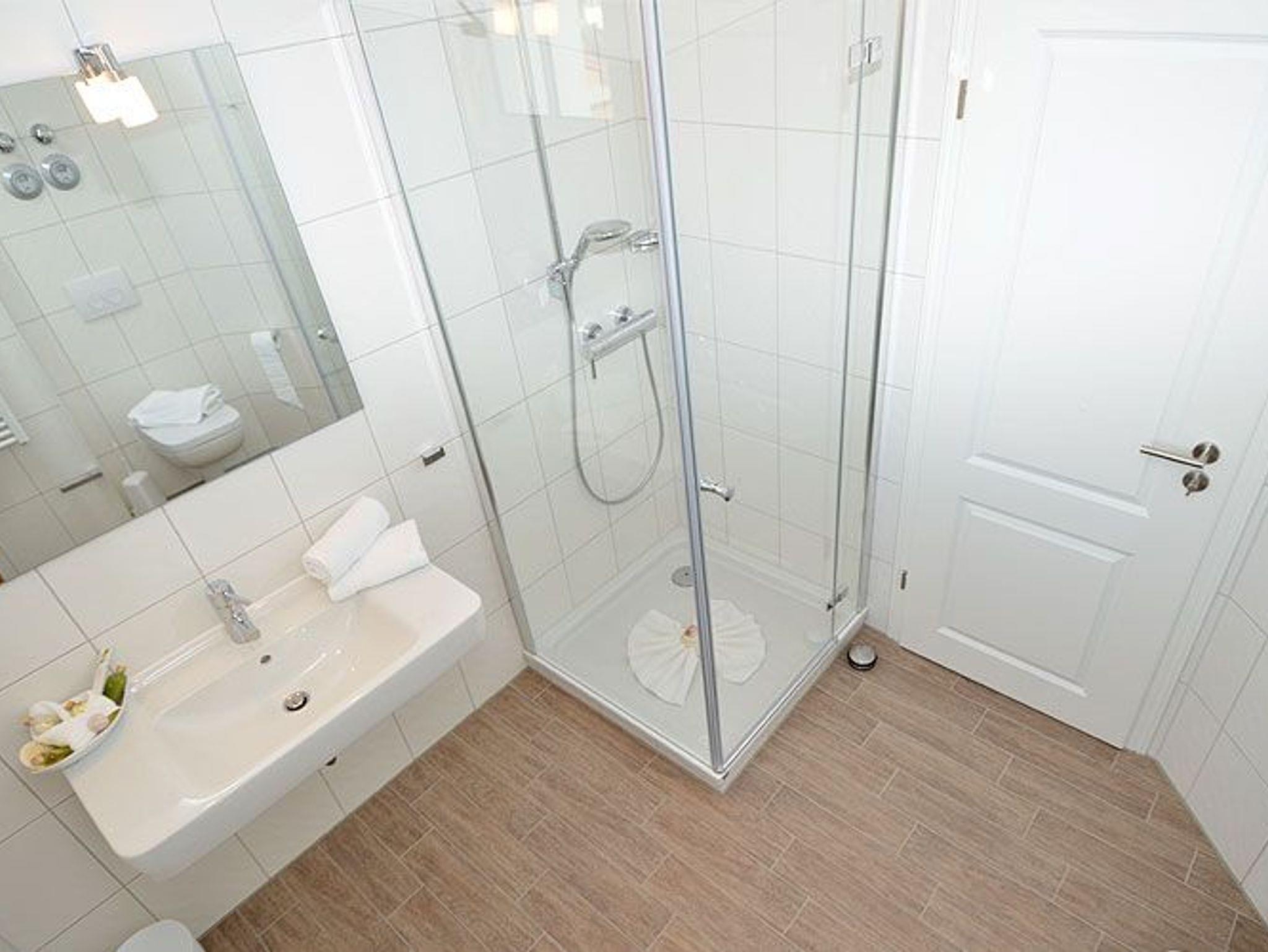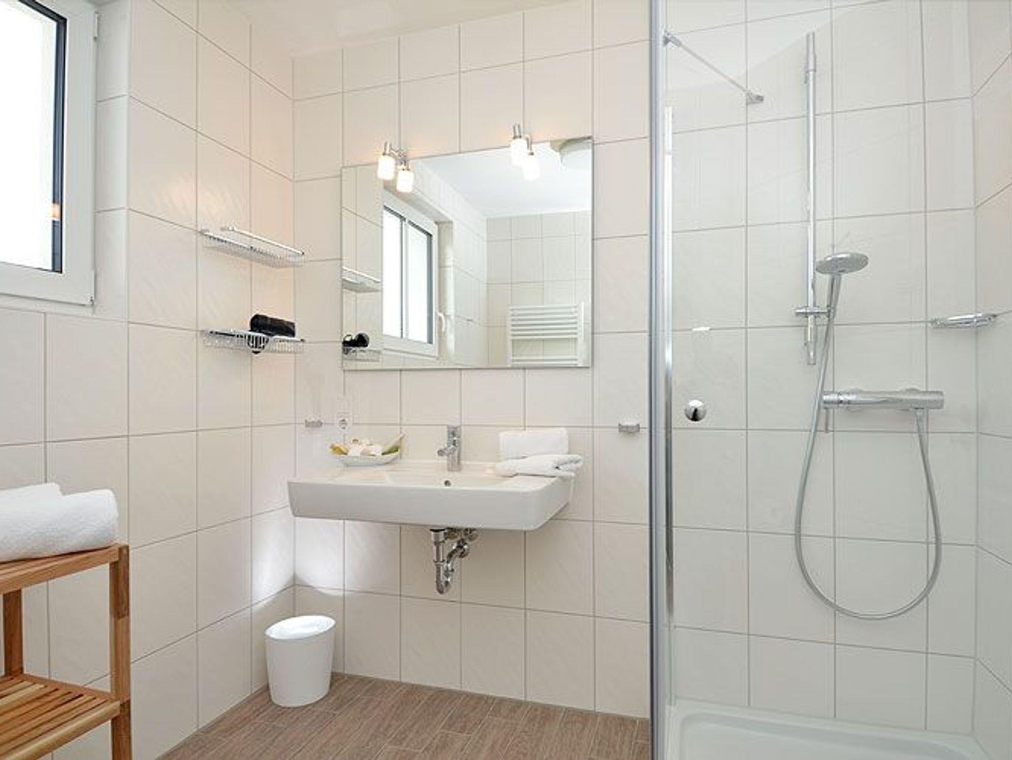 Das Appartement verfügt über ein großzügiges modernes Duschbad. Die hochwertig geflieste Nichtraucherwohnung ist mit einer Fußbodenheizung ausgestattet.