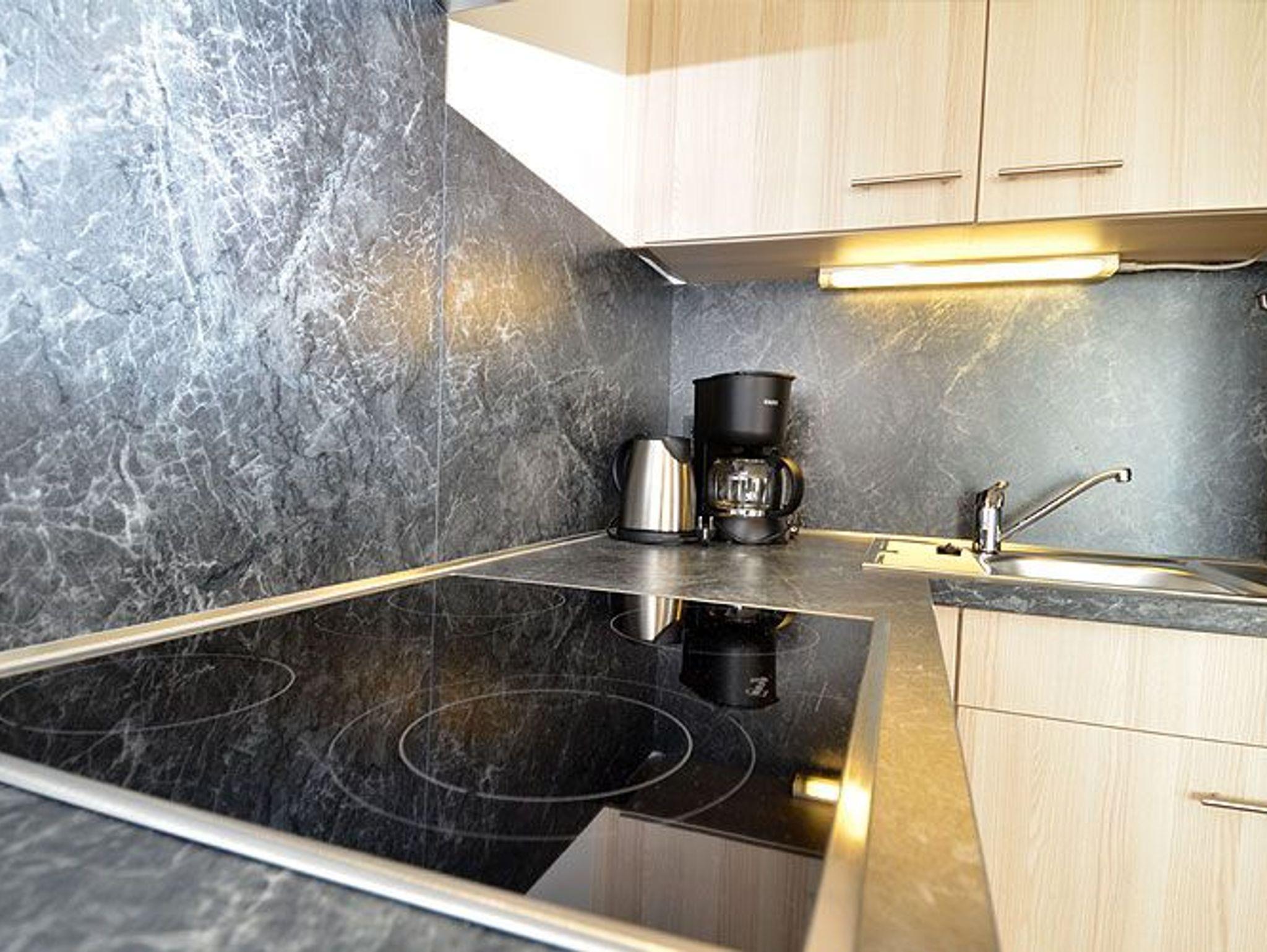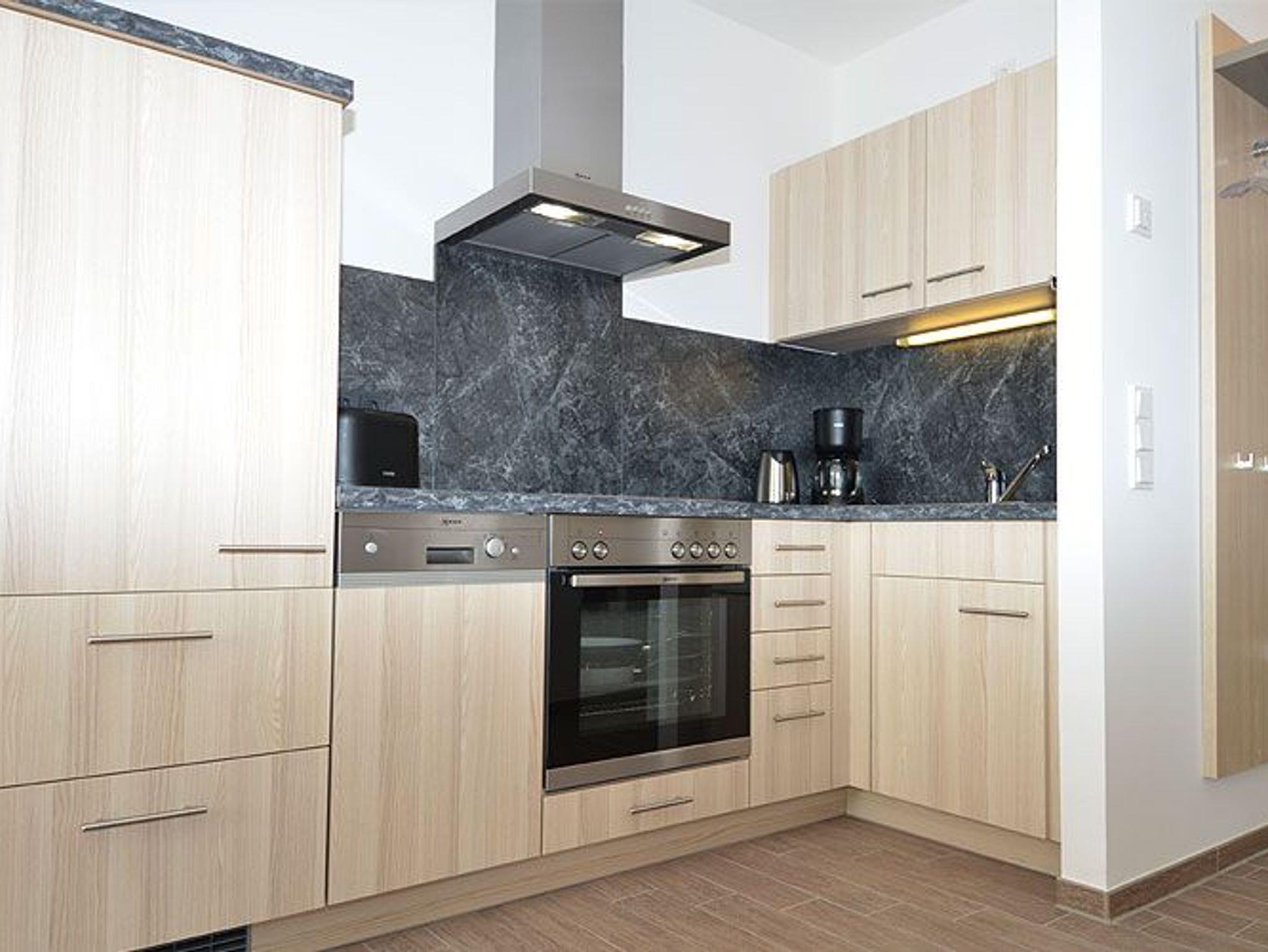 Vom Eingangsbereich gelangen Sie in den modern und freundlich eingerichteten Wohn- und Essbereich, der mit einem LCD- Fernseher sowie einer Stereoanlage mit CD-Player und Ipod-Dockingstation ausgestattet ist. Die in den Wohnbereich harmonisch integrierte Küche ist mit einem großen Kühlschrank, einem Backofen, einem Ceranfeld mit 4 Kochfeldern sowie einer Spülmaschine und diversem Kleininventar, das die Küchenausstattung komplettiert, eingerichtet.
