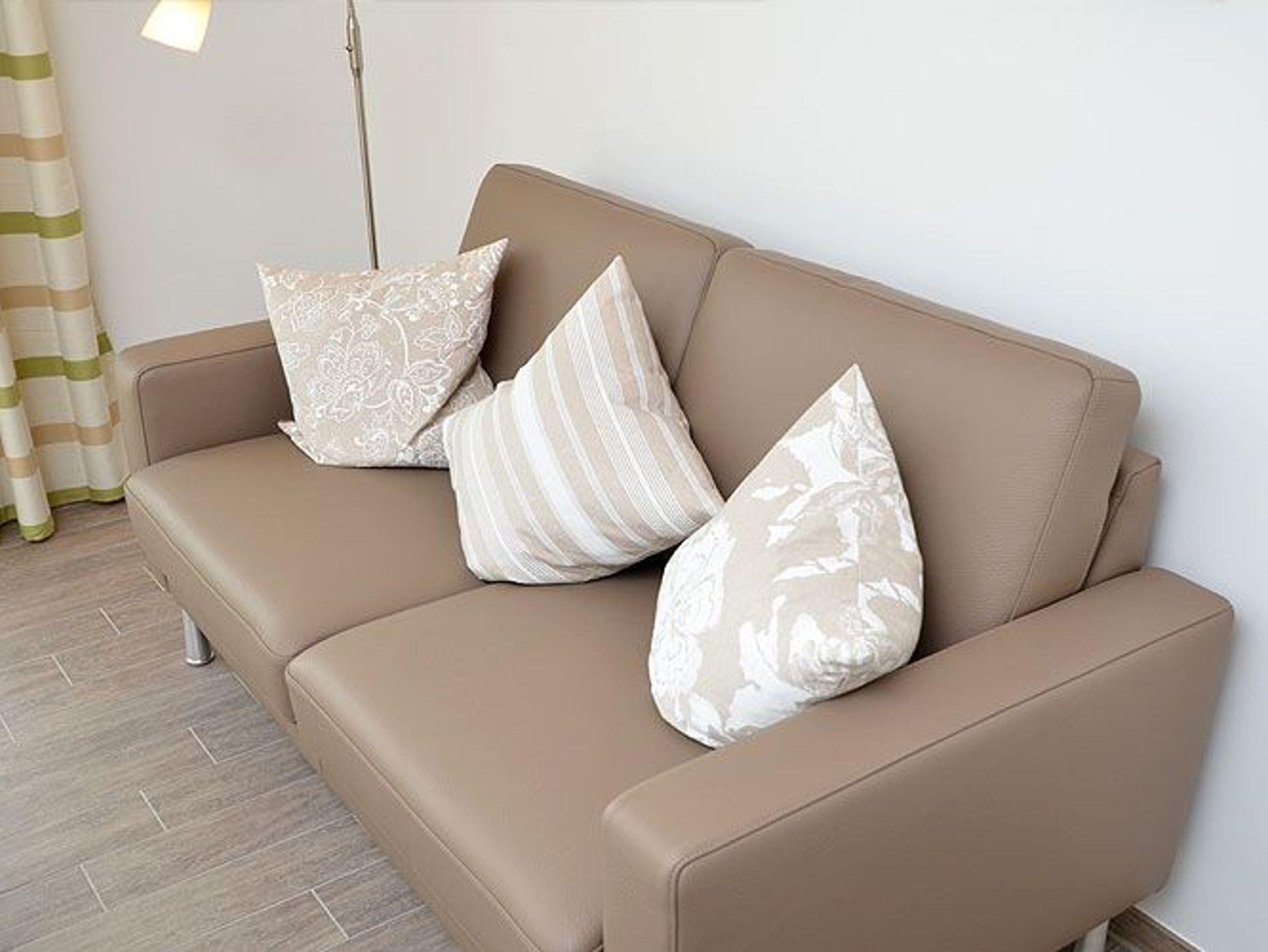 Dieses ca. 58 m² große und geschmackvoll eingerichtete 2-Raum-Appartement begrüßt Sie im Dachgeschoss der Villa Annika. Sie dürfen sich auf eine helle und lichtdurchflutete Wohnung mit edlen Echtholzmöbeln im Wohnzimmer freuen. Zu den Highlights Ihres Urlaubsdomizils zählen die ca. 9 m² große, überdachte Loggia und der ca. 5 m² große Balkon mit Blick nach Süden.