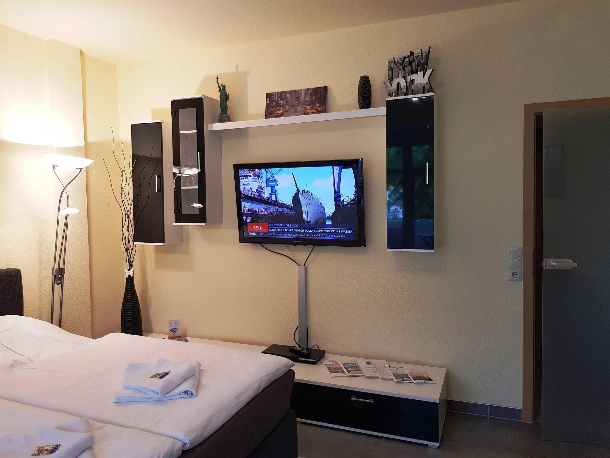 Die 1 Raum Apartments haben Wohn-Schlafraum mit Doppelbett für 2 Pers.und einer ausziehbaren Couch, Kabel-TV,CD Stereoanlage ,Esstisch, gut ausgestattete Küchenzeile mit Geschirrspüler, Kaffeemaschine, Toaster und Microwelle. Babybett ( ohne Wäsche )und Hochstuhl für die kleinen stellen wir für 5 Euro zur verfügung ( bitte vorbestellen ) . Eine Waschmaschine steht gegen Gebühr im Haus in den Gemeinschaftsräumen zur Verfügung.