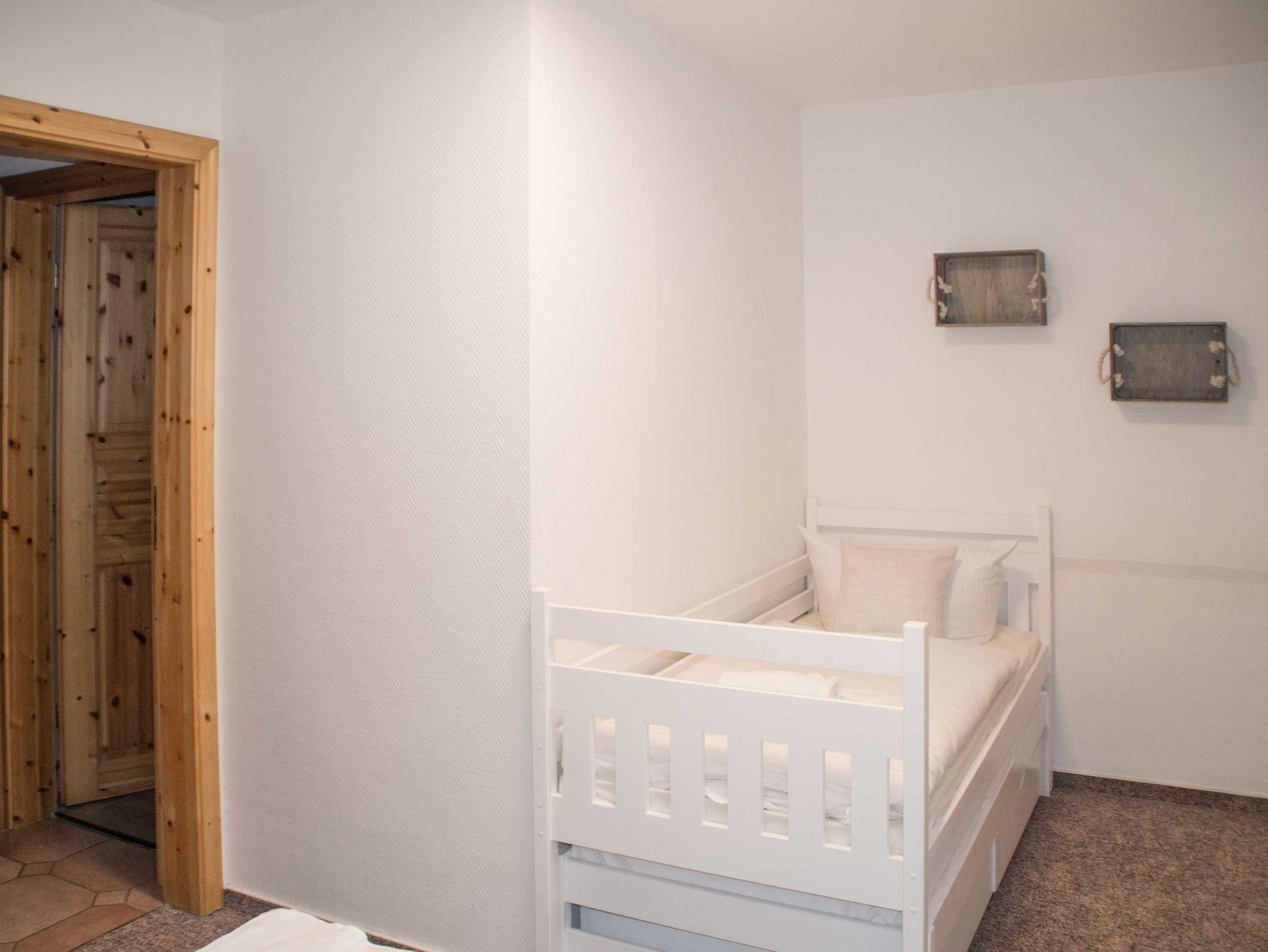 Im Schlafzimmer steht ein Doppelbett sowie ein Einzelbett zur Verfügung.