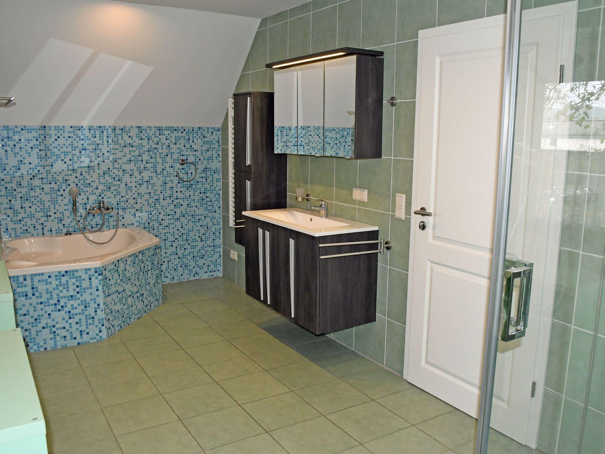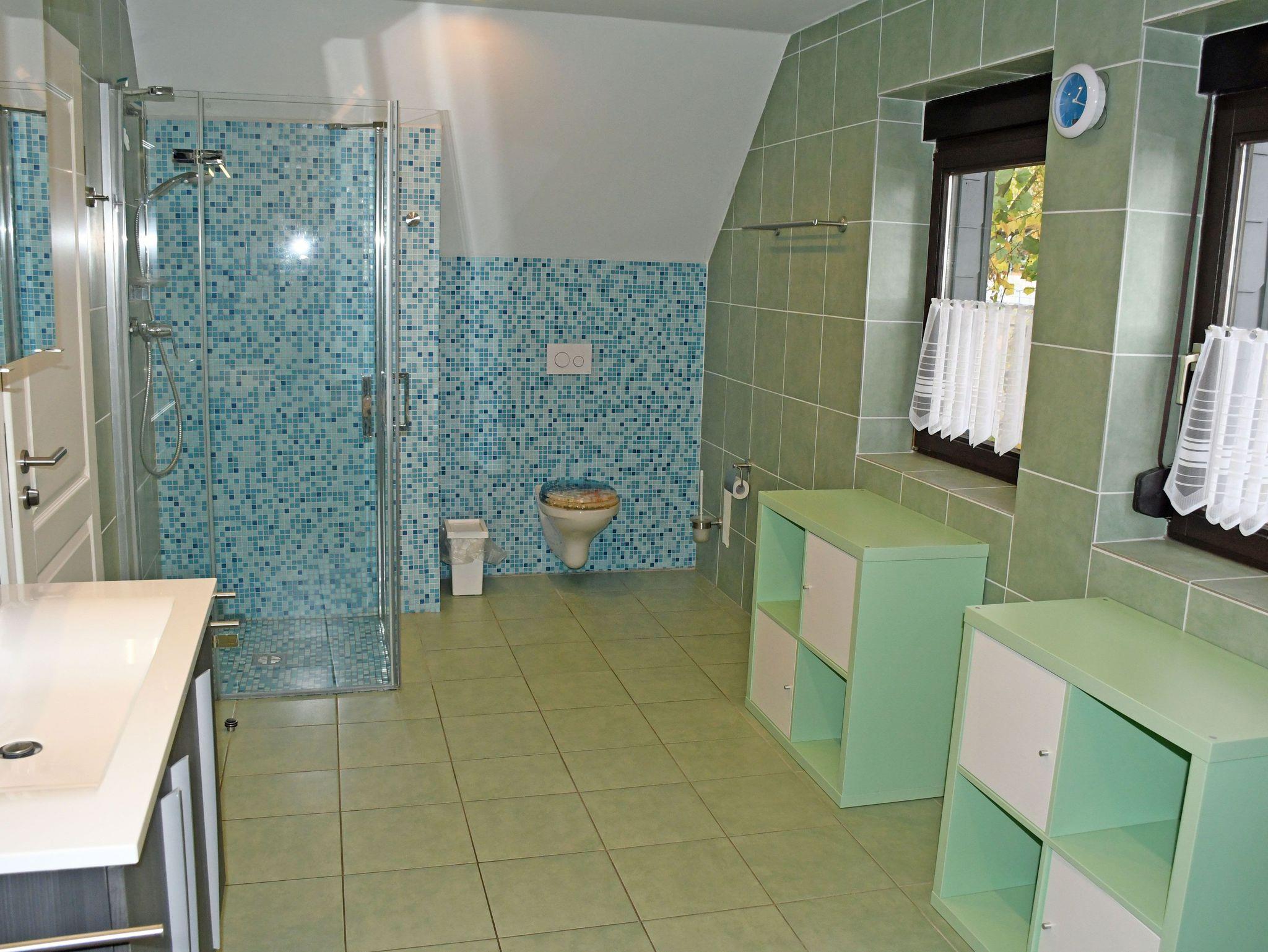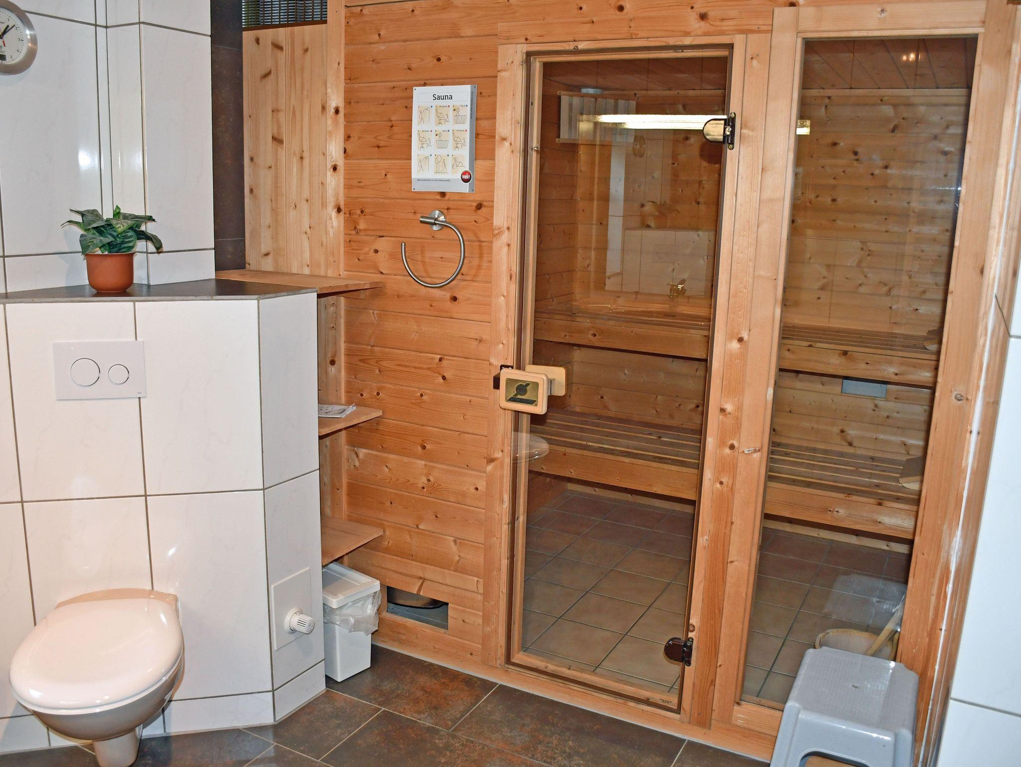 Ebenfalls im Erdgeschoss befindet sich ein modernes Badezimmer mit WC und ebenerdiger Dusche sowie Tageslicht. Die finnische Sauna lädt nach einem Strandspaziergang ebenfalls zur Entspannung ein.