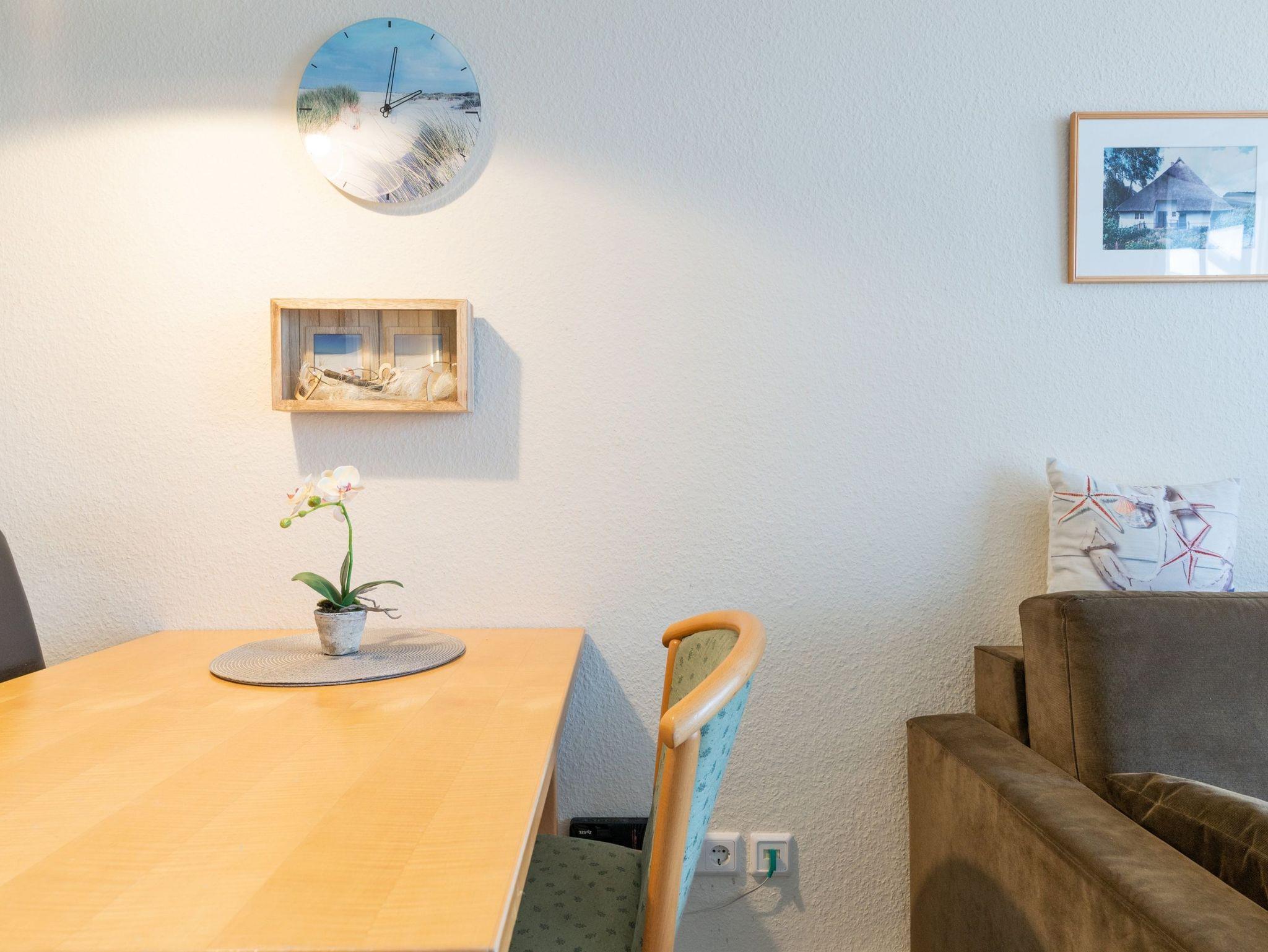 Die Ferienwohnung verfügt über kostenfreies WLAN und die Erstausstattung an Bettwäsche ist inklusive. Das Schlafzimmer verfügt über ein Doppelbett, im Wohnzimmer befindet sich zusätzlich eine Doppelschlafcouch. Darüber hinaus verfügt die Ferienwohnung über ein Bad mit Dusche/WC, Föhn sowie einem Kosmetikspiegel. Die voll ausgestattete, offene Küche mit Mikrowelle, Kaffeemaschine und Toaster lässt keine Wünsche offen. Ein Fernseher inkl. 3 Sky-Sender rundet die Einrichtung ab. Nach einem erlebnisreichen Urlaubstag können Sie auf dem Balkon in Nordostlage Platz nehmen. Der Ausblick und die Sitzgruppe sorgen hier für ein wunderbares Urlaubsgefühl. Im Nichtraucher-Apartment ist ein mitreisendes Haustier gestattet.