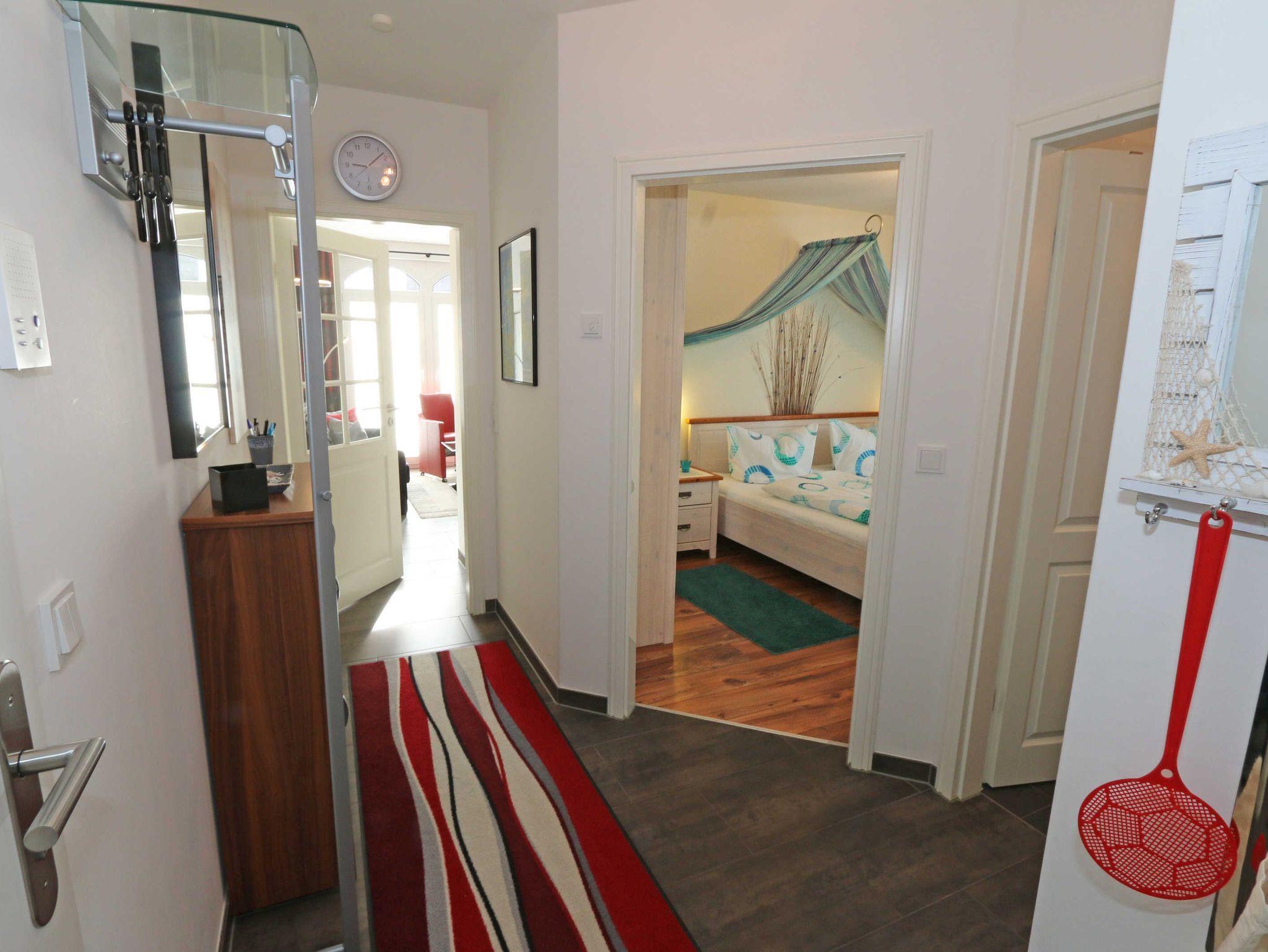 Die modern und hochwertig eingerichtete Nichtraucherwohnung befindet sich im 1. Obergeschoss. Sie umfasst ca. 45 qm und bietet für max. 2 Personen ausreichend Platz. Von der hauseigenen Tiefgarage gelangen Sie bequem mit dem Fahrstuhl direkt zur Wohnung. Der helle Wohnbereich bietet Ihnen eine bequeme Eckcouch mit Sessel, Couchtisch, Leselampe und sorgt so für eine angenehme Wohlfühlatmosphäre. Ein Smart-TV, Stereo-Anlage mit CD- und DVD-Player sowie eine Auswahl an Urlaubslektüre und verschiedene Gesellschaftsspiele bieten Ihnen eine abwechslungsreiche Unterhaltung. Eine WLAN-Verbindung steht Ihnen inklusive zur Verfügung. Die offene und helle Küchenzeile mit angrenzender Essecke ist mit hochwertigen Geräten wie einen 4-Zonen-Cerankochfeld mit Dunstabzugshaube, Backofen, Kühlschrank mit Gefrierfach, Geschirrspüler, Kombi-Mikrowelle, Kaffeemaschine, Wasserkocher, Toaster, Eierkocher sowie diversen Küchenutensilien ausgestattet. Ein überdachter, nach Süd-Ost, ausgerichteter Balkon mit Bestuhlung und Sonnenschirm erreichen Sie vom Wohnbereich. Das Schlafzimmer verfügt über ein Doppelbett (1,80 m x 2,00 m) mit 7-Zonen-Kaltschaummatratzen und verstellbaren Lattenrosten, Nachttischablagen und einem geräumigen Kleiderschrank. Für einen angenehmen Schlaf sorgt das Verdunkelungsrollo. Im Badezimmer befindet sich neben der runden und bodenebenen Glasdusche ein WC, ein beheizbarer Handtuchhalter, Fön, Kosmetikspiegel sowie ein moderner Waschplatz mit Beleuchtung. Bis auf das Schlafzimmer sind alle Böden gefliest und verfügen über eine Fußbodenheizung für angenehme Wärme. Ein Stellplatz (Nr. 02) ist direkt für Sie in der Tiefgarage (Einfahrtshöhe 2,00m) reserviert. Der Stellplatz (Doppelparker) ist für ein Auto bis 1,80 m Höhe und einer Länge bis 5,00 m geeignet (Gewicht bis 2 Tonnen). Waschmaschine und Trockner können im Untergeschoss gegen Extragebühr genutzt werden. Ein separater Fahrradunterstand ist auf dem Hintergrundstück durch einen kleinen Fußweg erreichbar. Für einen kurzen Weg zum Brötchenholen sorgt der im Haus zu findende Bäcker. Haustiere sind nicht erlaubt. Die Erstausstattung eines Wäschepaketes (komplette Bettwäsche, 1 Duschhandtuch, 2 kleine Handtücher) können Sie bis 14 Tage vor Anreise gegen einen Aufpreis dazu buchen oder durch eigene ergänzen. Ab 2 gebuchten Paketen erhalten Sie einmalig 1 Geschirrhandtuch und 1 Duschvorleger dazu.