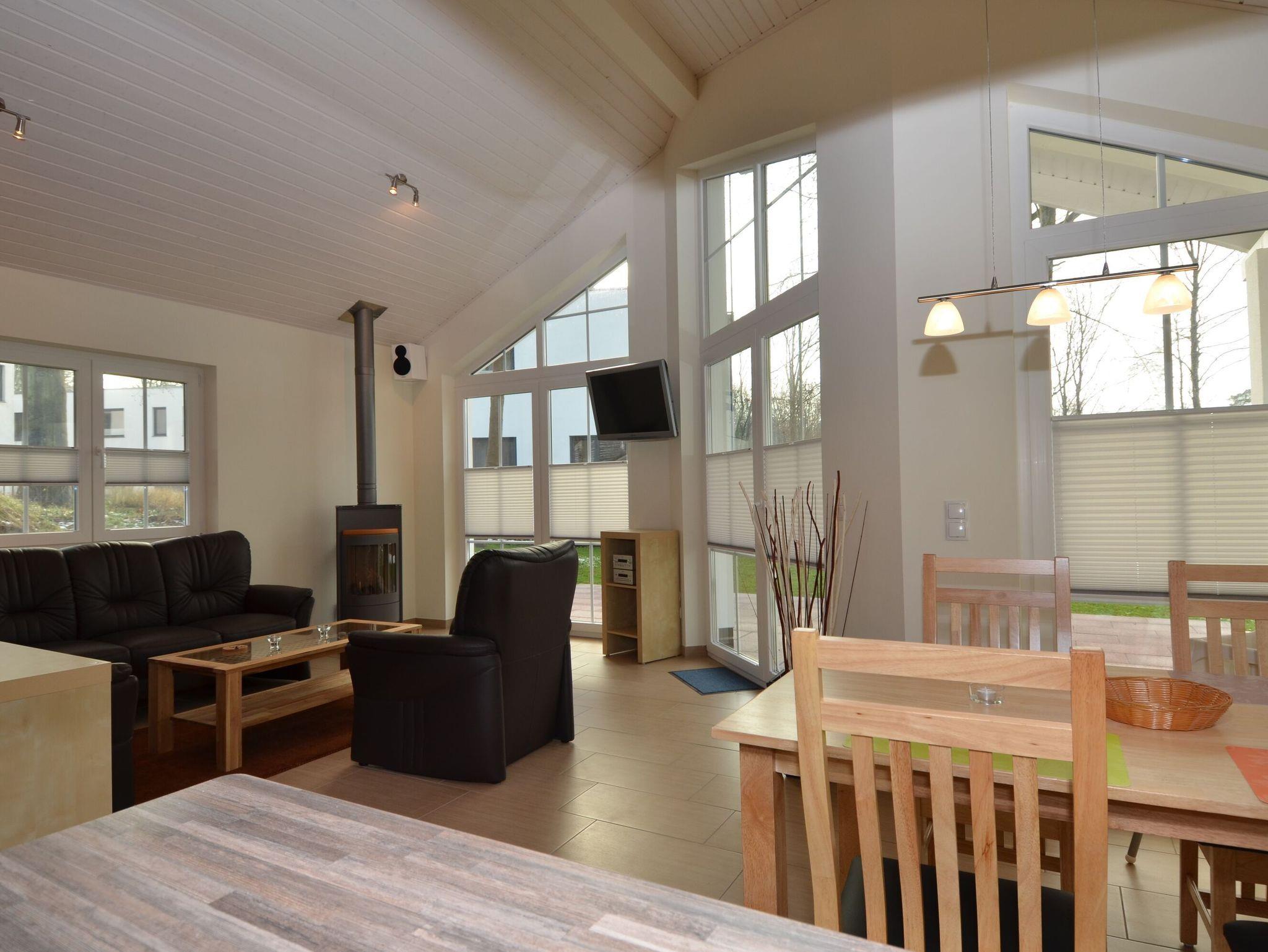 Der großzügige, lichtdurchflutete Wohnraum mit Essbereich ist behaglich und komfortabel eingerichtet, unter anderem mit einer bequemen Ledercouchecke, einem großformatigen Fernseher sowie einer Stereo-Audio-Anlage mit DVD-Player. Internet per DSL 7000-Flat steht Ihnen kostenfrei zur Verfügung. Ein Highlight in diesem Raum ist der Kaminofen mit komfortabler Erdgasbefeuerung per Fernbedienung - Behaglichkeit auf Knopfdruck!