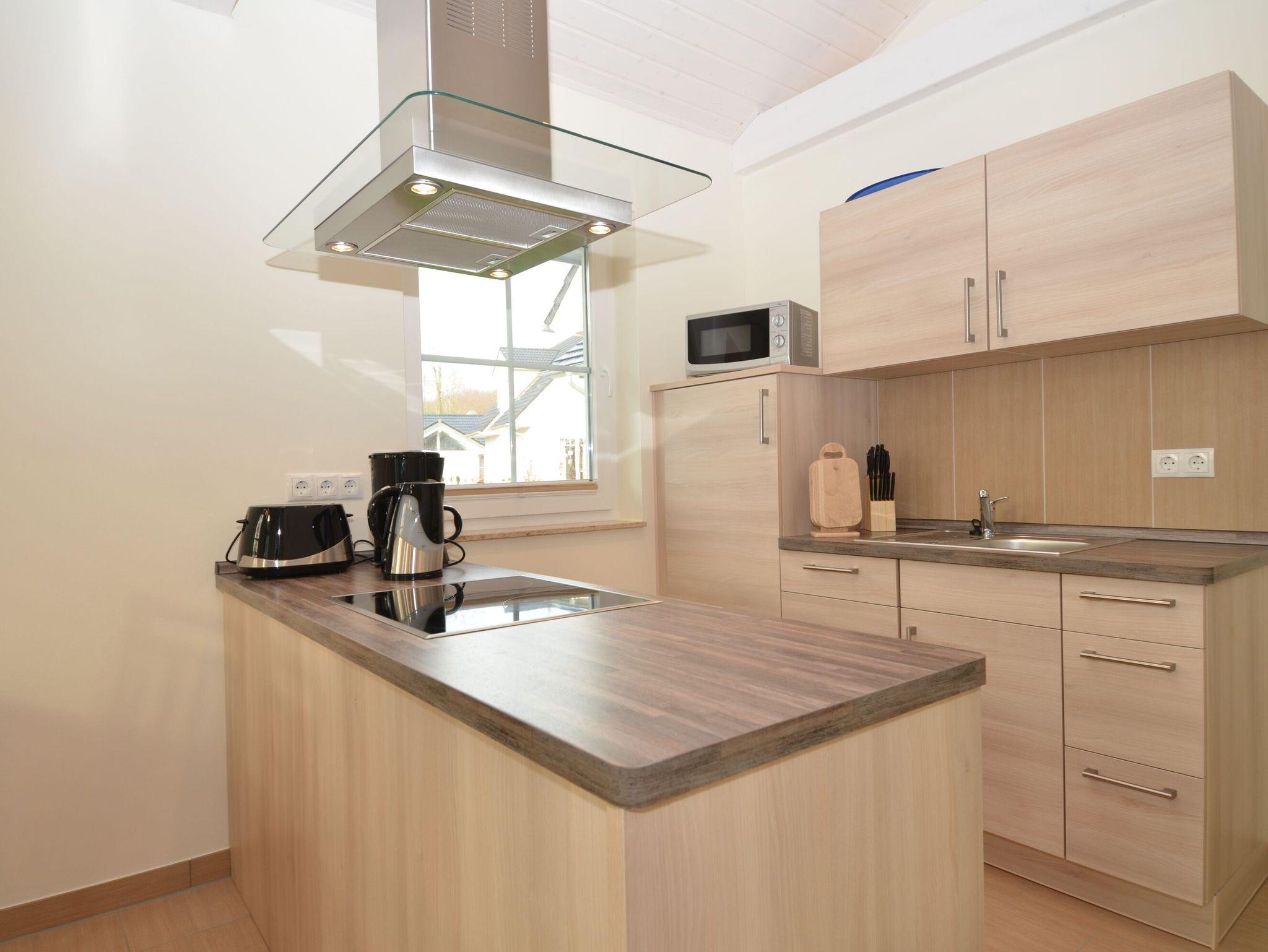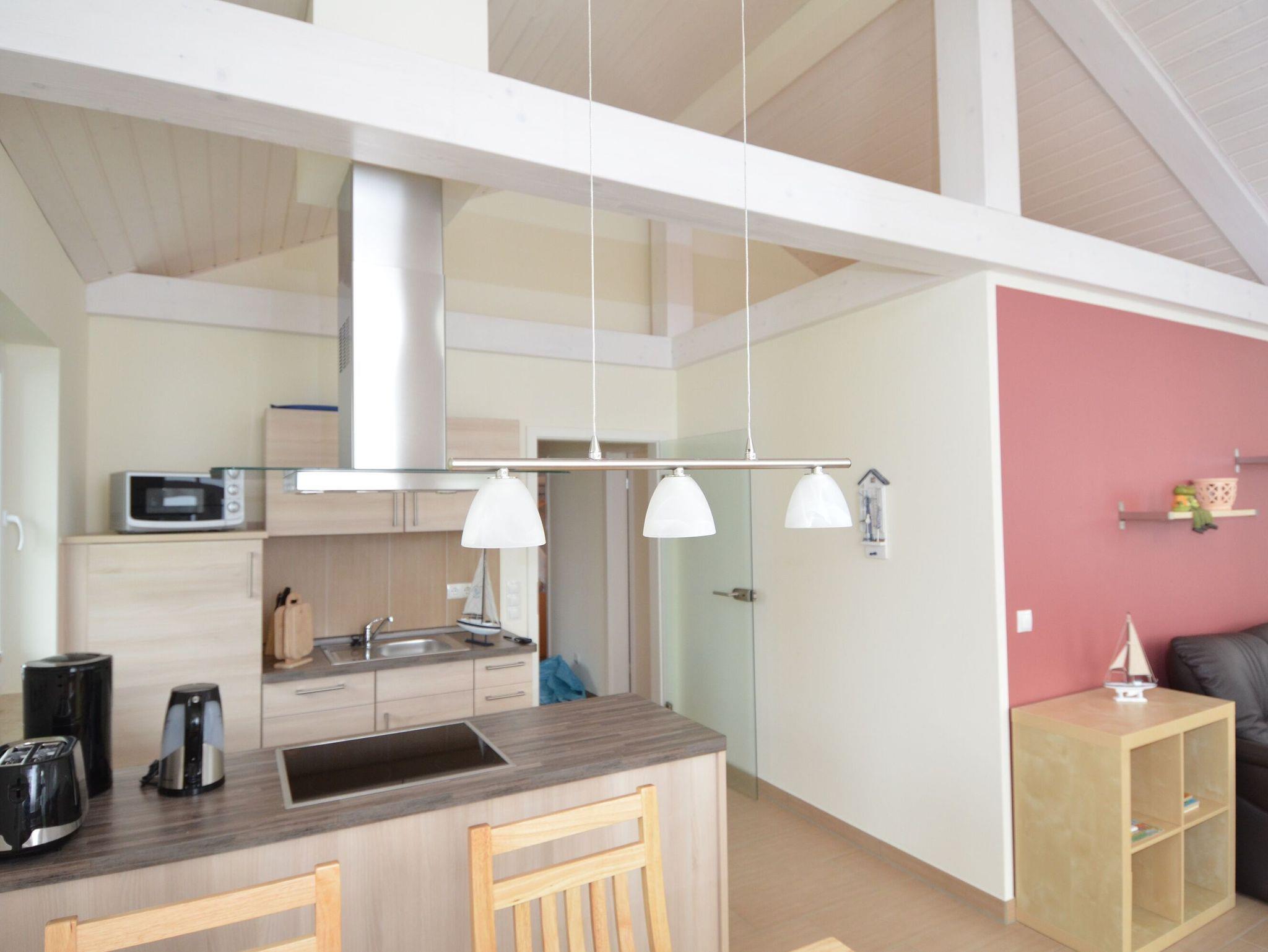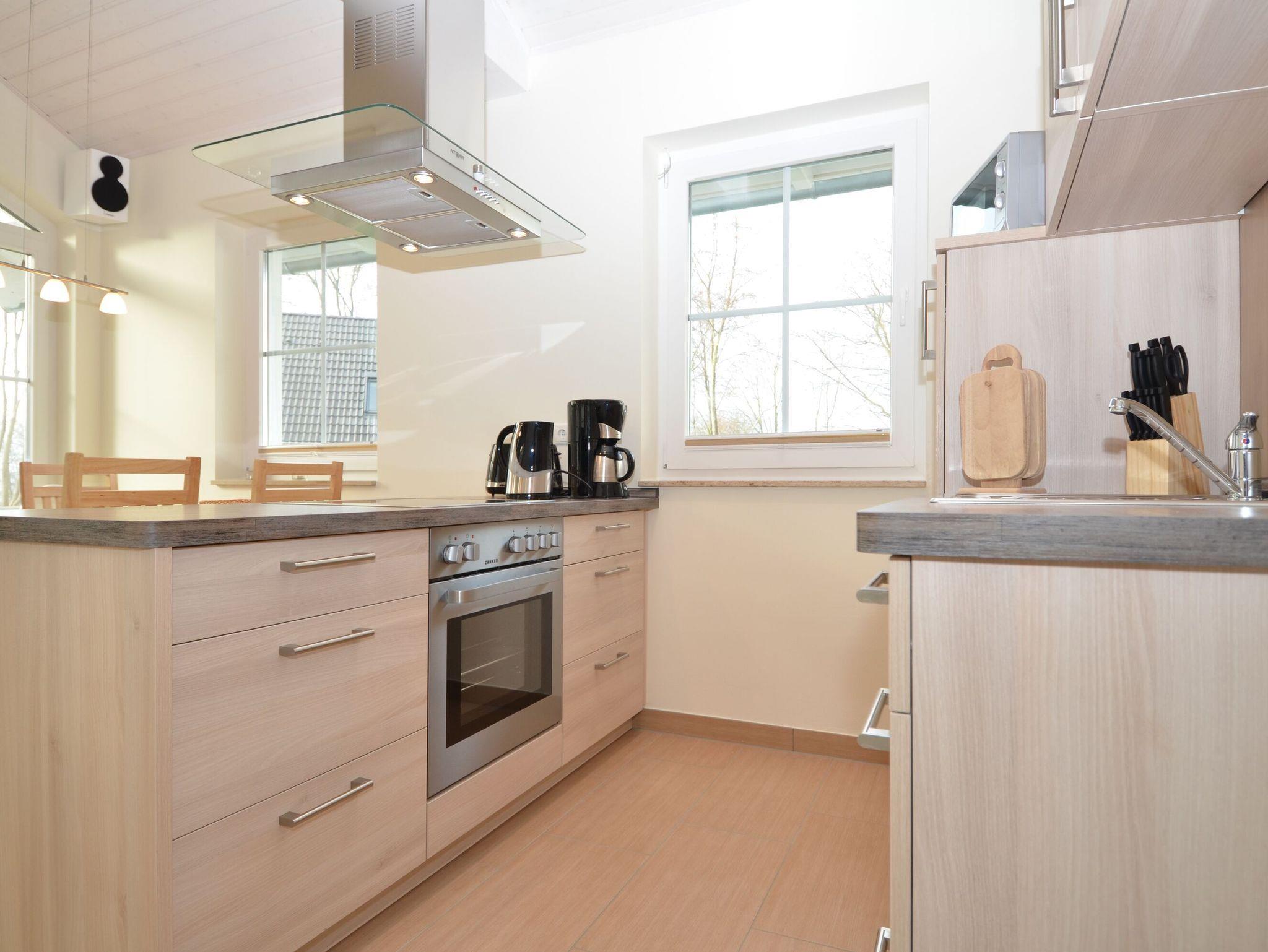 Auch die voll ausgestattete Küchenzeile fügt sich wunderbar ins Raumbild ein. Hier stehen Ihnen u.a. ein Kühlschrank mit Gefrierfach, eine Geschirrspülmaschine, ein 4-Zonen-Cerankochfeld mit Backofen, eine Mikrowelle, ein Mixer, Kaffeemaschine, Wasserkocher, Toaster und diverses Kleininventar zur Verfügung.