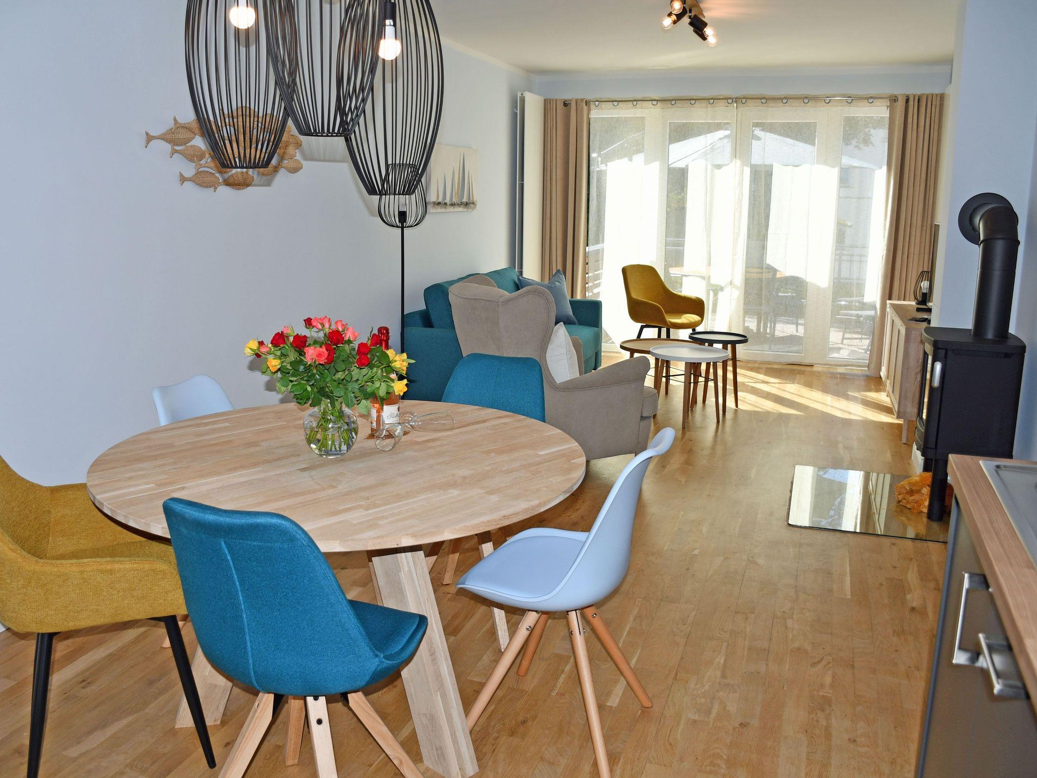 Moderne Ferienwohnung mit Kamin und Terrasse im Ostseebad Sellin, nahe Strand und Zentrum.