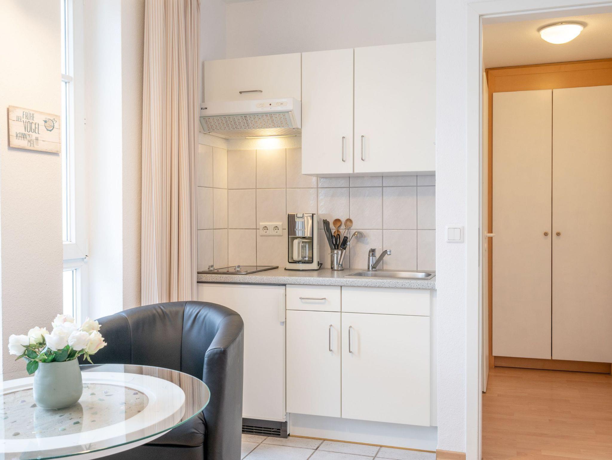 Nach einem erlebnisreichen Urlaubstag können Sie auf dem Balkon in Nordwestlage Platz nehmen. Im Nichtraucher-Apartment sind keine Haustiere gestattet.