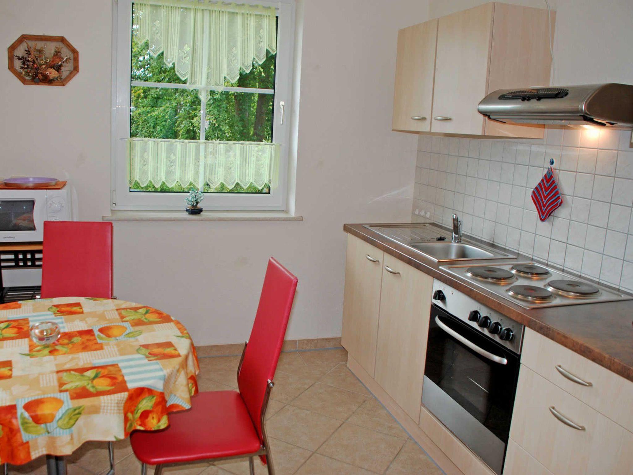Das Ferienappartement Lisa (2 Erwachsene, Wohnzimmer, Schlafzimmer, Küche, Bad/Dusche, Terrasse) befindet sich in einem sehr schön und ruhig gelegenen Einfamilienhaus mit separaten Eingang am Rande eines Buchenwaldes und verfügt über kostenloses WLAN.
