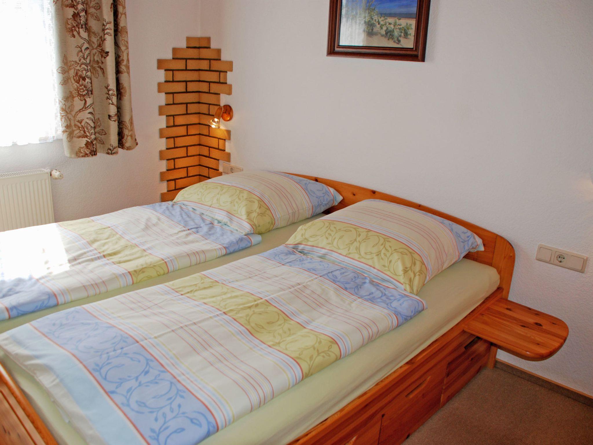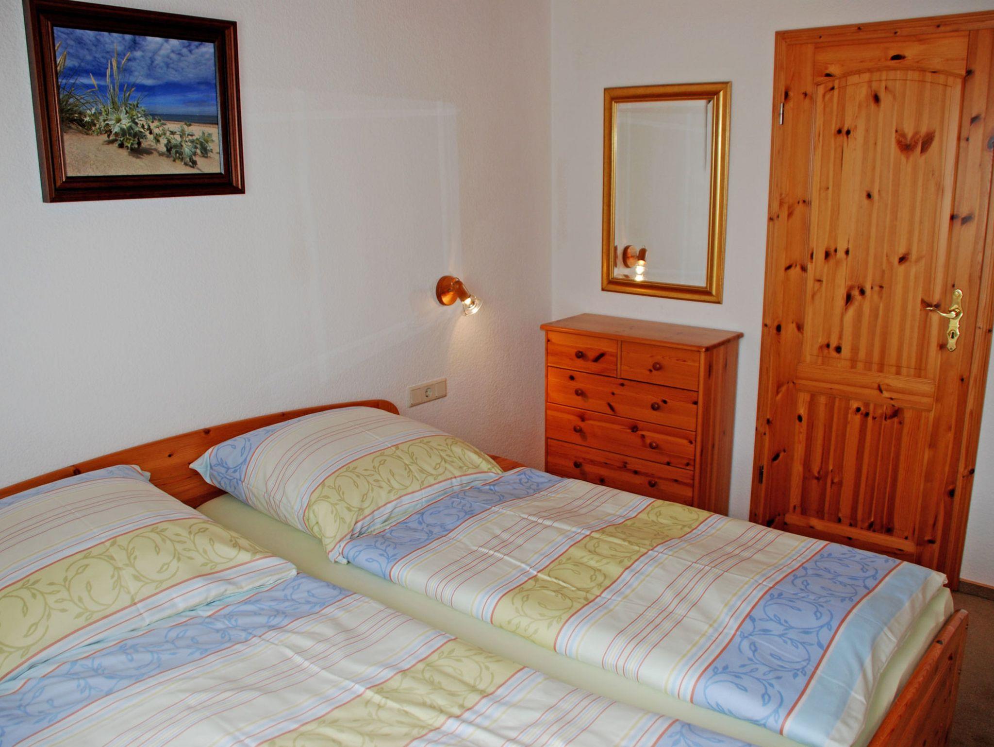 Im ersten Schlafzimmer stehen ein bequemes Doppelbett mit Nachttischen und Leselampen und ein begehbarer Kleiderschrank. Im zweiten Schlafzimmer stehen zwei Einzelbetten. Bei Ihrer Anreise sind die Betten selbstverständlich bereits mit Bettwäsche bezogen. Handtücher bitten wir mitzubringen oder gegen Aufpreis dazu zu buchen.