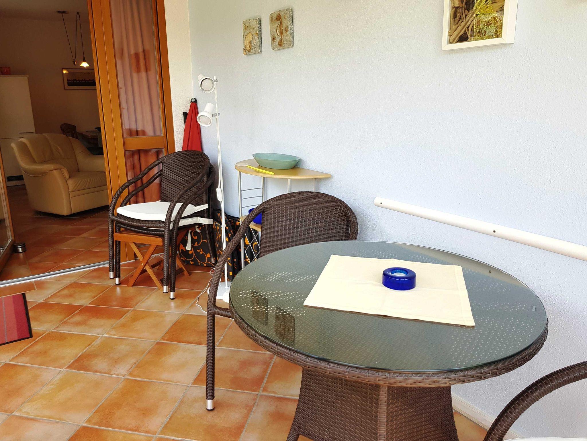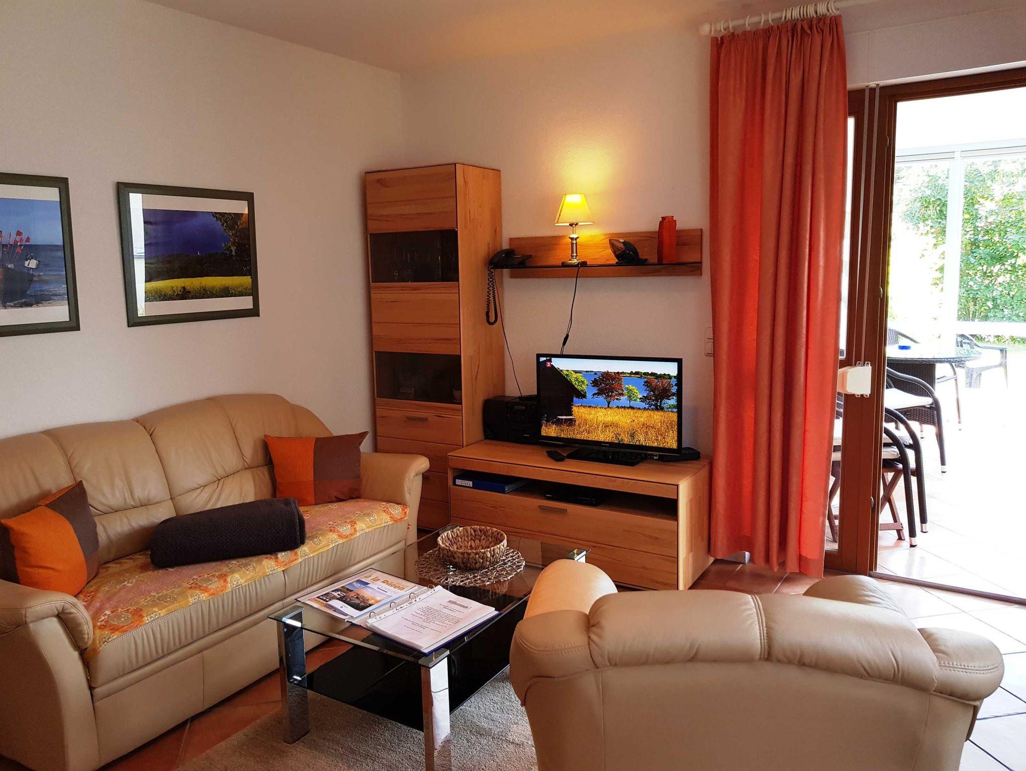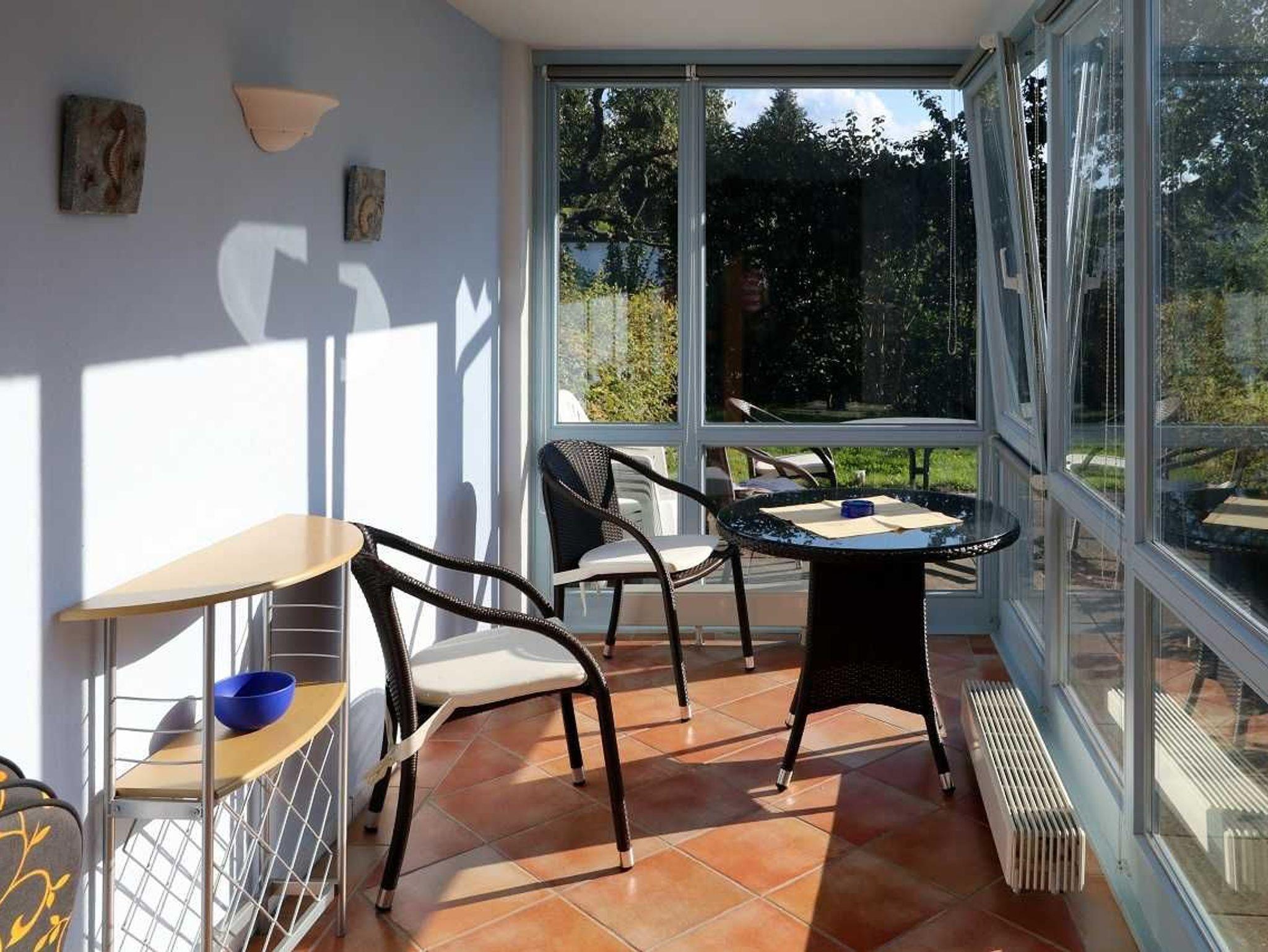Gemütliche Ferienwohnung mit Wintergarten, Terrasse und Seeblick in Sellin, ideal für einen erholsamen Urlaub an der Ostsee.