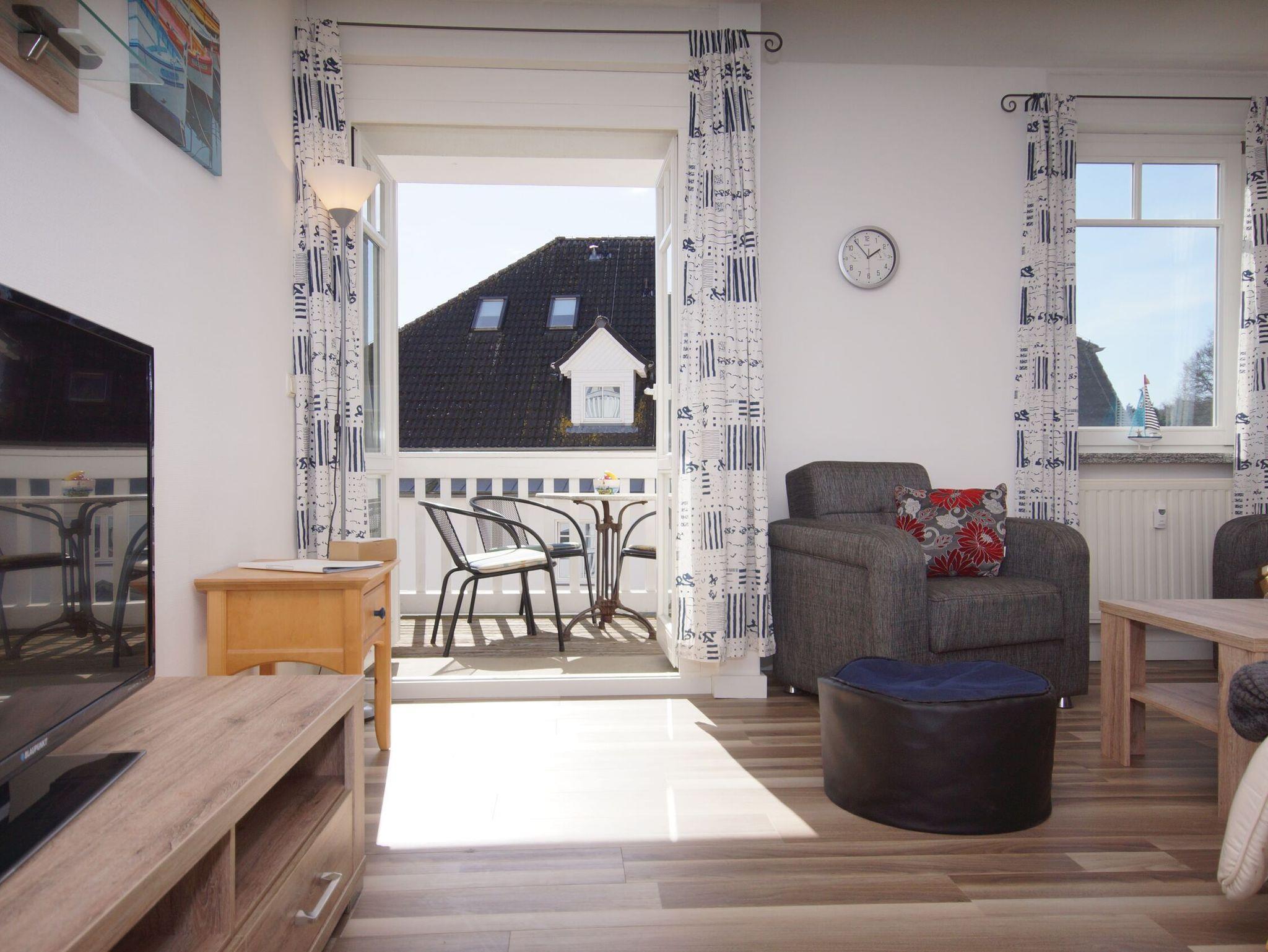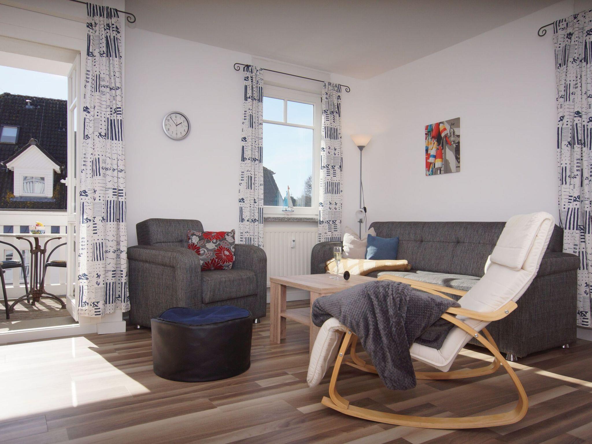 Die Ferienwohnung Flaschenpost in Sellin bietet 50 qm Komfort nur 800 Meter vom Strand entfernt mit Balkon und voll ausgestatteter Küche.