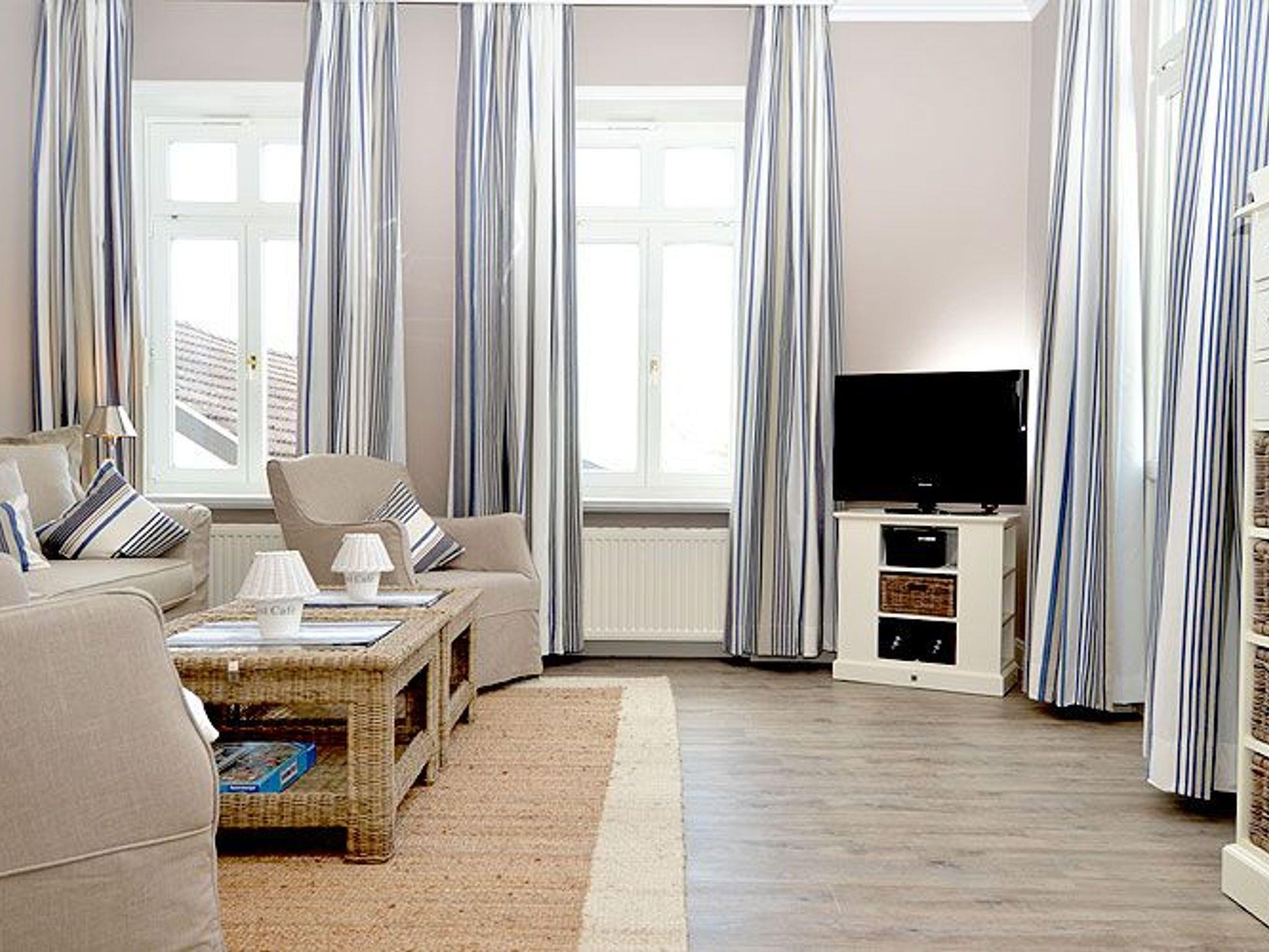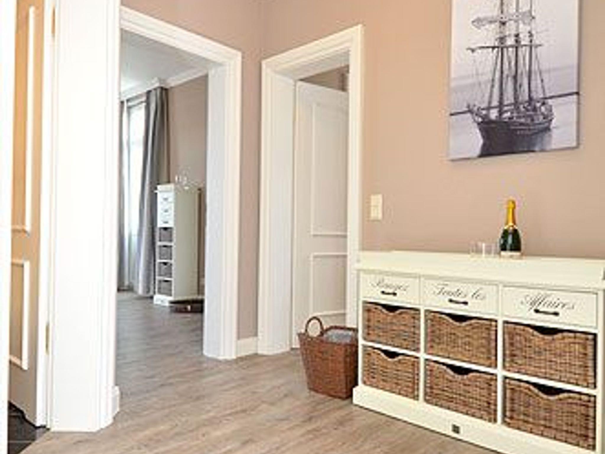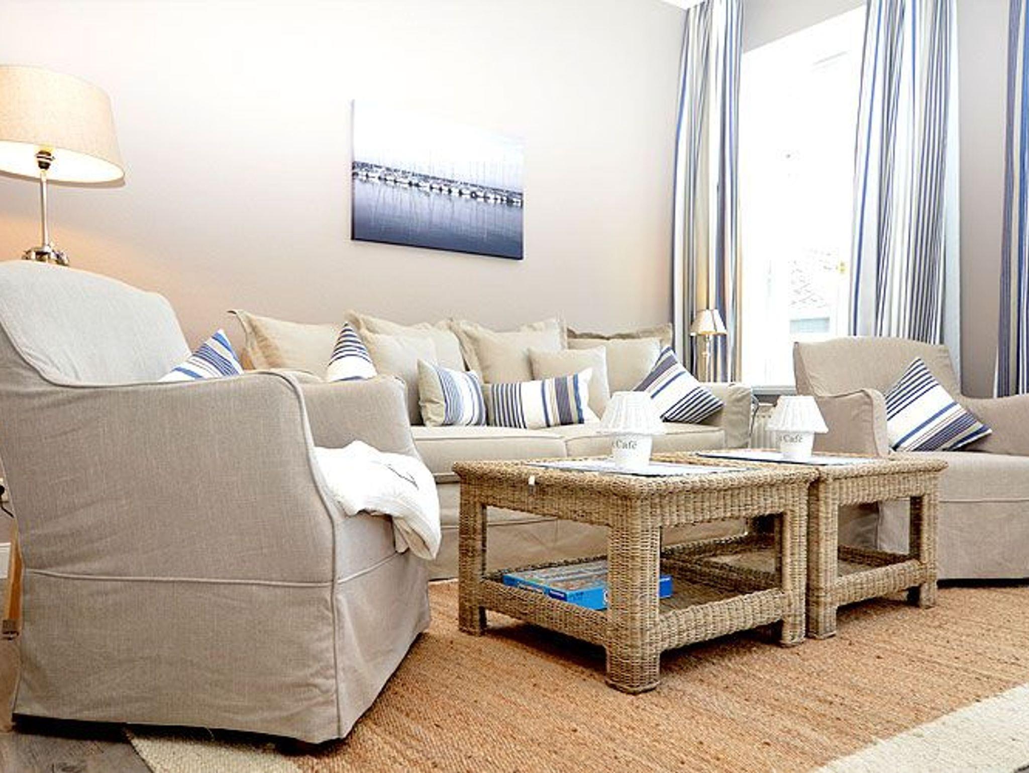 Dieses rund 50 m² große und stilvoll eingerichtete 2-Raum-Appartement befindet sich im 2. Obergeschoss und hat einen 5 m² möblierten Balkon. Die wunderschönen Landhausmöbel, ausgesuchte Stoffe und die warmen Erdtöne schaffen mit den leicht maritimen Akzenten ein ganz einzigartiges Wohlfühlambiente.