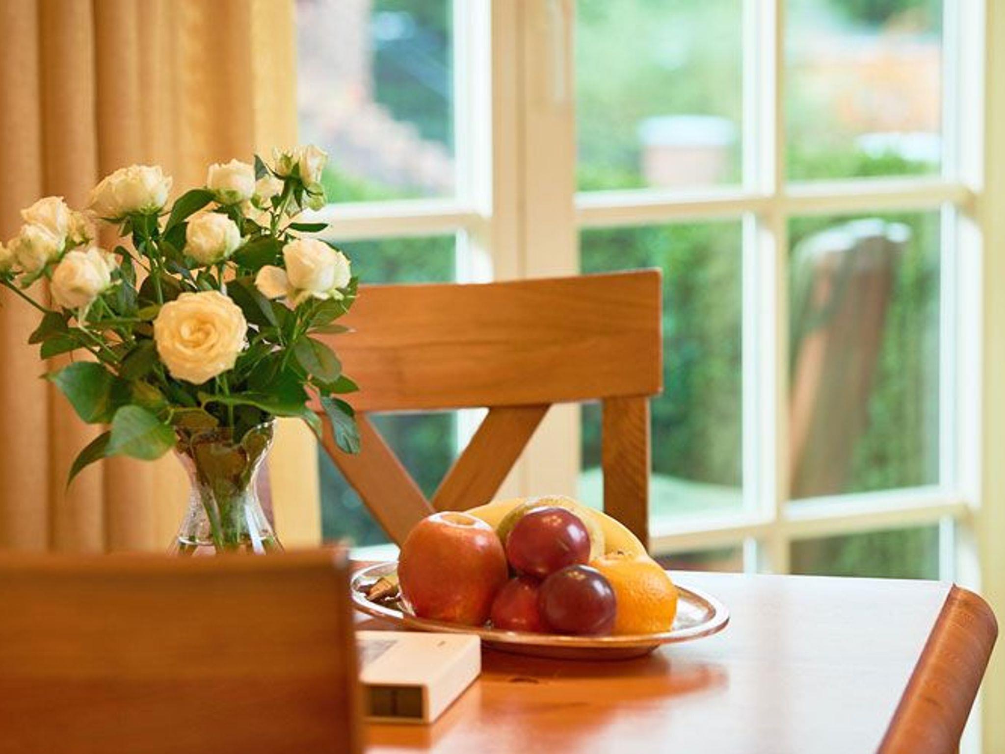 Im Wohnzimmer befinden sich eine gemütliche Eckcouch mit einem Loewe-Flatscreen-TV mit Kabel Digital Home HD-Empfang sowie eine Bose Sound Touch 20 - ein Spitzenklangerlebnis mit Internetradio. Sie können Ihre Musik über Smartphone oder Tablet aus per Bluetooth abspielen. Auf Wunsch stellen wir Ihnen auch einen DVD-Player zur Verfügung.