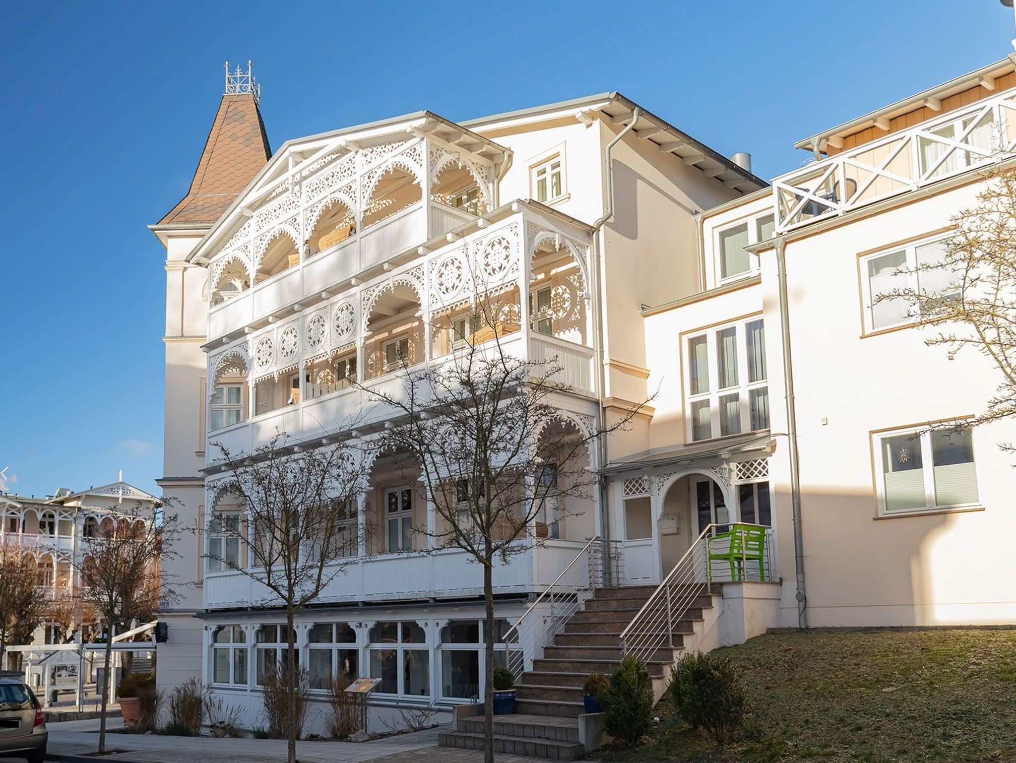 Moderne Ferienwohnung in der Villa Sonneck Sellin, nahe Strand und Seebrücke mit Sauna und Balkon.