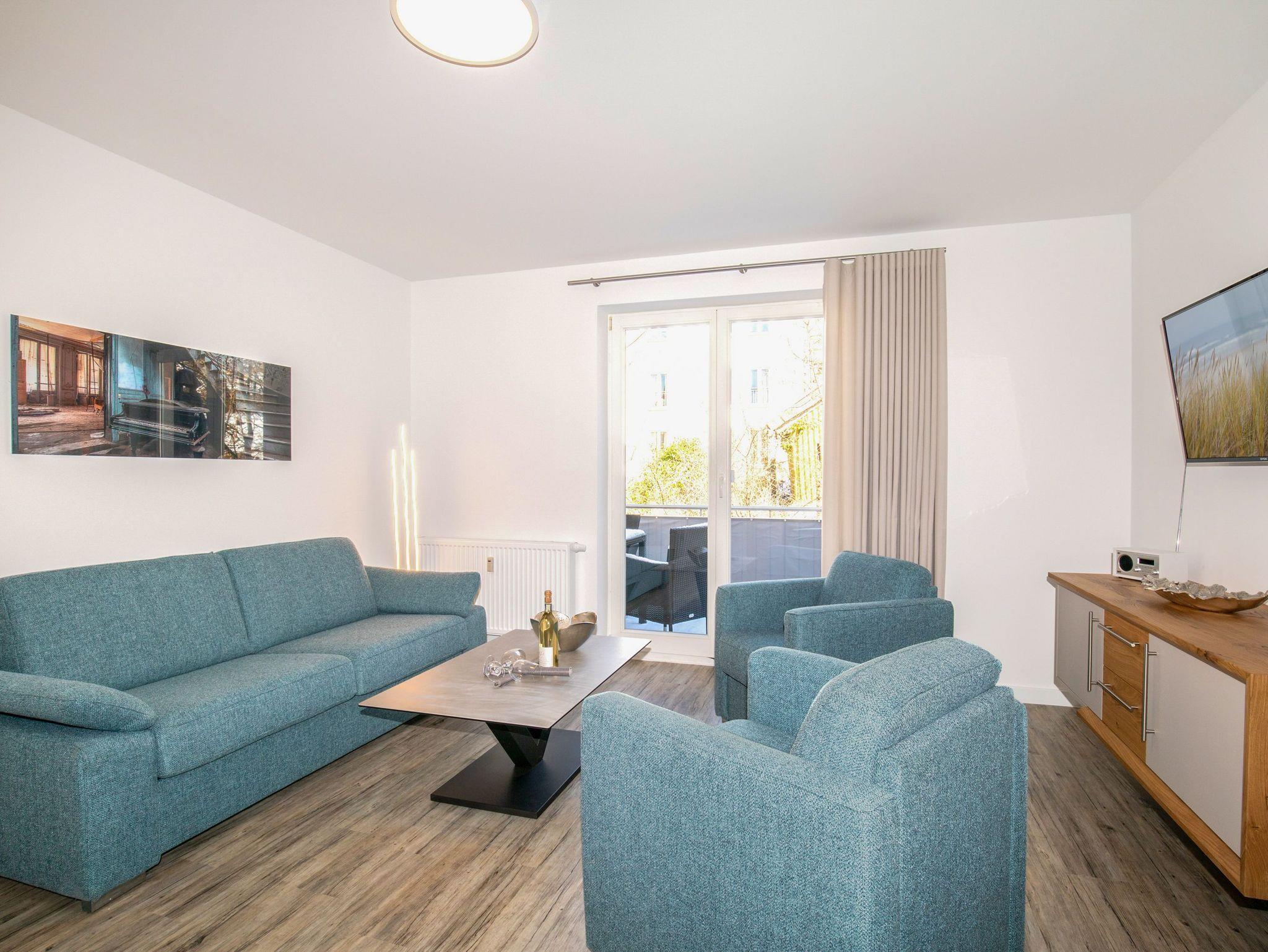 Im ersten Obergeschoss der Villa Sonneck begrüßt Sie dieses schöne Domizil. Die Ferienwohnung wurde im Frühjahr 2023 komplett saniert. Direkt an Sellin´s Prachtstraße -der Wilhelmstraße- gelegen, bietet diese Unterkunft einen tollen Startpunkt um die unzähligen Restaurants und den feinsandigen Ostseestrand zu erkunden. Auf gut 65qm Wohnfläche, unterteilt in Wohnzimmer mit Schlafcouch, 2 Schlafzimmer sowie Duschbad, bietet diese Wohnung ausreichend Platz für bis zu 6 Personen. Per Lift erreichen Sie den Saunabereich im Untergeschoss des Hauses, welcher an kalten Tagen für wohltuende Wärme sorgt. Hier gibt es auch einen direkten Zugang zum hauseigenen Restaurant (Italiener), welches die Gäste gerne mit diversen Köstlichkeiten versorgt. Ebenso befinden sich Waschmaschine und Trockner auf dieser Etage. Für Ihren PKW ist ein kostenfreier Stellplatz auf dem Parkplatz des Hauses reserviert. In der Wohnung gibt es kostenfreies W-Lan/Internet. Der große Balkon der Wohnung bietet ausreichend Platz für 6 Personen und lädt an schönen Sommertagen zum gemütlichen verweilen ein.