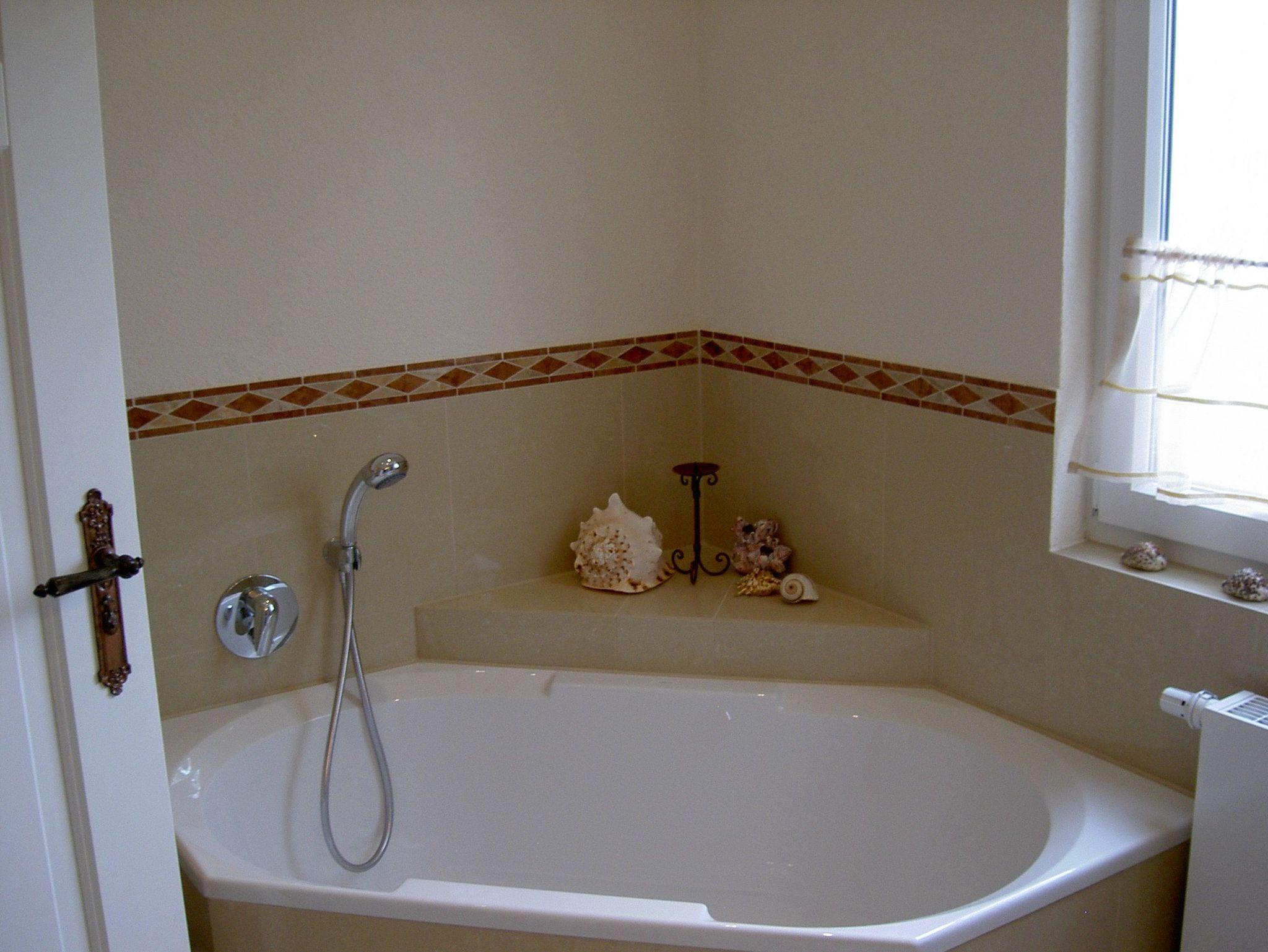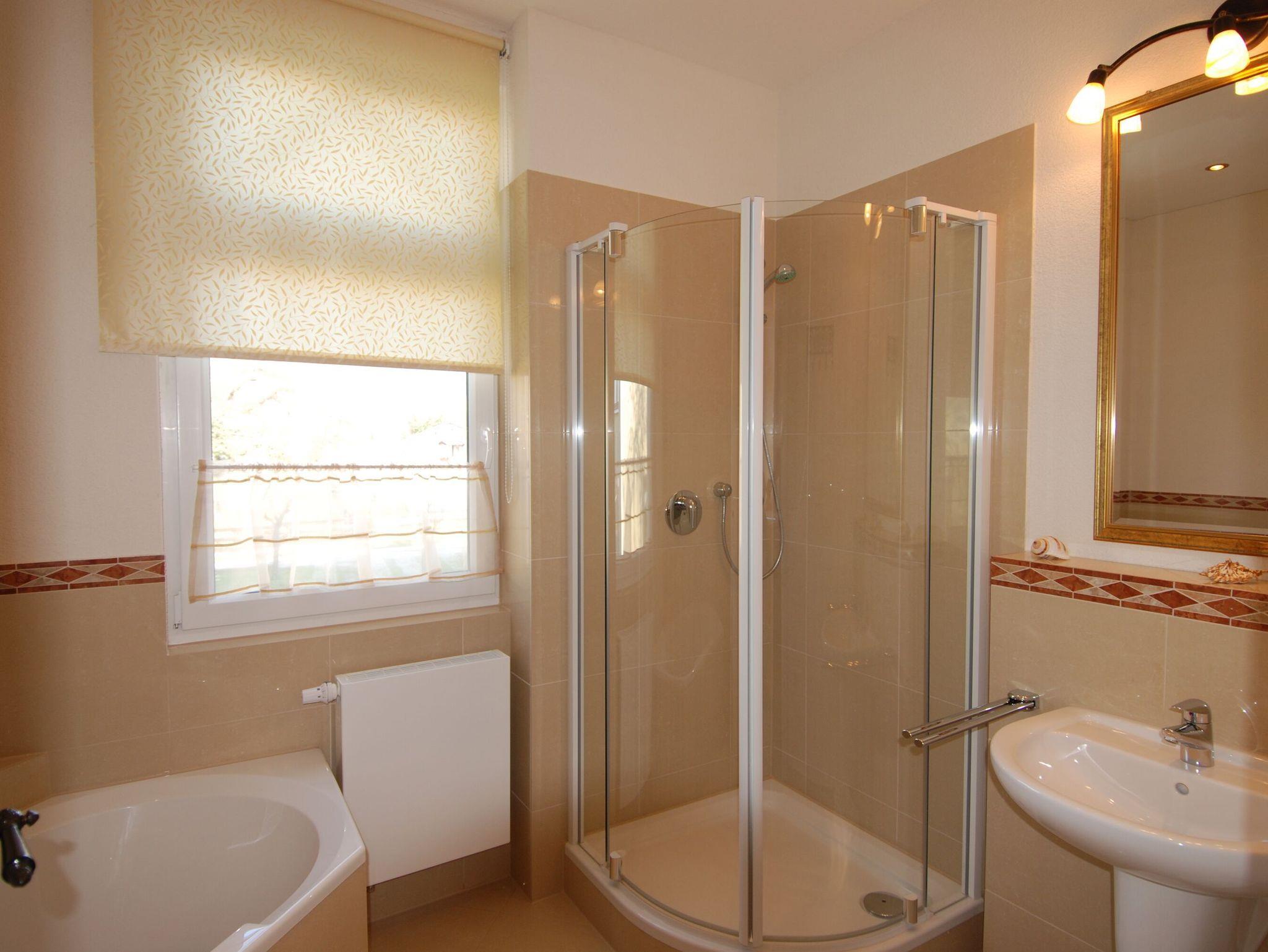 Das große Badezimmer Ihrer Unterkunft ist mit Dusche/WC und einer formschönen Badewanne ausgestattet.