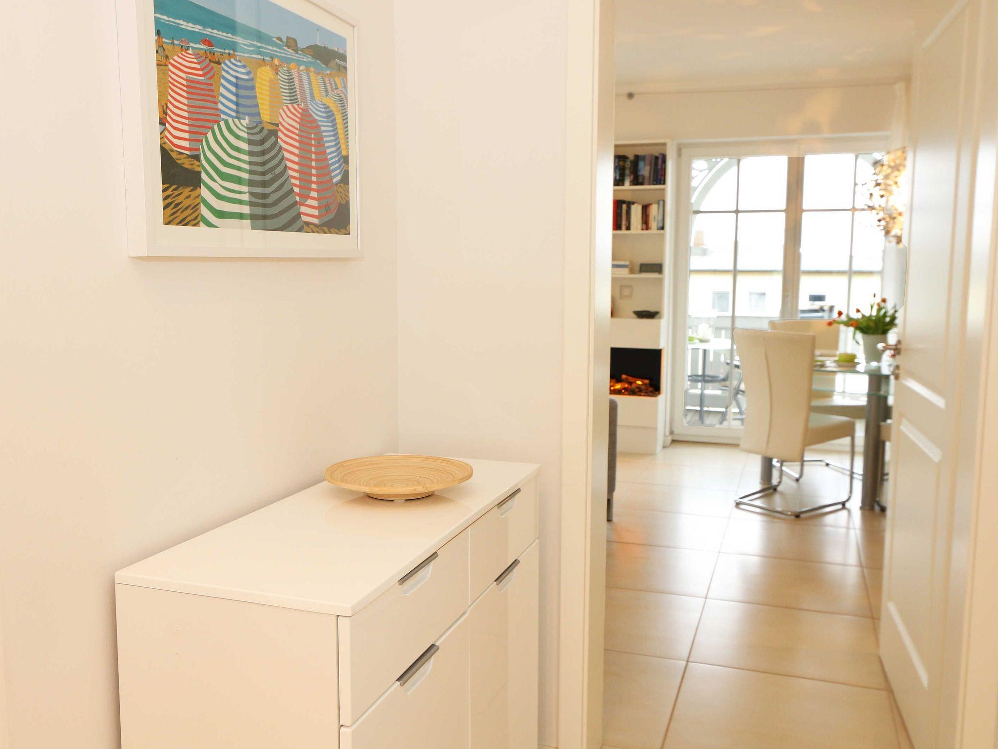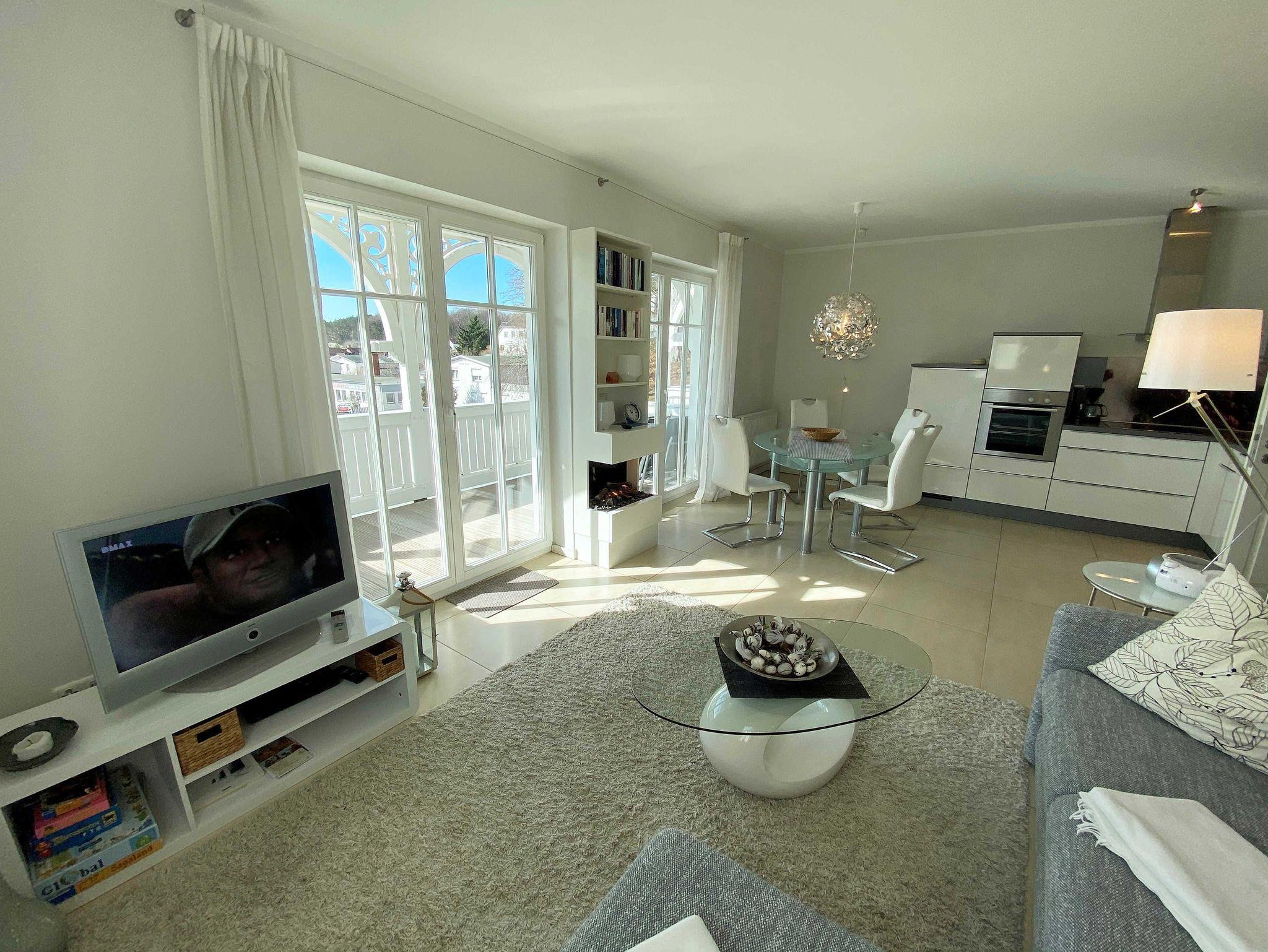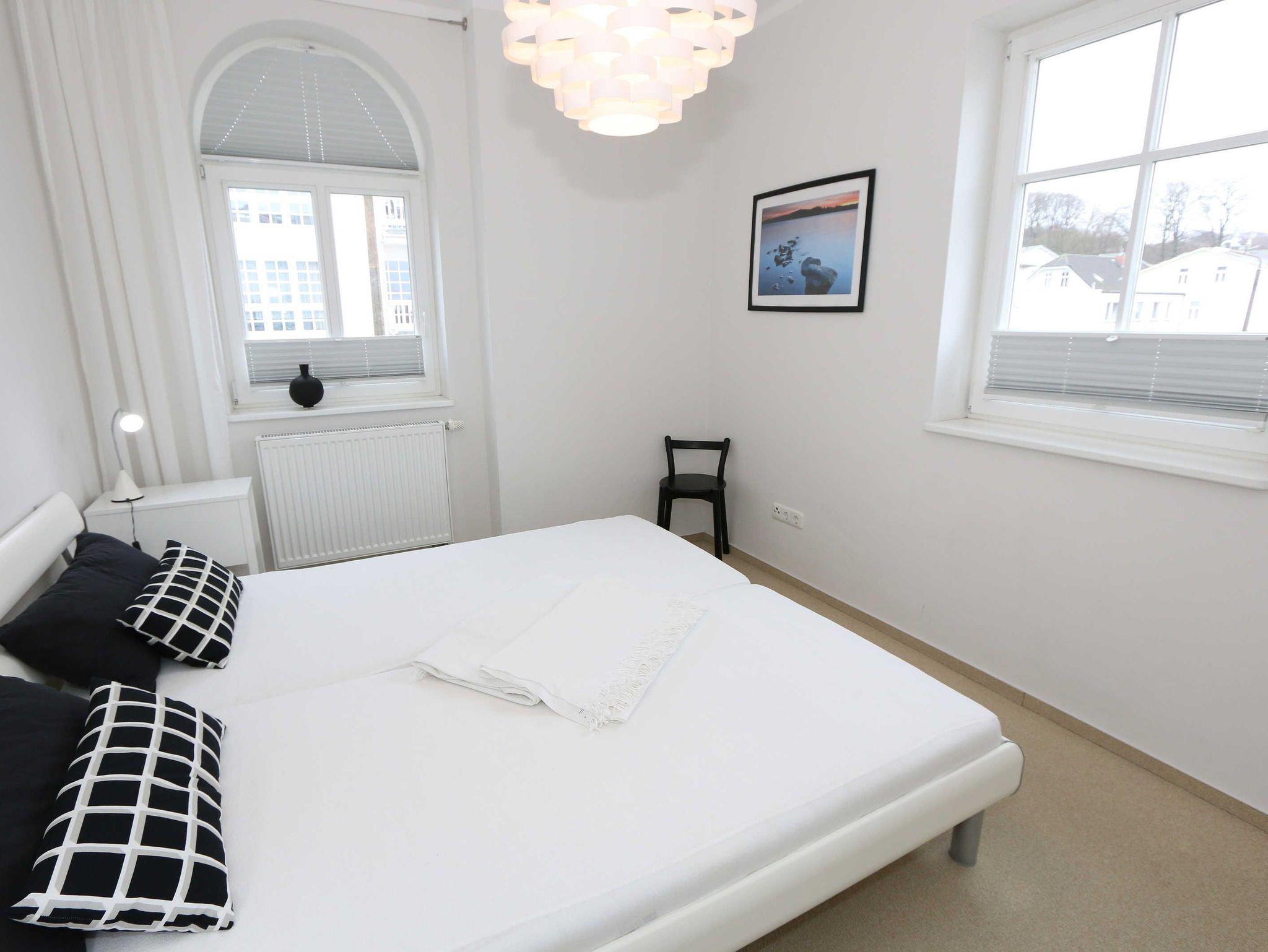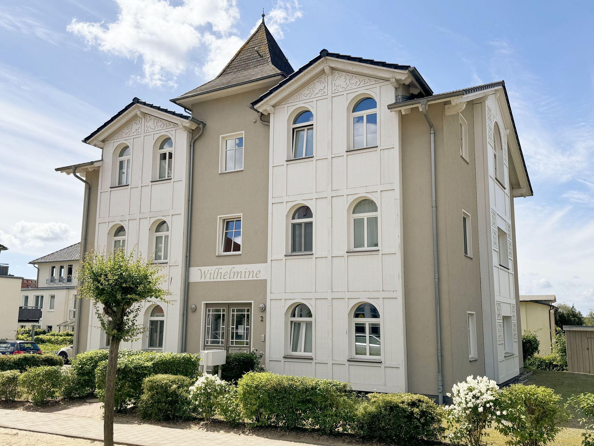 Die Villa Wilhelmine, ein ruhiges Haus mit sechs Wohnungen, liegt sehr zentral in einer Seitenstraße der bekannten Wilhelmstraße und ist in Anlehnung an deren prächtige Villen ebenfalls im Stil der Bäderarchitektur entstanden. Von hier sind die berühmte Selliner Seebrücke und der feinsandige Strand in wenigen Minuten zu Fuß erreichbar. Das im weitläufigen Seepark am Selliner See gelegene Freizeitbad und ein Fahrradverleih befinden sich in etwa 500 m Entfernung. Die liebevoll eingerichtete, 66 qm große Wohnung Kreidezimmer mit zwei Schlafzimmern liegt im 1. Stock des Gebäudes zur Gartenseite. Sie hat einen großzügigen Süd-Balkon, der im Sommer bequemen Sitzplatz zu Ihren Mahlzeiten bietet. In der kühleren Jahreszeit sorgt ein eleganter Elektrokamin für Gemütlichkeit im modern eingerichteten Wohnzimmer.