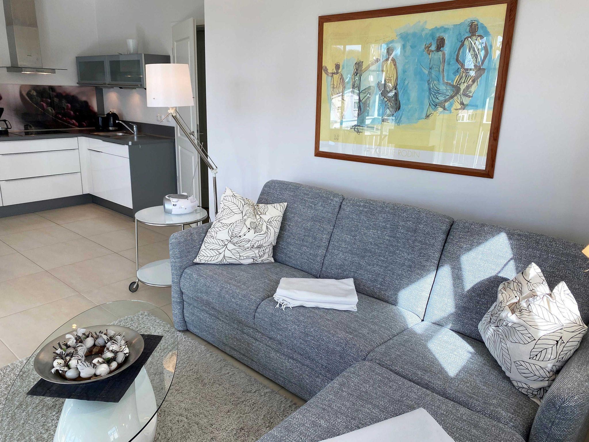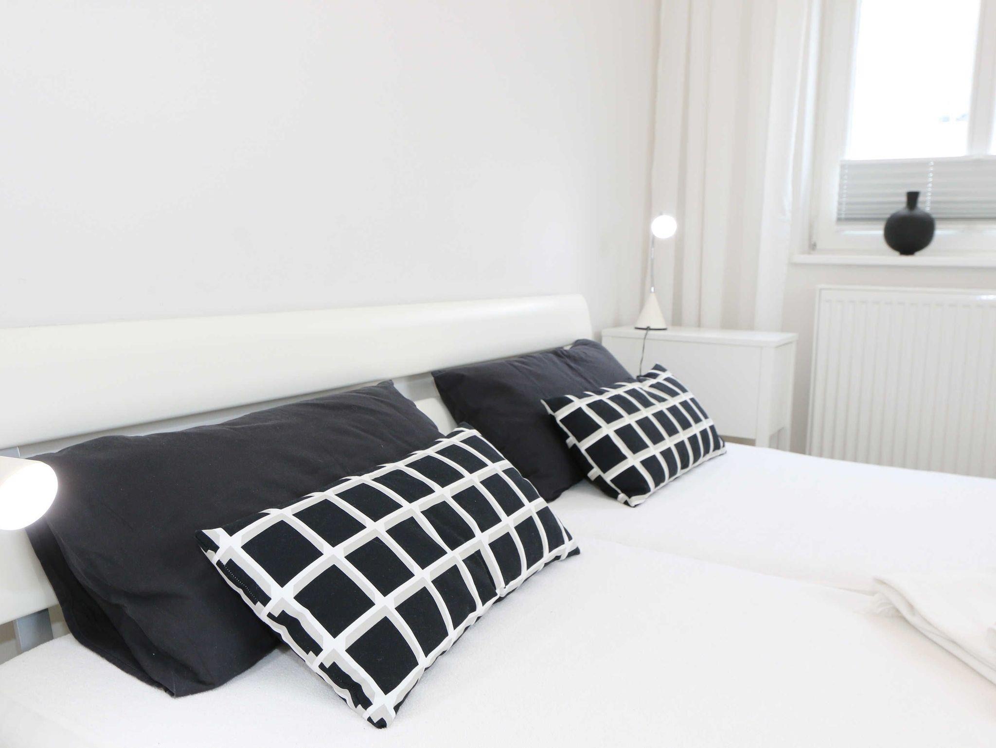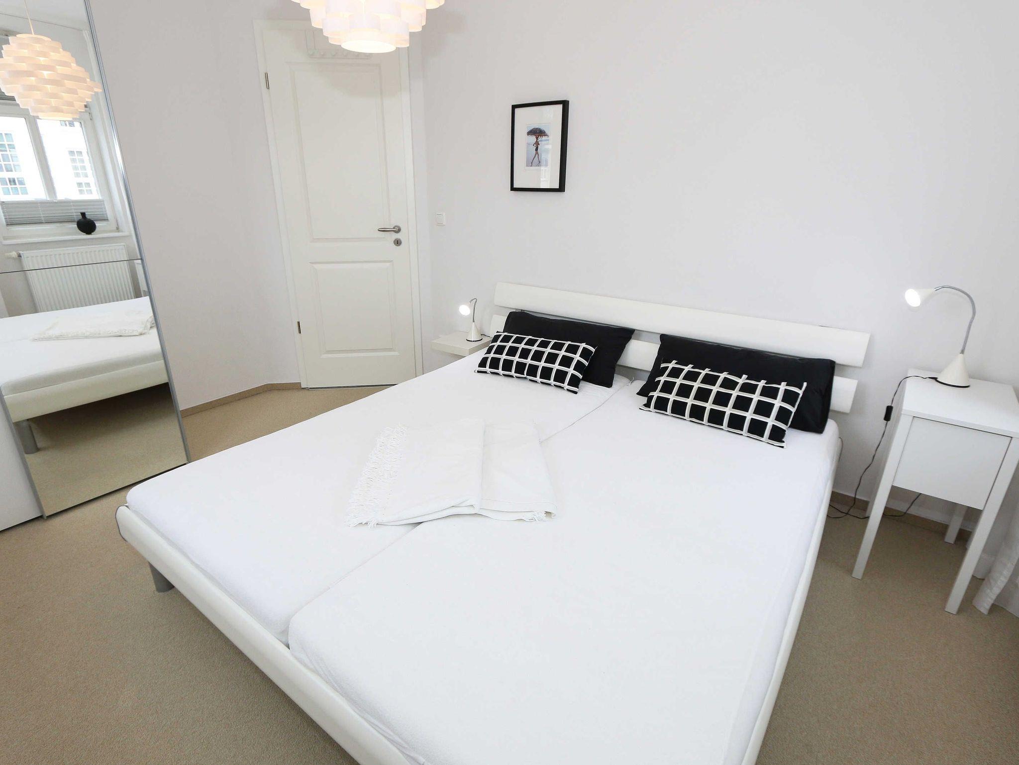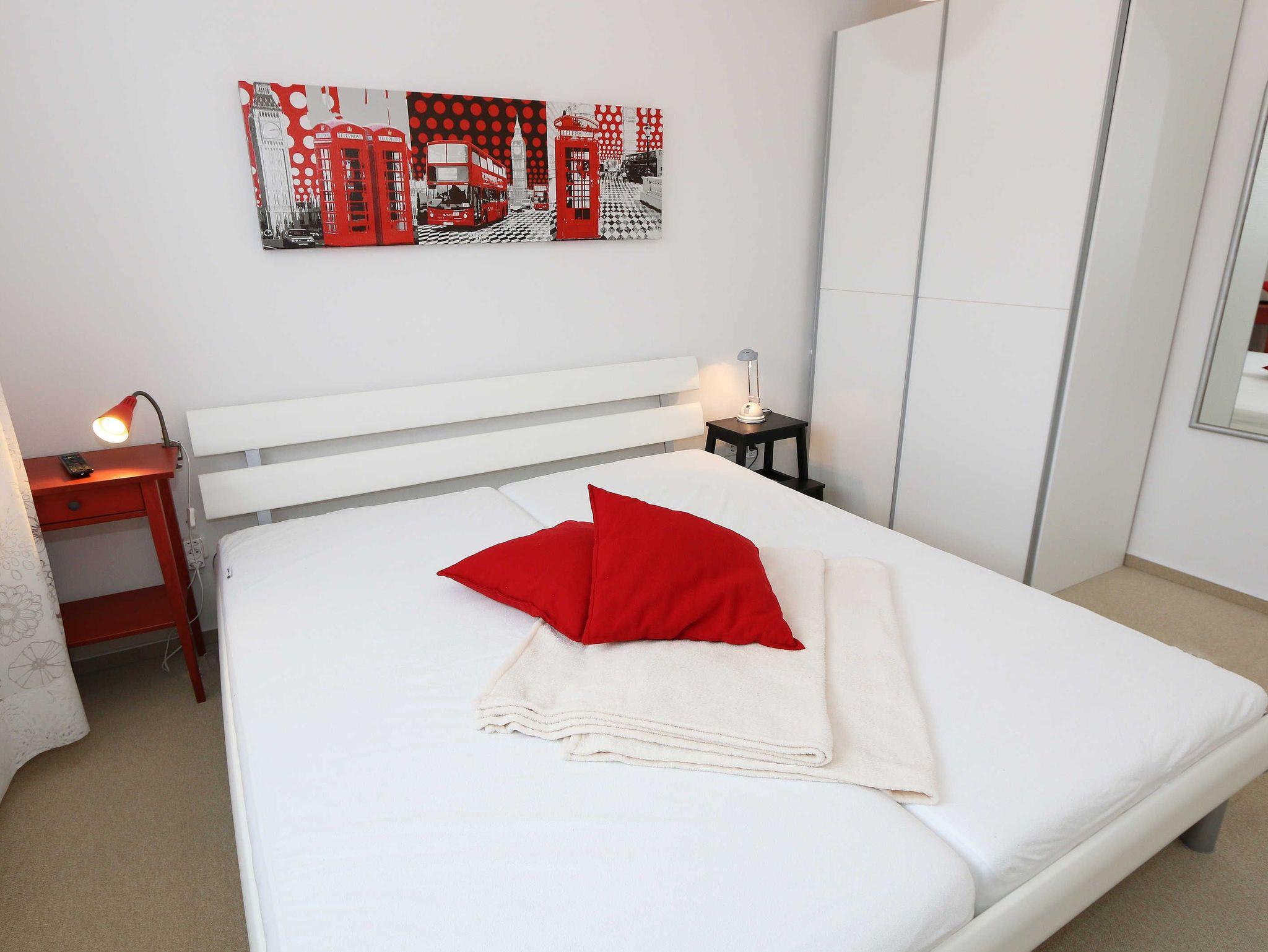 Die helle Nichtraucherwohnung mit Fliesenboden und Teppich in den Schlafzimmern ist geschmackvoll eingerichtet. Mit Ihren ca. 66qm bietet Sie ausreichend Platz für max. 2 bis 4 Personen. Die harmonisch integrierte Küchenzeile erlaubt mit einer Heißluft-Mikrowelle und Grill in Kombination, Ceran-Kochfeld, Backofen, Spülmaschine, Kühlschrank mit Gefrierfach, Wasserkocher, Toaster, Kaffeemaschine, Senseo Pad-Maschine, Kaffeeautomat und anderen praktischen Helfern die weitreichende Umsetzung Ihrer kulinarischen Wünsche. Angrenzend befindet sich ein bequemer Esstisch. Die beiden Schlafzimmer sind mit bequemen Betten (je 1,80 m x 2,00 m), verstellbare Lattenroste und reichlich Schrankfläche ausgestattet. Der Wohnbereich wird mit einer Couch, ein Sessel, ein Couchtisch, Leselampe sowie einem Regal und TV-Board abgerundet. Ein Smart-TV im Wohnzimmer und in einem der Schlafzimmer sowie DVD-Player, Musikanlage mit DAB-Radio, Gesellschaftsspiele und eine kleine Bücherauswahl sorgen neben einem kostenlosen WLAN-Anschluss für Ihre Unterhaltung. Ein Elektrokamin im Wohnbereich lädt bei etwas schlechterem Wetter zum Verweilen ein und sorgt für die perfekte Illusion eines realen Feuers. Das großzügige Bad mit Fußbodenheizung, WC, Fön, Kosmetikspiegel, Badhocker, Waschplatz und ebenerdiger Regendusche verspricht den erholsamen Wellness-Effekt. In dem vorhandenen Abstellraum befindet sich eine Waschmaschine zur freien Nutzung. Zusätzlich befinden sich hier Reinigungsutensilien, ein Bügelbrett sowie ein Bügeleisen. Für unsere kleinen Gäste steht ein Hochstuhl inklusive zur Verfügung. Ihre Fahrräder und Strandutensilien lassen sich in einem abschließbaren Schuppen neben Ihrem PKW-Stellplatz (Nr.03) unterbringen. Haustiere sind nicht erlaubt. Die Erstausstattung eines Wäschepaketes (komplette Bettwäsche, 1 Duschhandtuch, 1 kleines Handtuch) können Sie bis 14 Tage vor Anreise gegen einen Aufpreis dazu buchen oder durch eigene ergänzen. Ab 2 gebuchten Paketen erhalten Sie einmalig 1 Geschirrhandtuch und 1 Duschvorleger dazu.