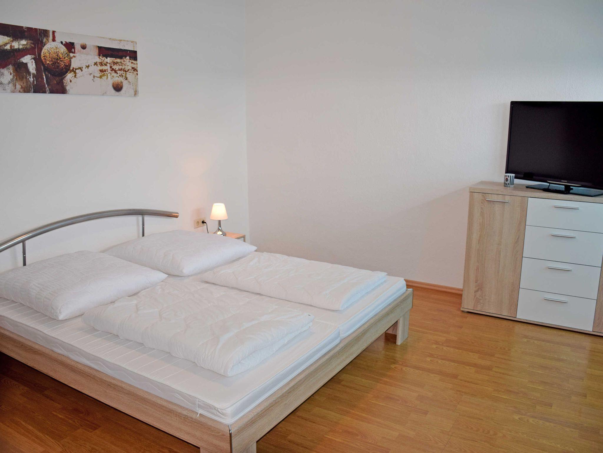 Im Wohnbereich befindet sich ein moderner Flachbildfernseher.