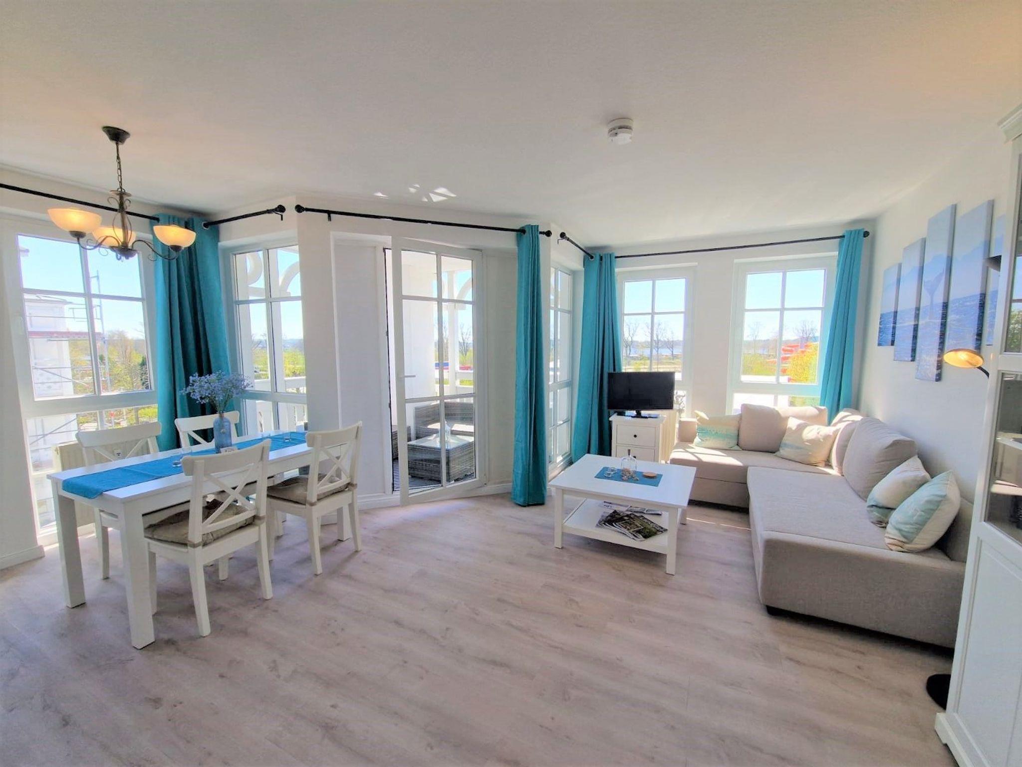 Moderne Ferienwohnung Fewo 444 im Seepark Sellin mit Balkon und kostenfreiem Schwimmbadzugang.