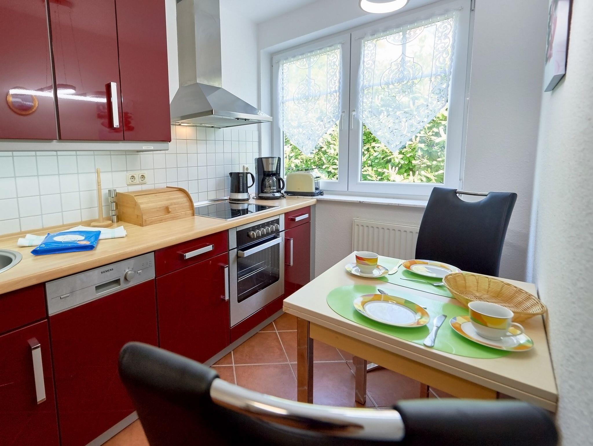 In der separaten Küche stehen Ihnen u.a. eine Spülmaschine, ein Kühlschrank mit Gefrierfach, ein 4-Zonen-Ceranherd mit Backofen und Dunstabzug, eine Kaffeemaschine, ein Toaster, ein Wasserkocher und diverse weitere Utensilien zur Verfügung, so dass Sie sich bequem selbst bekochen können, wenn Sie nicht unterwegs in einem der empfehlenswerten Lokale der Insel speisen.
