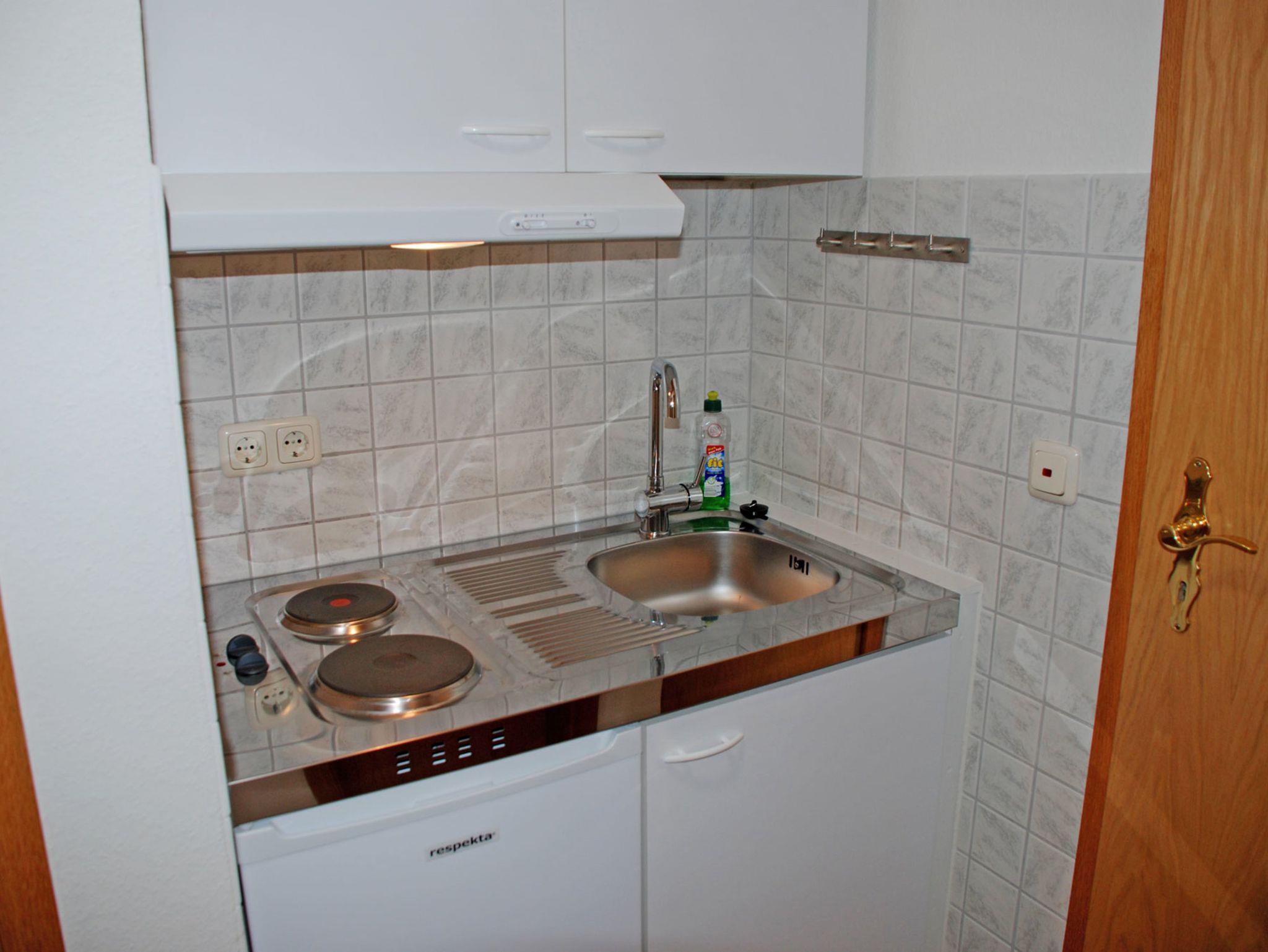 Die kleine Pantryküche ist mit einem 2-Plattenkocher, Abzugshaube, Wasserkocher, Kaffeemaschine, Toaster und Kühlschrank komplett ausgestattet. Gegen einmaligen Aufpreis je Gast werden zu Ihrer Anreise Bettwäsche (Selbstbezug) und Handtücher bereitgelegt. Bitte dies vor Anreise schon bei einer Buchung mitbestellen!