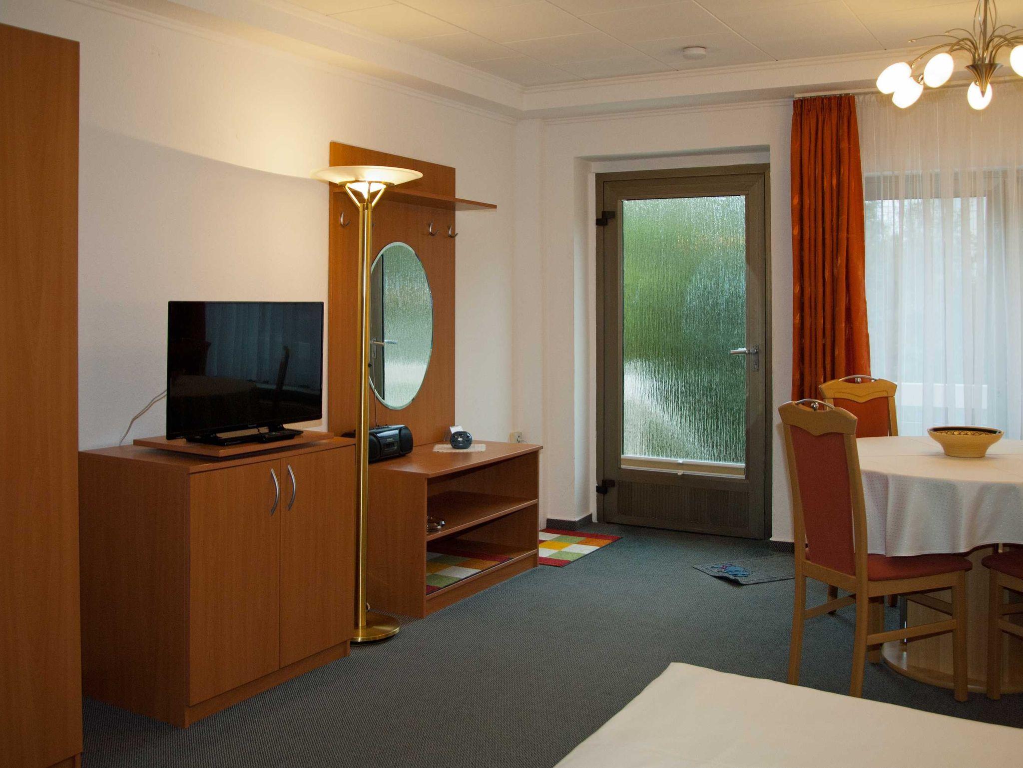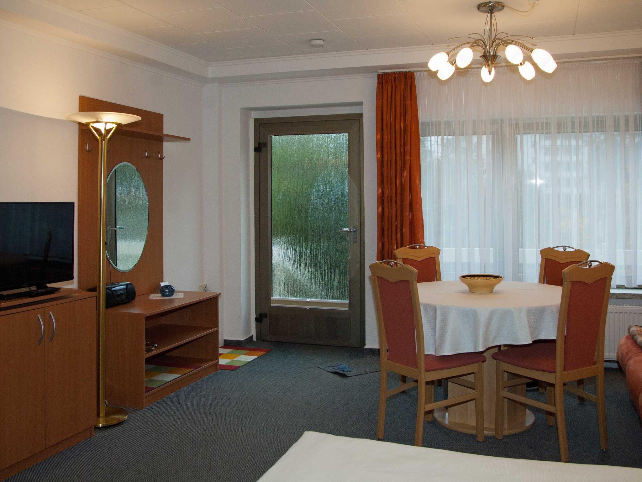 Die modern eingerichtete 65 m² große Nichtraucher-Ferienwohnung befindet sich im Parterre eines Wohnhauses. Sie verfügt über einen Wohn/Schlafraum mit einer Sitzgarnitur und einem Doppelbett sowie über SAT-TV und Radio. Durch den ersten Schlafraum (Durchgangzimmer) gelangen Sie in das zweite Zimmer, dann weiter in das Bad mit Dusche und WC. Eine Mini-Küche mit 2-Platten-Ceranfeld ist nebenan.