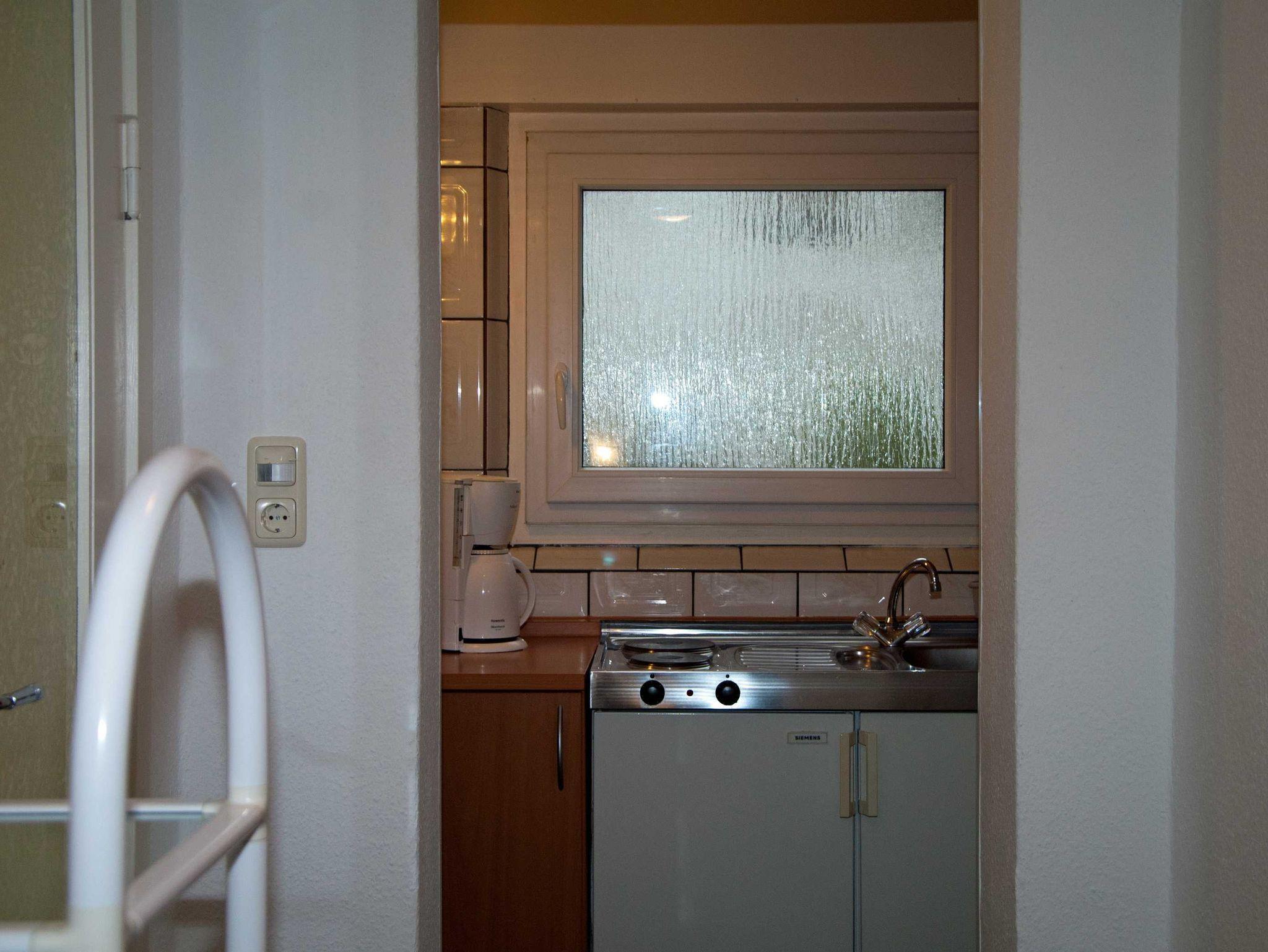Eine kleine Küche (2-Plattenherd) ist nebenan. Für die kleinen Gäste steht ein Kinderbettchen bereit. bei schönem Wetter lädt eine Terrasse zum Verweilen ein.