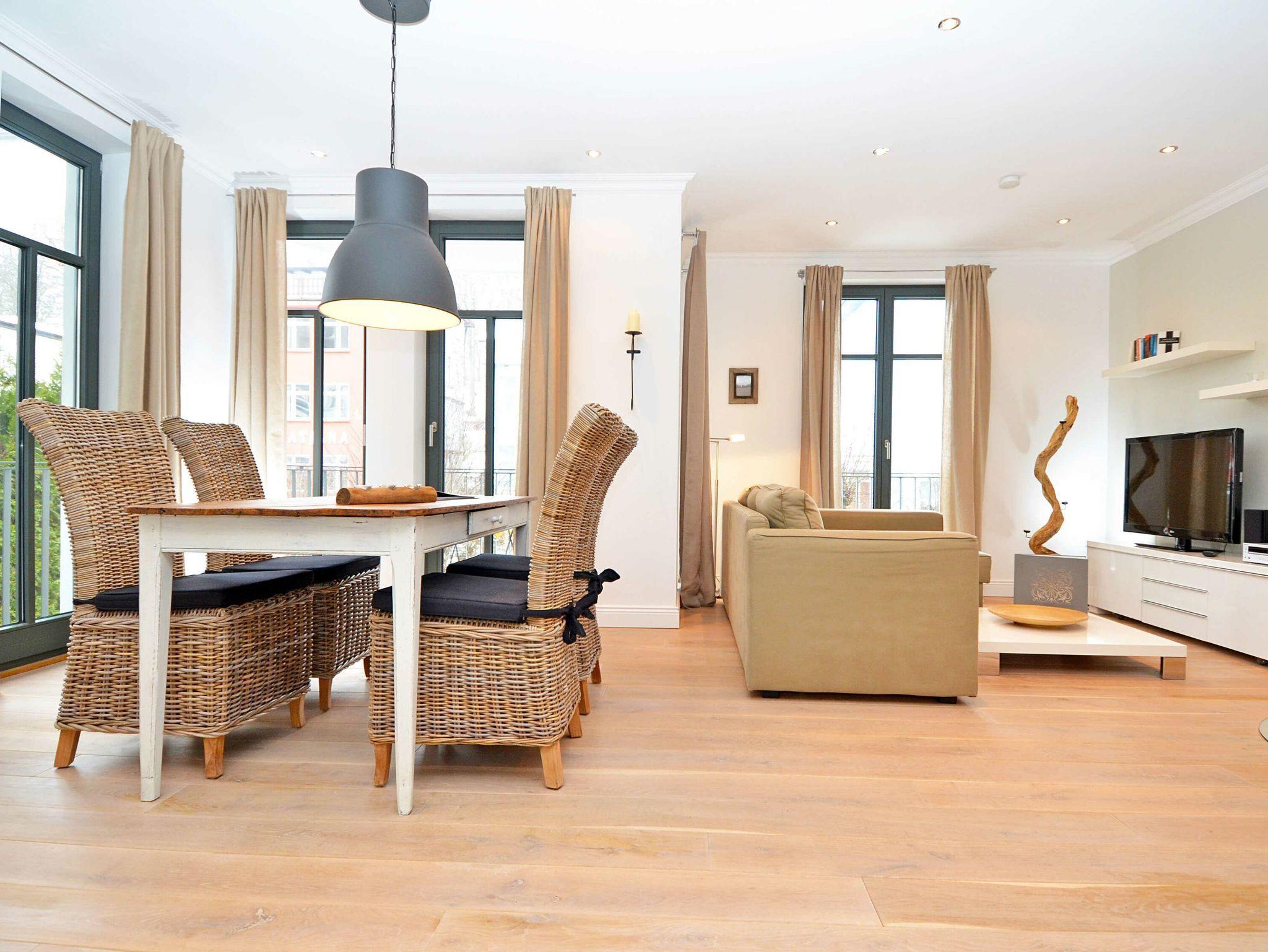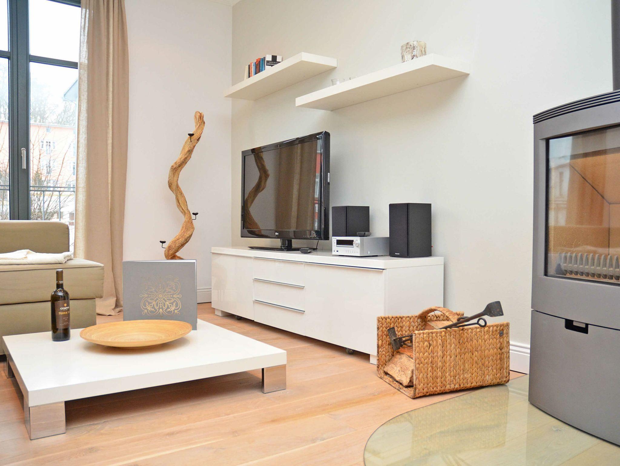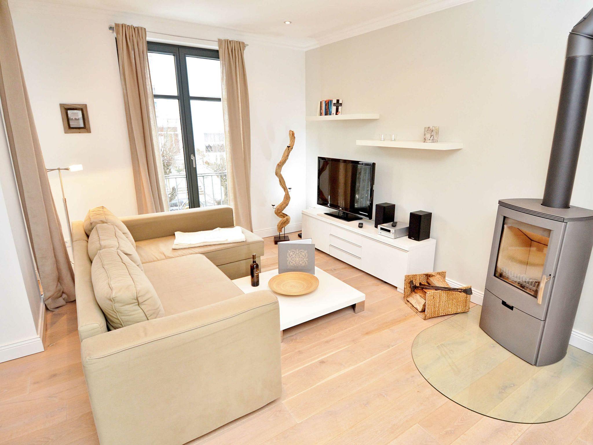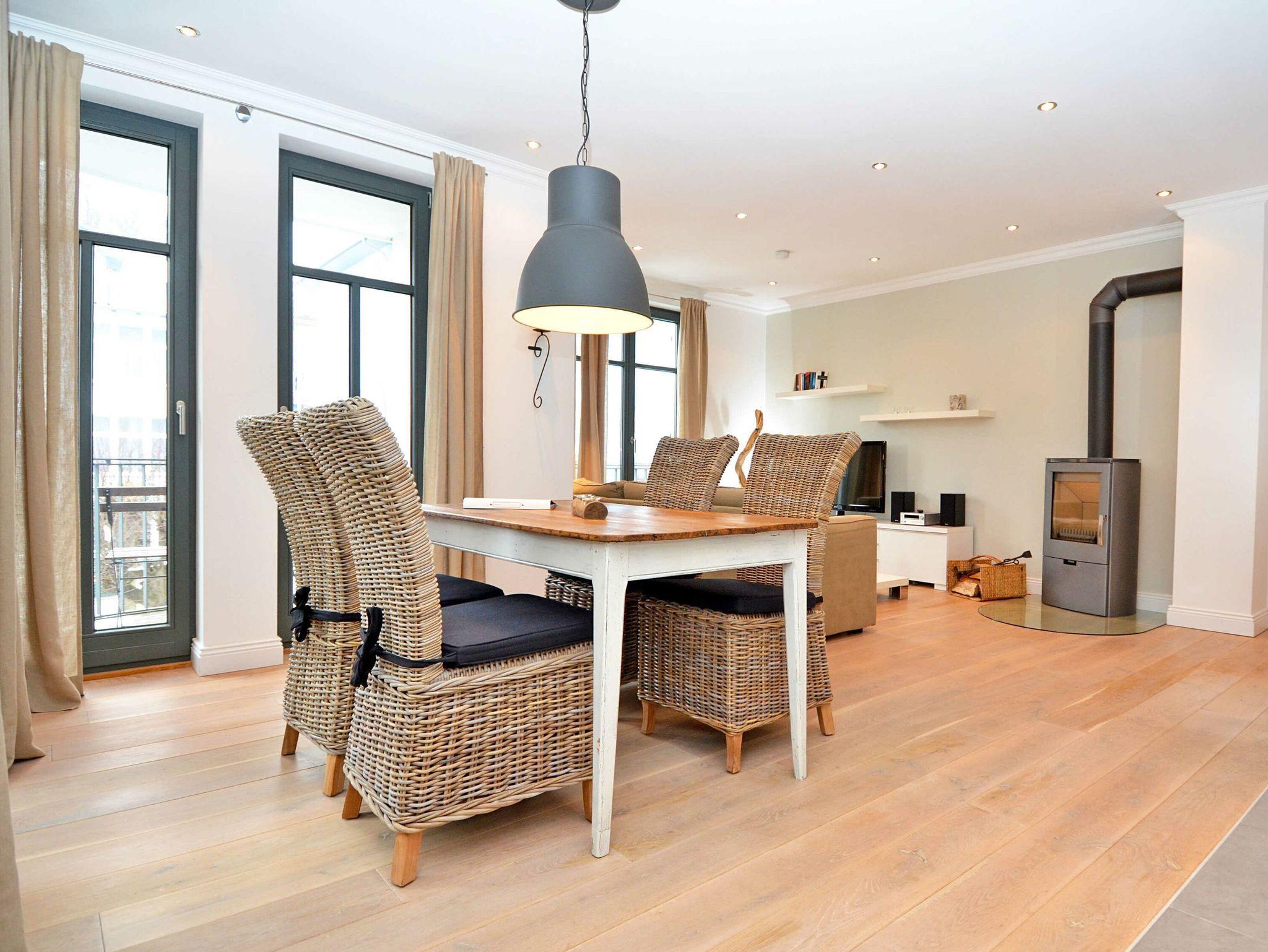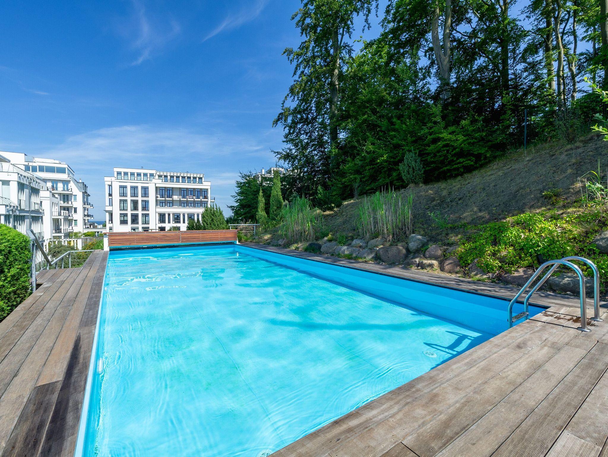 Elegantes 3-Raum-Apartment mit Kamin, Balkon, Gartenterrasse und saisonalem Pool in Sellin, Ostseebad.